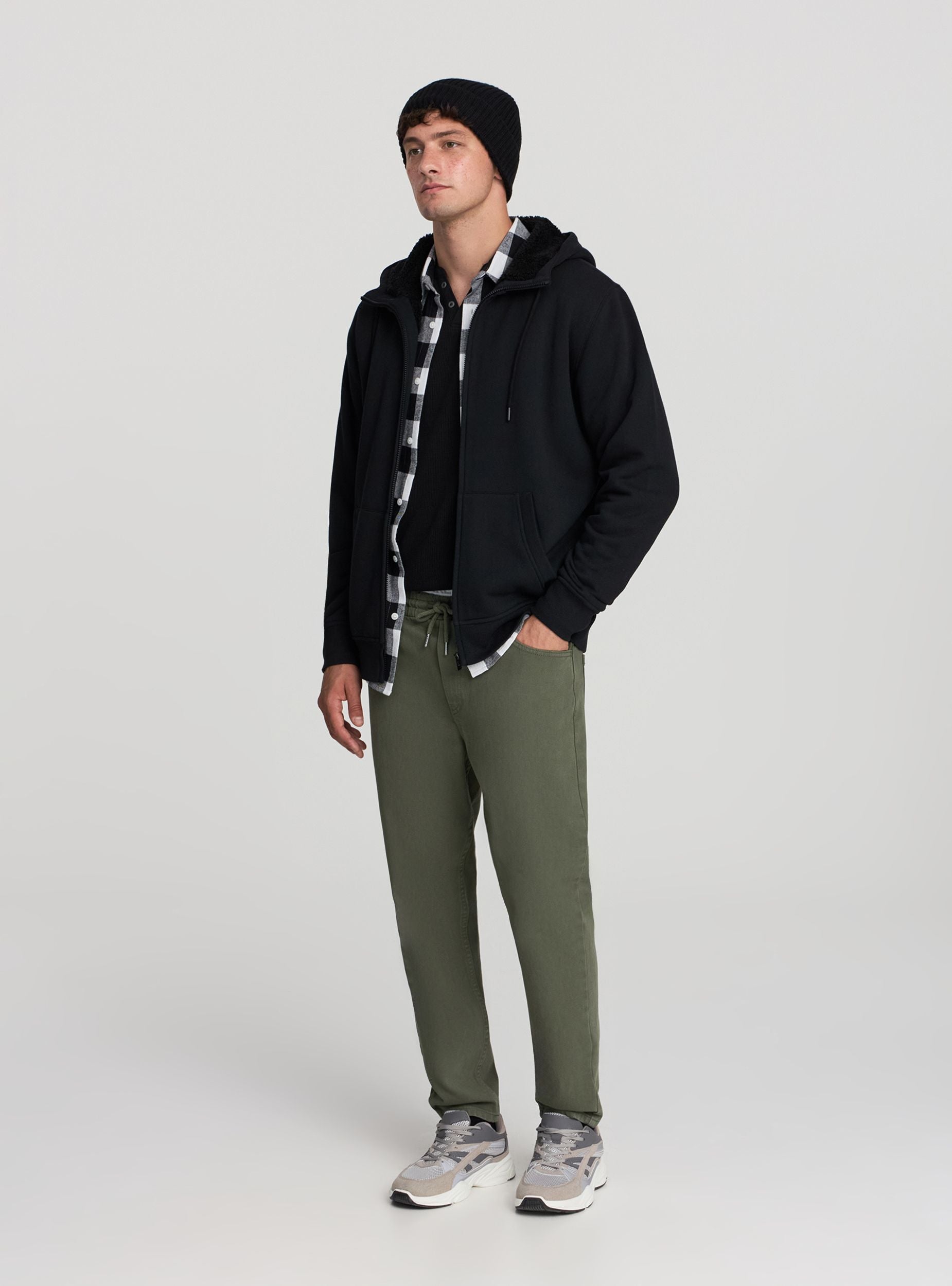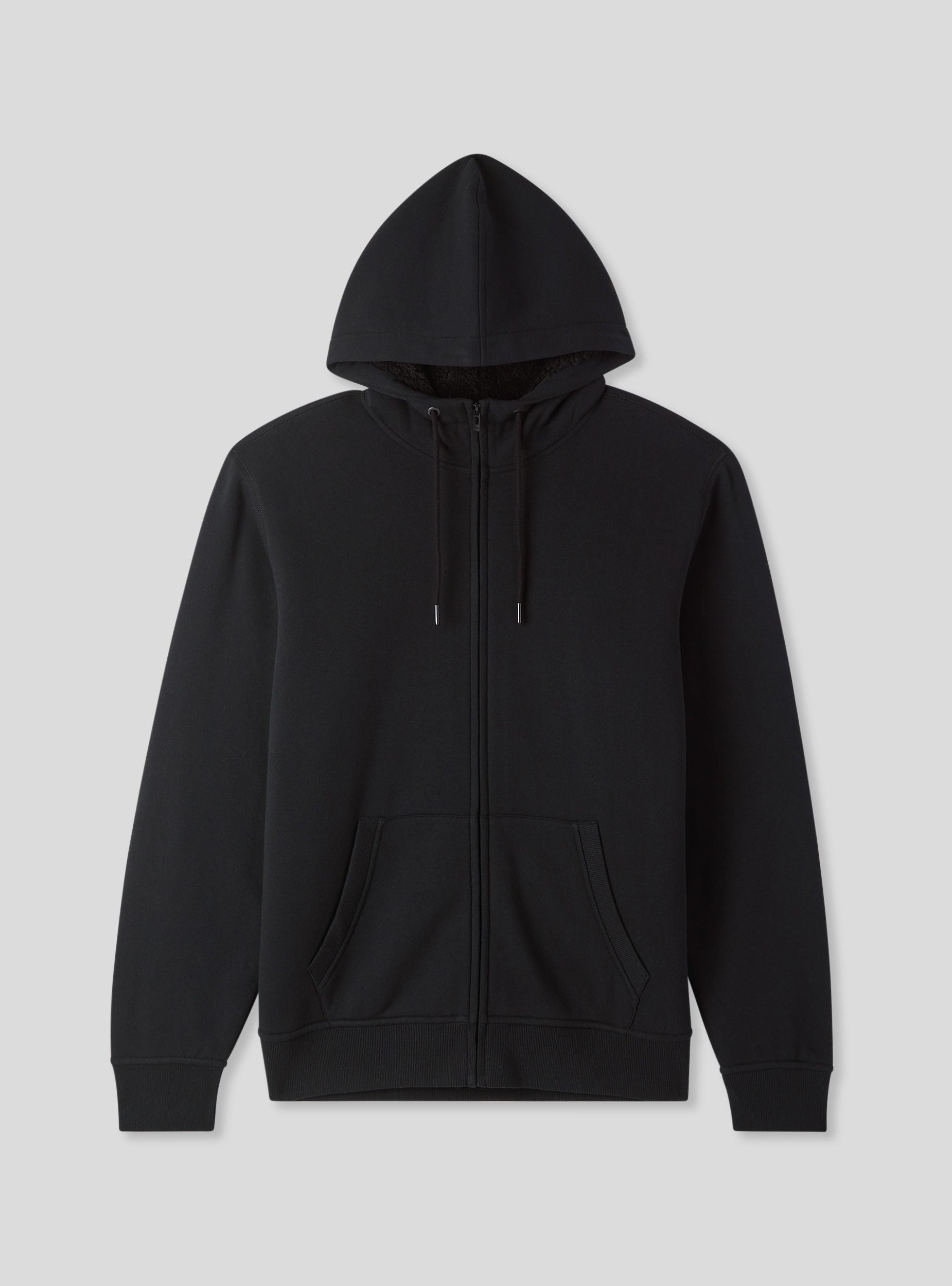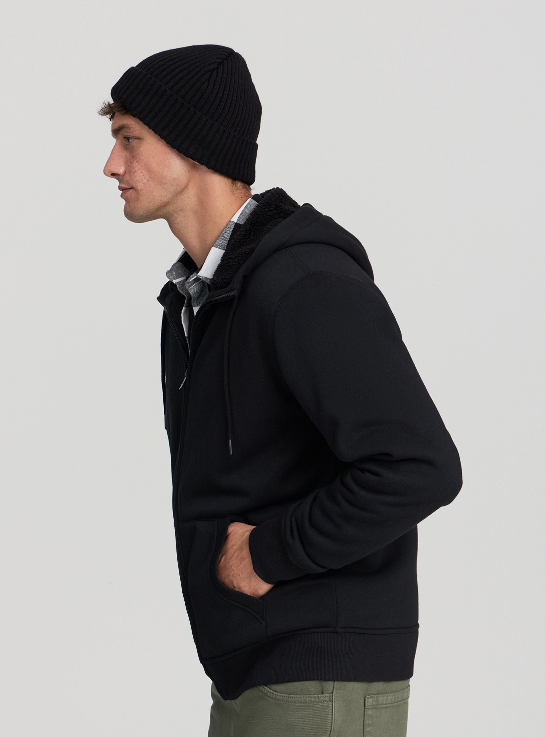 Felpa pesante da uomo con cappuccio, ideale per le giornate più fredde grazie all'imbottitura interna in sherpa nel busto e nel cappuccio che offre un comfort superiore. Modello con zip frontale e tasche laterali, perfetto per un look casual e versatile. Le maniche lunghe e il cappuccio regolabile con coulisse la rendono adatta sia per il tempo libero che per le uscite informali. Vestibilità regolare e design a tinta unita.