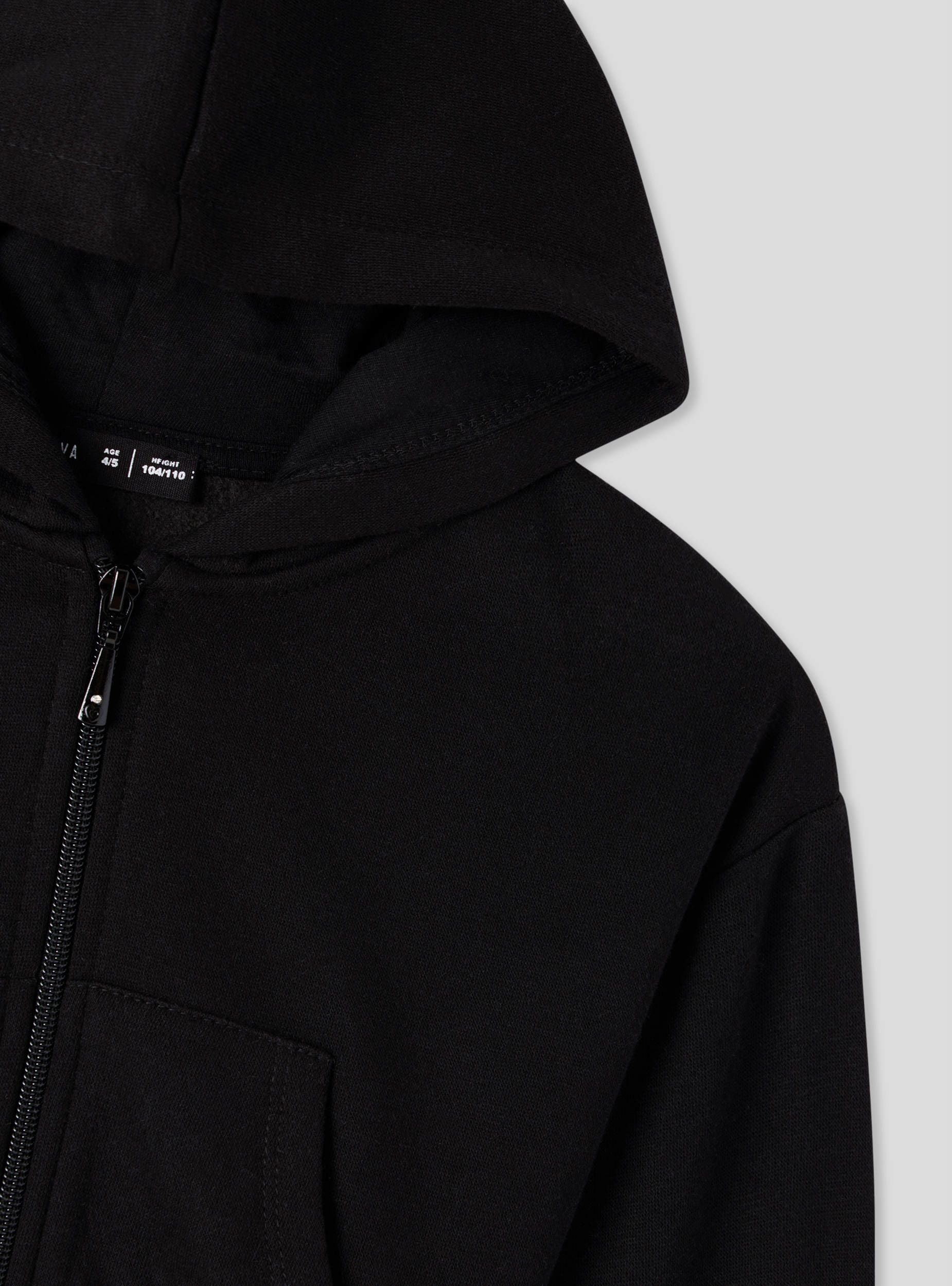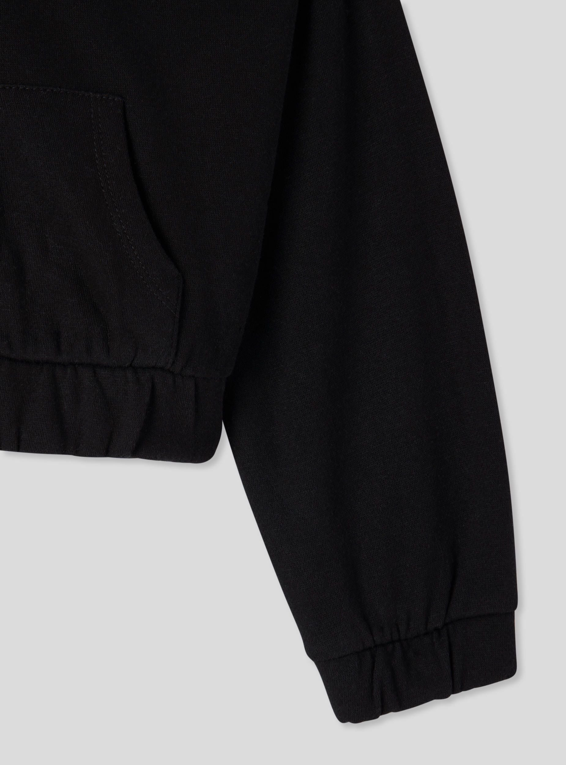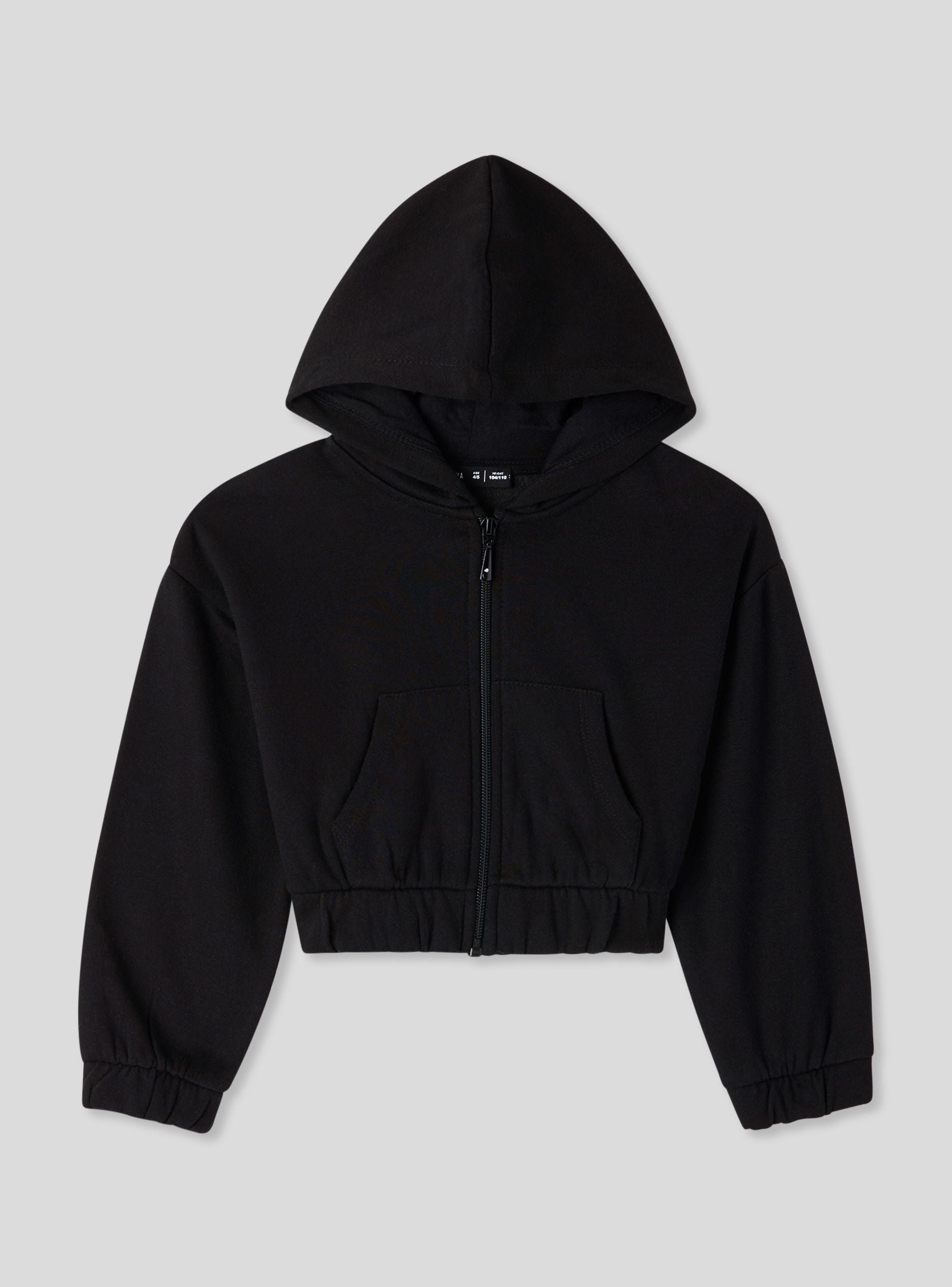 Felpa pesante da bimba con cappuccio, ideale per look casual e dinamici. Il modello crop aggiunge un tocco moderno, mentre la chiusura con zip frontale la rende pratica da indossare. Le maniche lunghe e il fondo elasticizzato assicurano comfort e libertà di movimento. Perfetta da abbinare a jeans o leggings per la scuola, il tempo libero o le uscite con gli amici. Design a tinta unita.