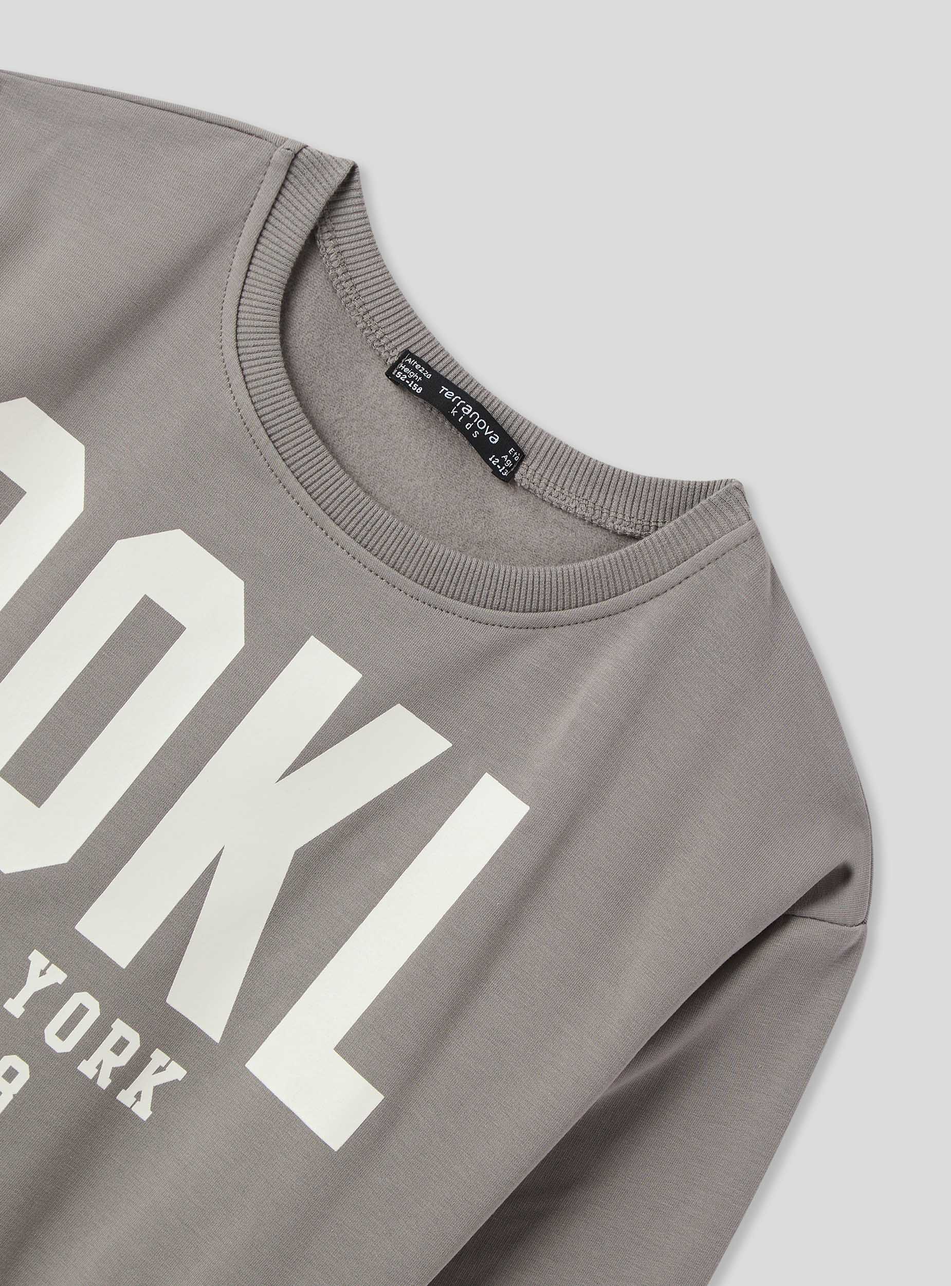 Felpa leggera da bambina dal design trendy e confortevole, perfetta per creare look sportivi e casual. Il taglio crop la rende moderna e facile da abbinare a jeans o leggings, mentre le maniche lunghe assicurano comfort nelle giornate più fresche. Senza cappuccio e senza zip, si distingue per la maxi scritta frontale che aggiunge un tocco grintoso e alla moda, ideale per il tempo libero o la scuola.