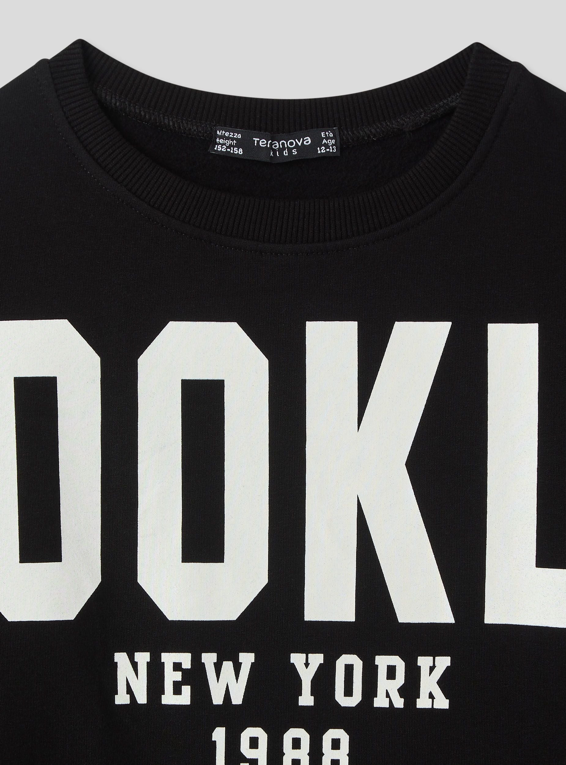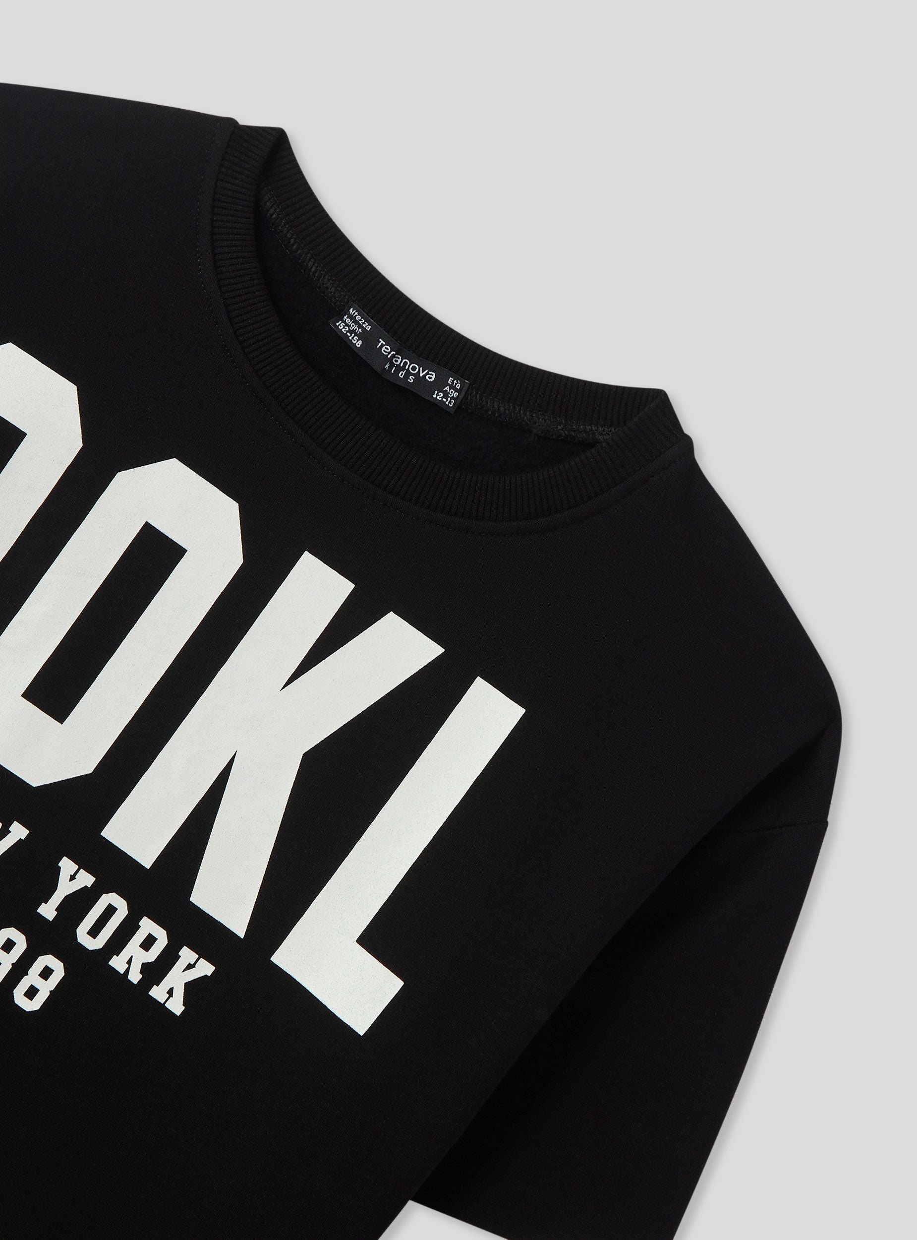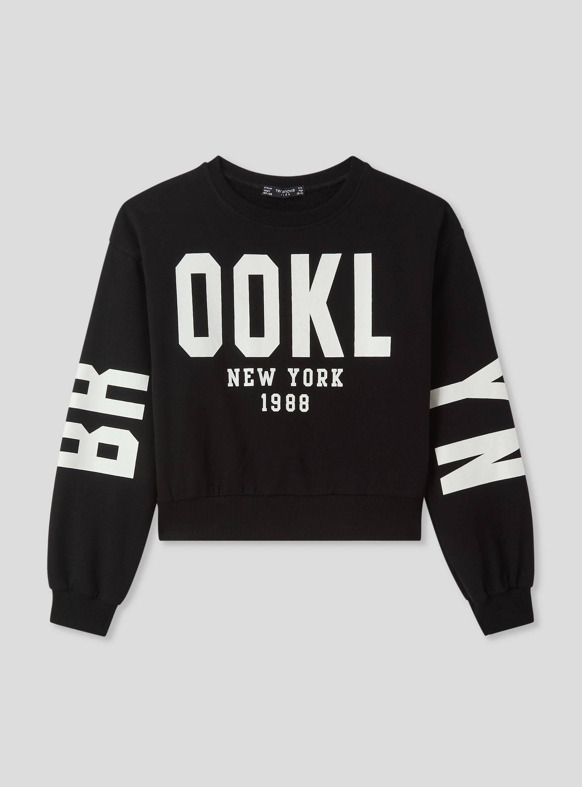 Felpa leggera da bambina dal design trendy e confortevole, perfetta per creare look sportivi e casual. Il taglio crop la rende moderna e facile da abbinare a jeans o leggings, mentre le maniche lunghe assicurano comfort nelle giornate più fresche. Senza cappuccio e senza zip, si distingue per la maxi scritta frontale che aggiunge un tocco grintoso e alla moda, ideale per il tempo libero o la scuola.