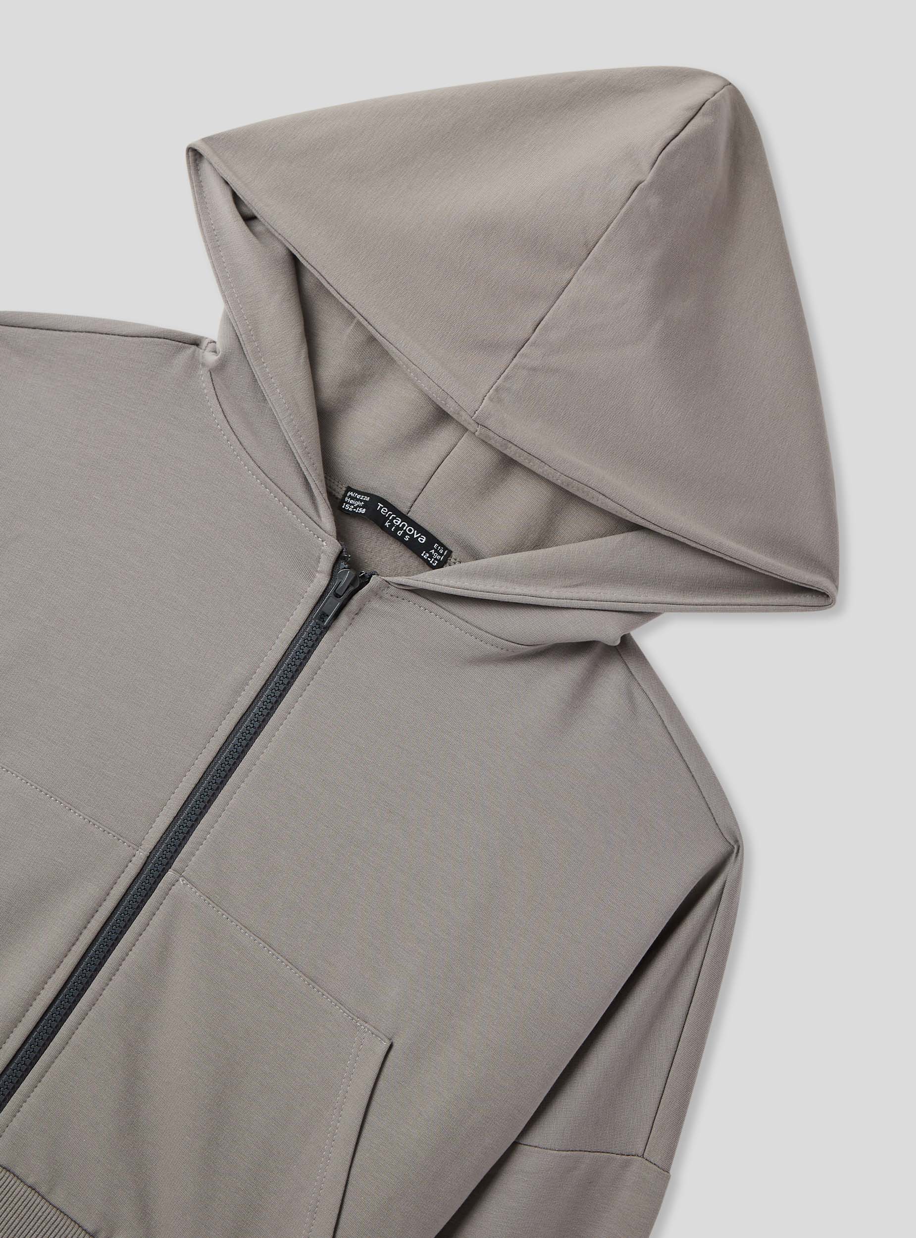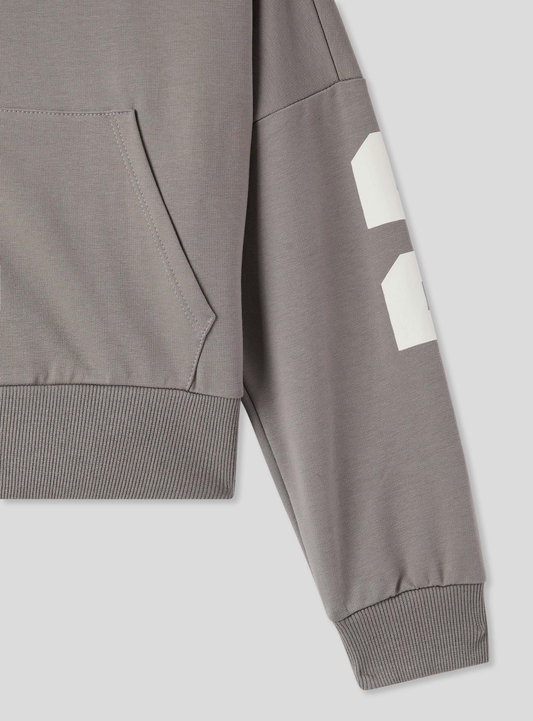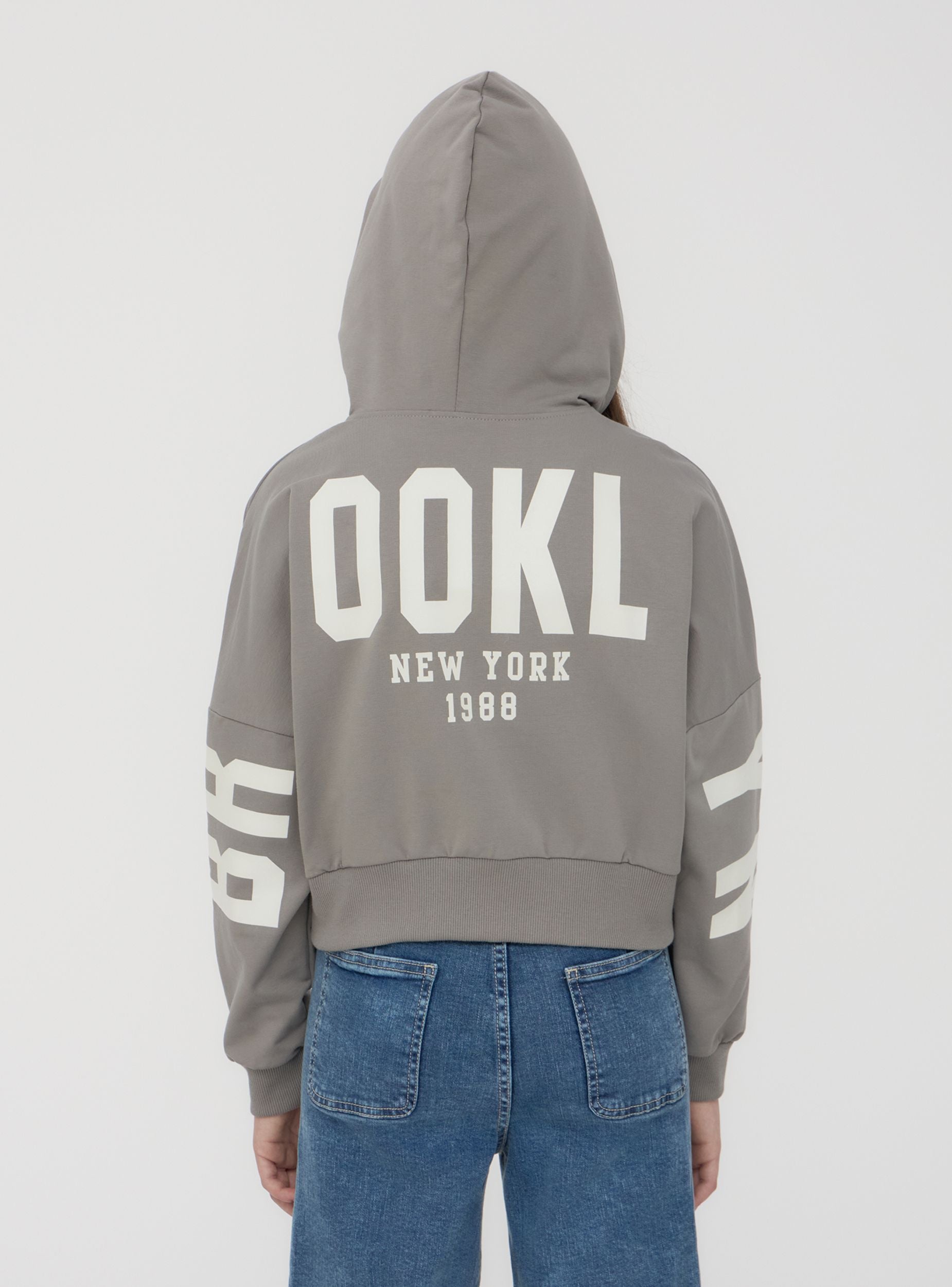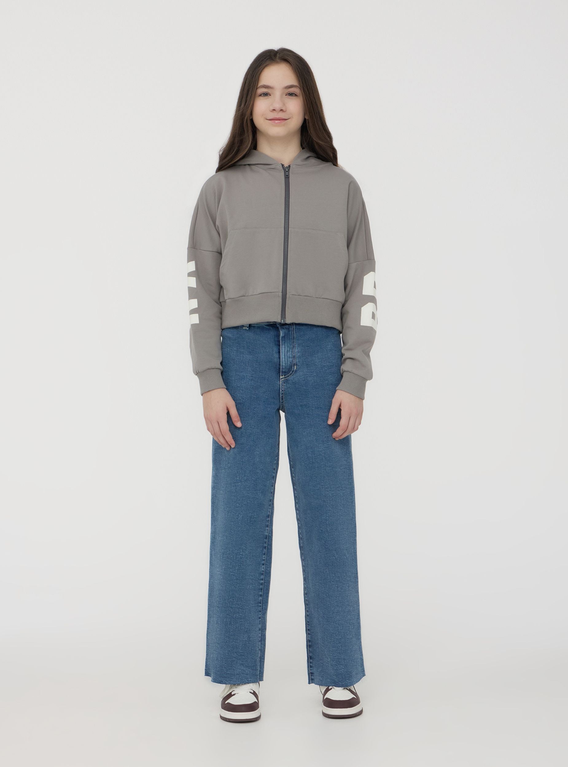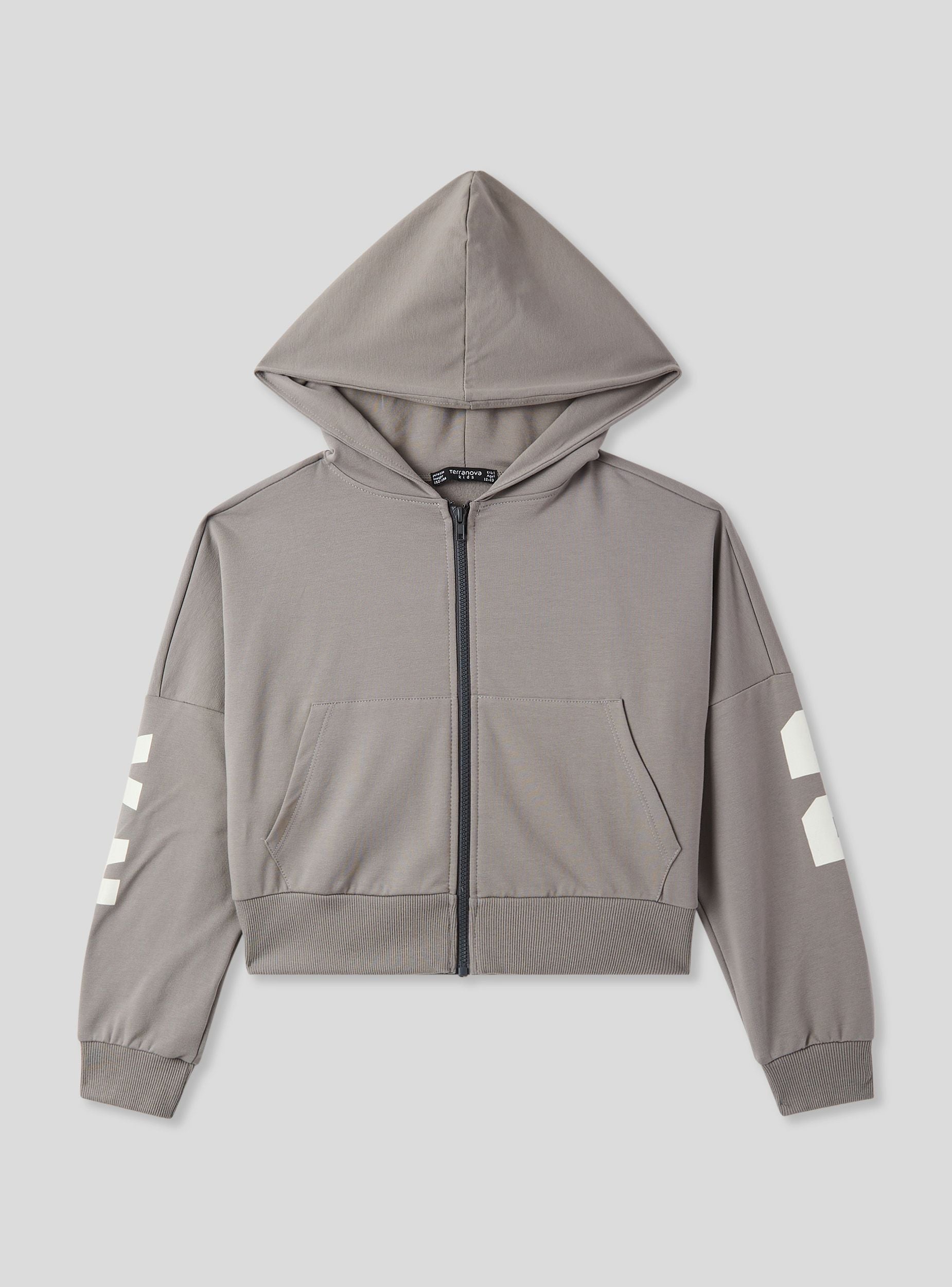 Felpa leggera da bambina dallo stile moderno e dinamico, perfetta per un look sportivo e alla moda. Il design crop con maniche lunghe e cappuccio aggiunge un tocco di tendenza, mentre la zip frontale assicura praticità. La stampa sul retro dona carattere e originalità. Ideale da abbinare a jeans e sneakers per un outfit casual o a joggers per un comfort totale nelle attività quotidiane.