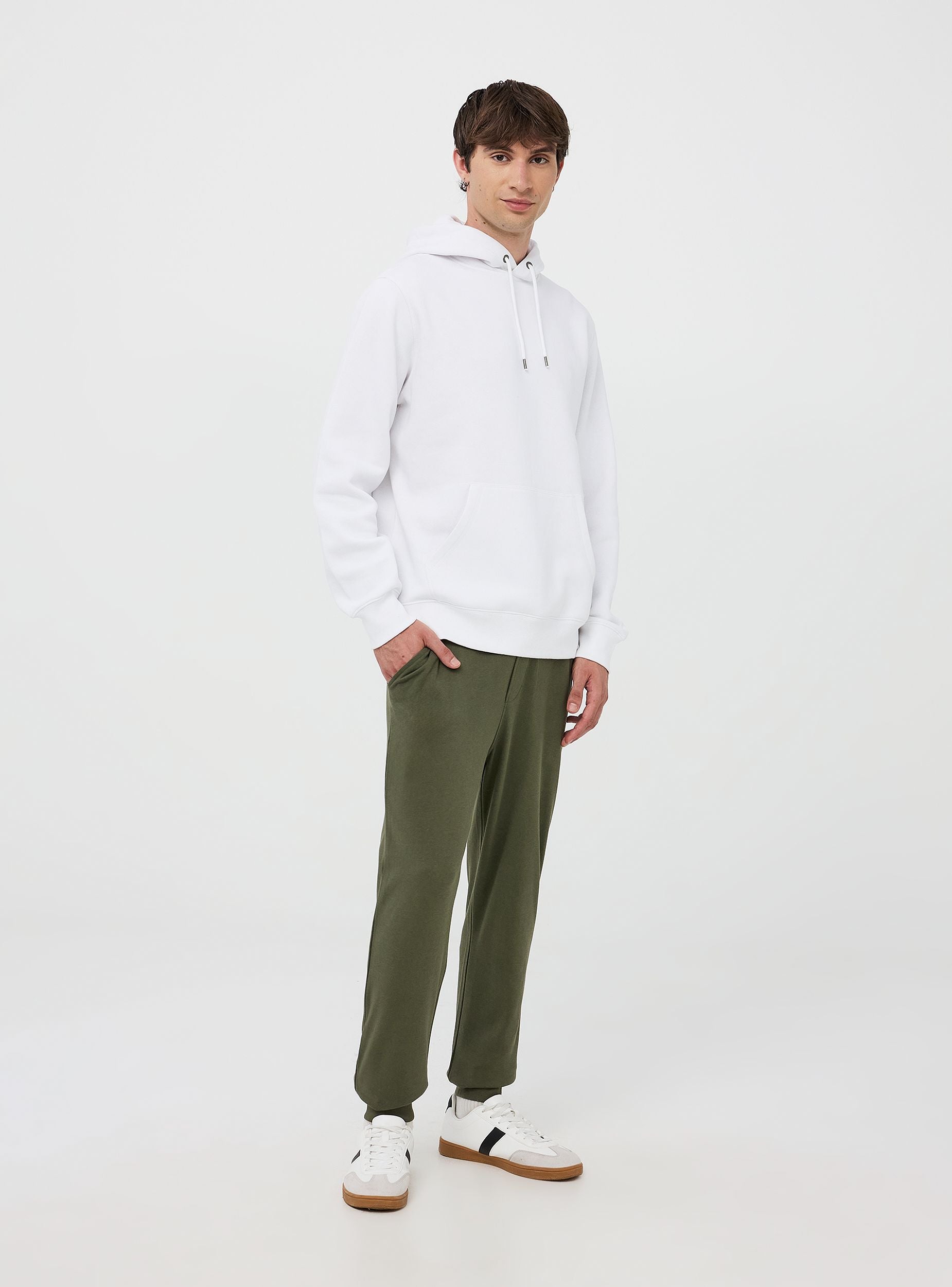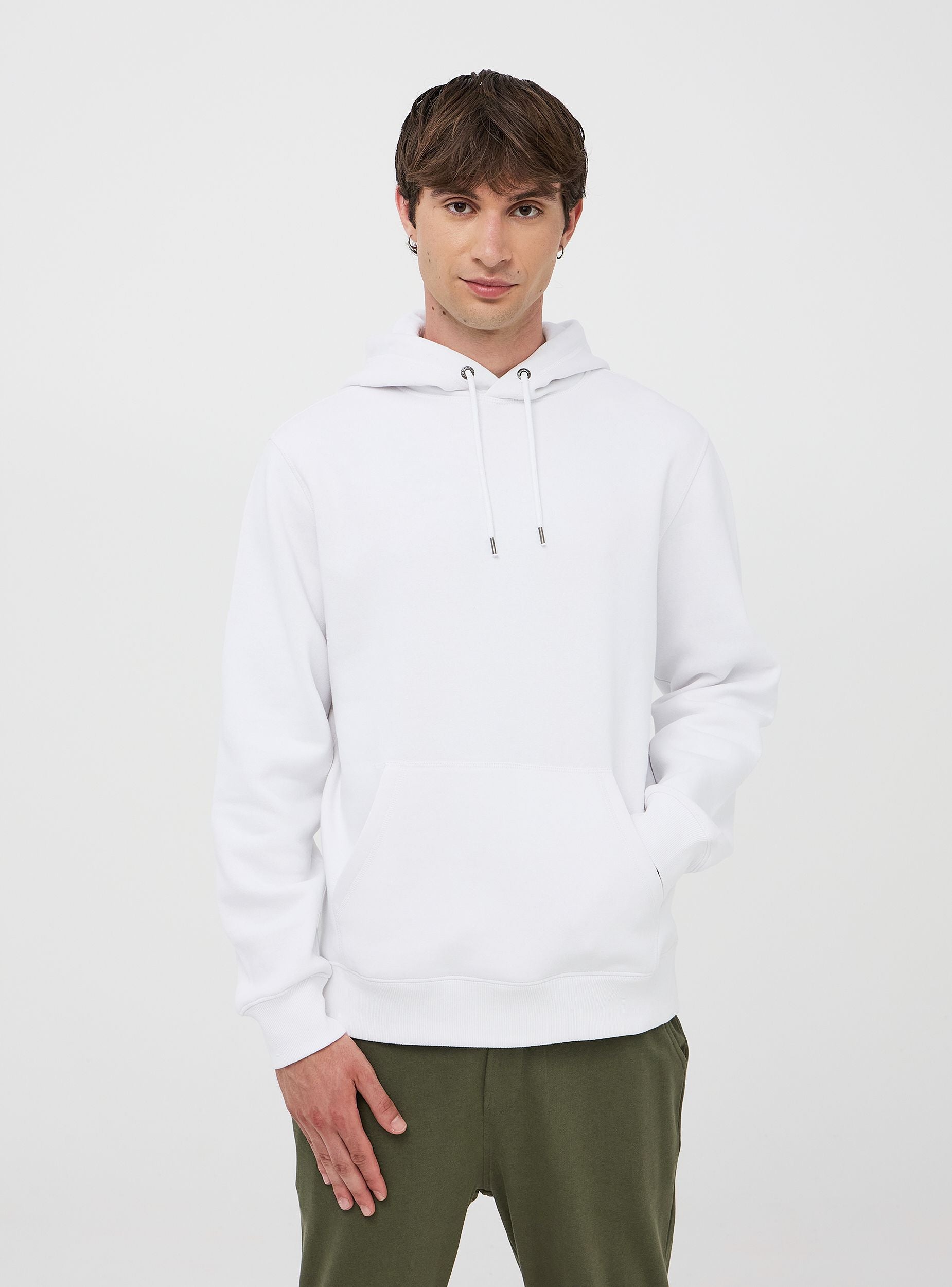 Felpa basica da uomo in tessuto pesante con cappuccio regolato da coulisse a maniche lunghe. Modello chiuso dotato di tasca frontale a marsupio. Realizzata in tessuto pesante a tinta unita. Vestibilità regular. Perfetta per chi cerca uno stile versatile e confortevole. Questo capo offre un design moderno e adatto per diverse occasioni, perfetto per outfit casual e giornate di relax.
