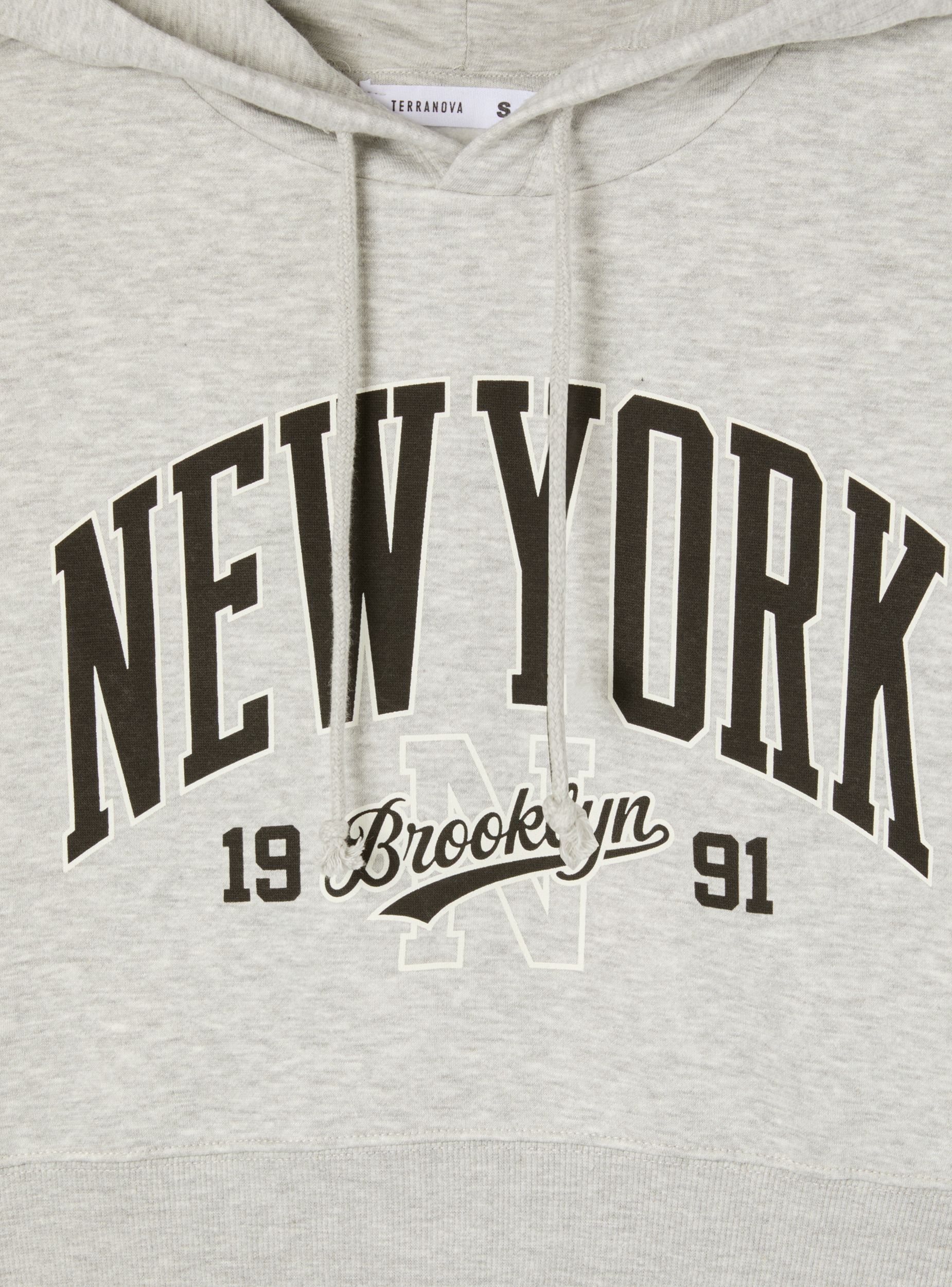 Felpa stampa college crop con cappuccio