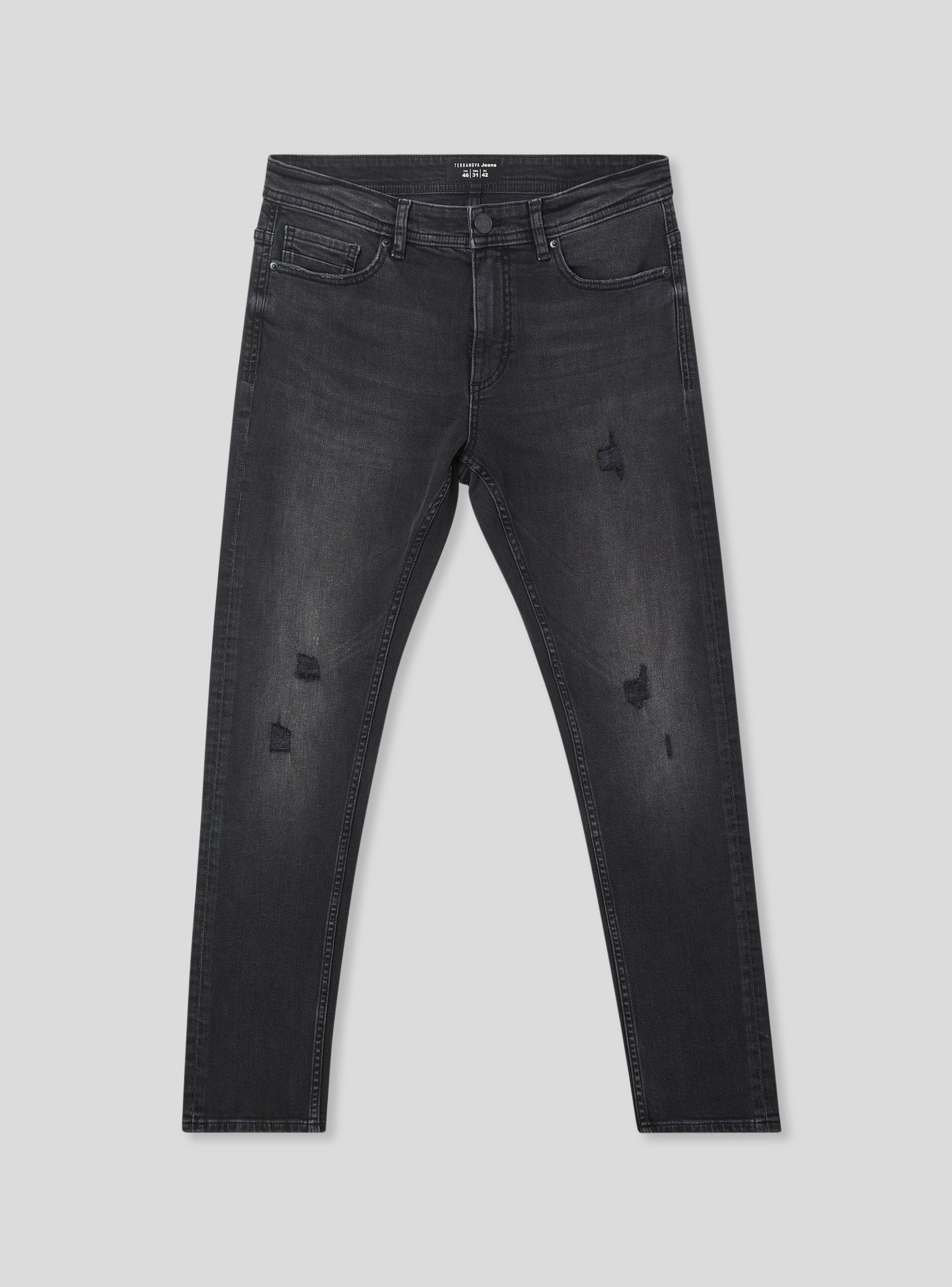 Jeans da uomo dal taglio skinny, perfetti per un look contemporaneo e deciso. Il lavaggio denim nero e i piccoli strappi donano un tocco di carattere, ideale per outfit casual e streetwear. La chiusura con bottone e zip garantisce una vestibilità comoda, mentre le cinque tasche offrono praticità. Indossali con una t-shirt basic e sneakers per un look urbano, oppure abbinali a una camicia e stivaletti per un tocco più sofisticato.