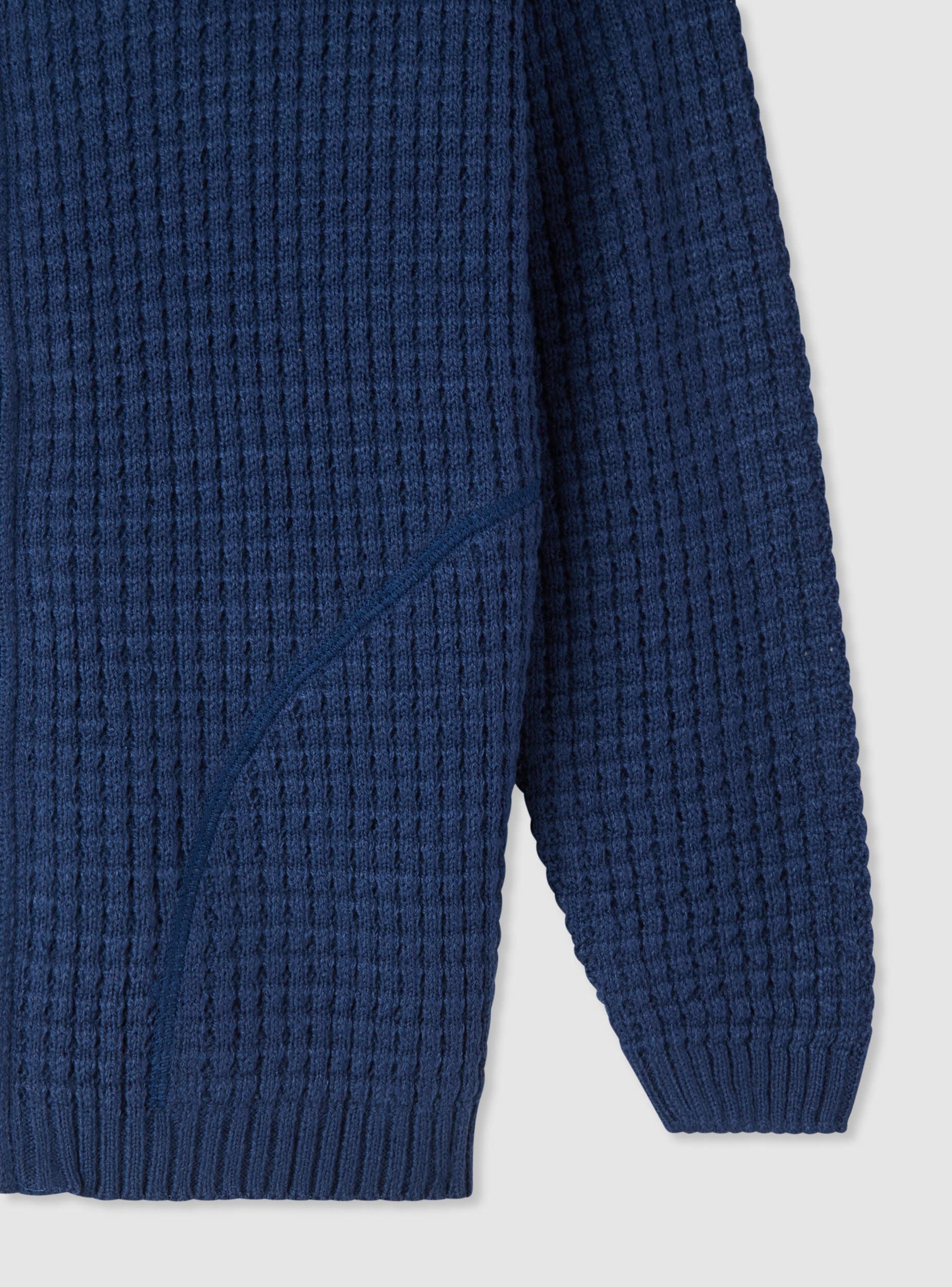 Maglia da bimbo con cappuccio e zip, ideale per un look casual e comodo. La lavorazione a trama aggiunge un tocco di stile, mentre il cappuccio offre protezione nelle giornate fresche. Perfetta da abbinare a jeans o pantaloni sportivi per un outfit versatile. La chiusura con zip offre comfort, rendendola pratica per l'uso quotidiano.