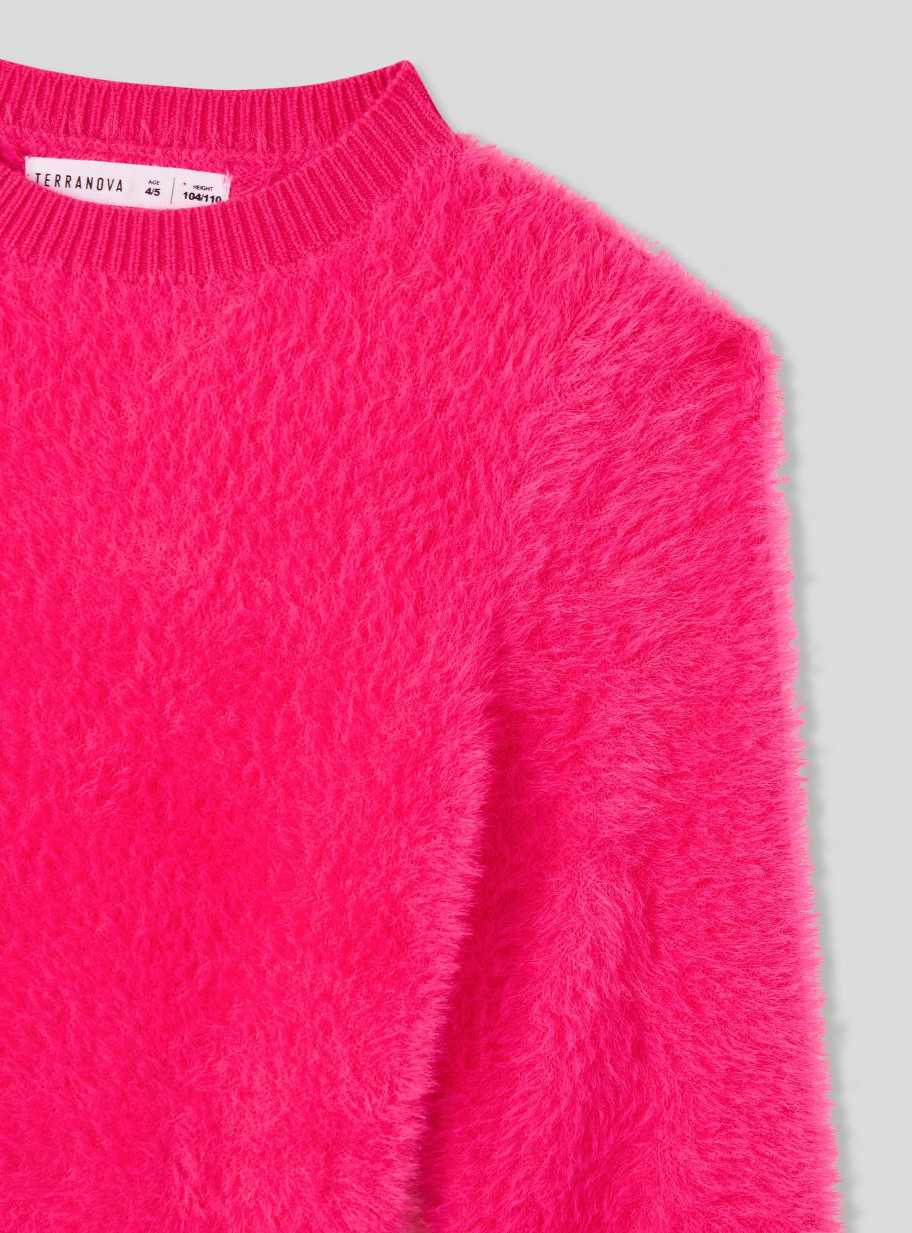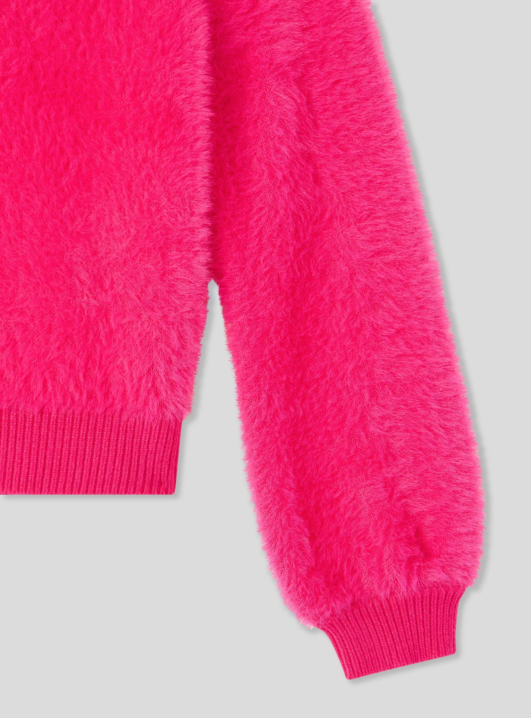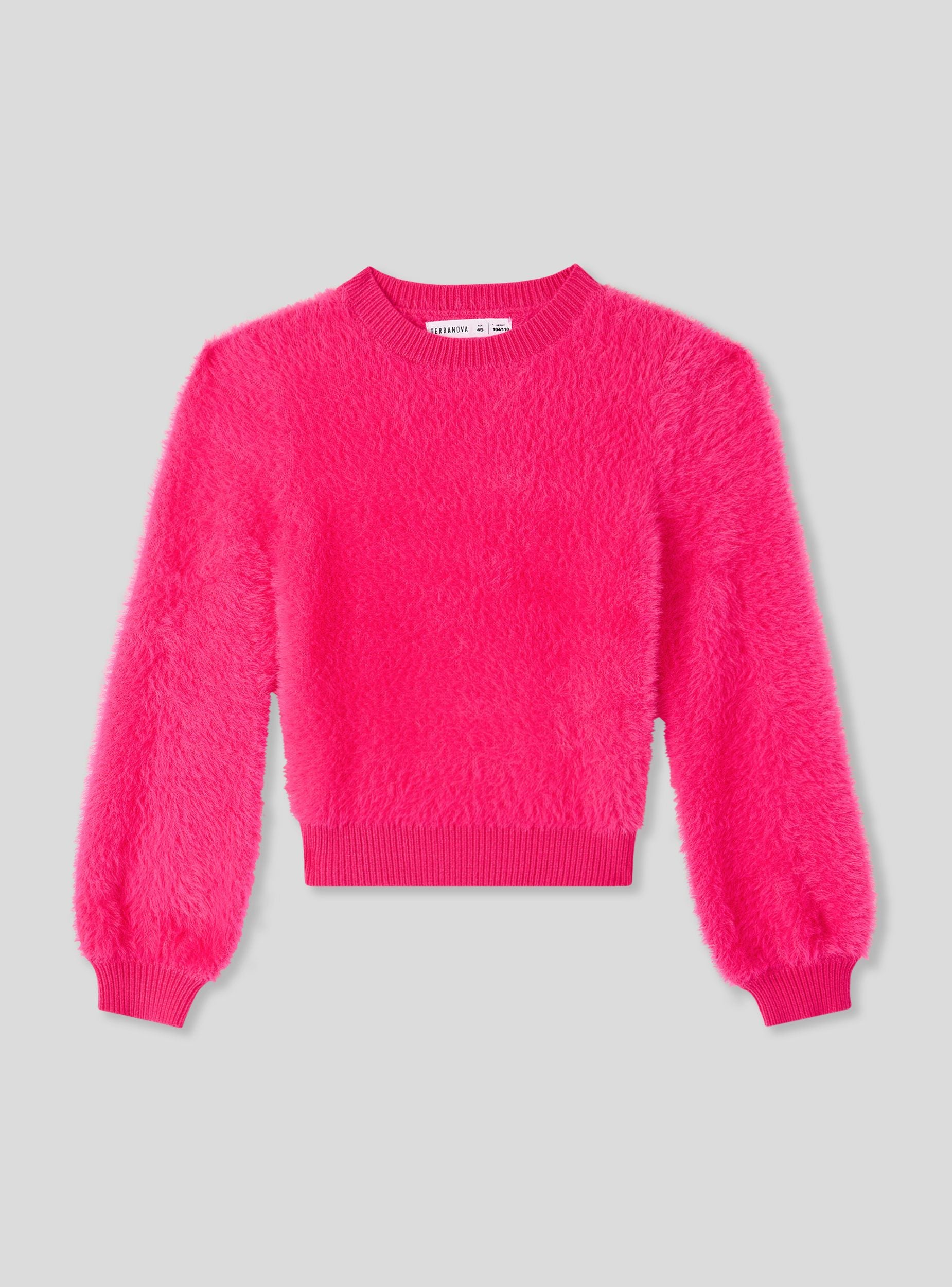 Maglia da bimba ideale per look quotidiani e versatili. Il design a tinta unita e la lavorazione effetto pelo donano un tocco morbido e accogliente, perfetto per la stagione fredda. Il girocollo e le maniche lunghe con polsini a costine assicurano comfort e praticità. Si abbina facilmente a jeans o gonne per outfit comodi e alla moda.