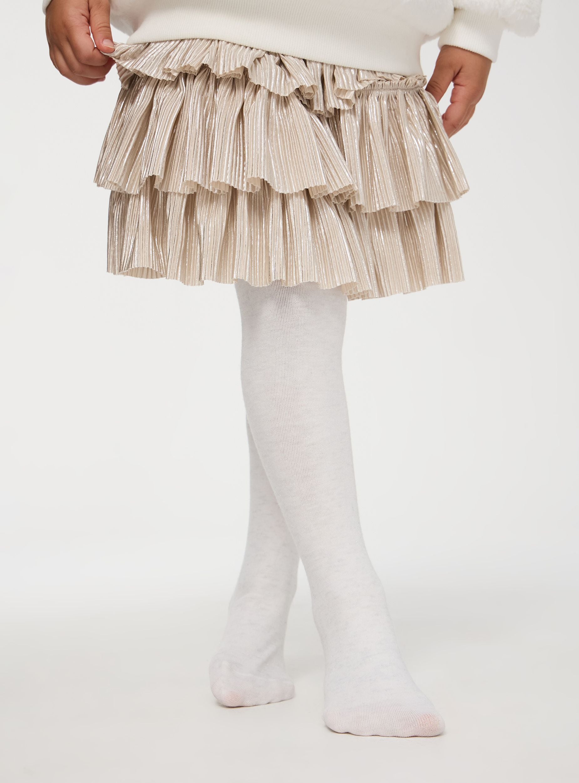 Confezione composta da 2 paia di collant da bimba. Un paio presenta una fantasia leopardata. Mentre l'altro presenta un tessuto luccicante. Perfetti per arricchiture gli outfit invernali.Dettagli