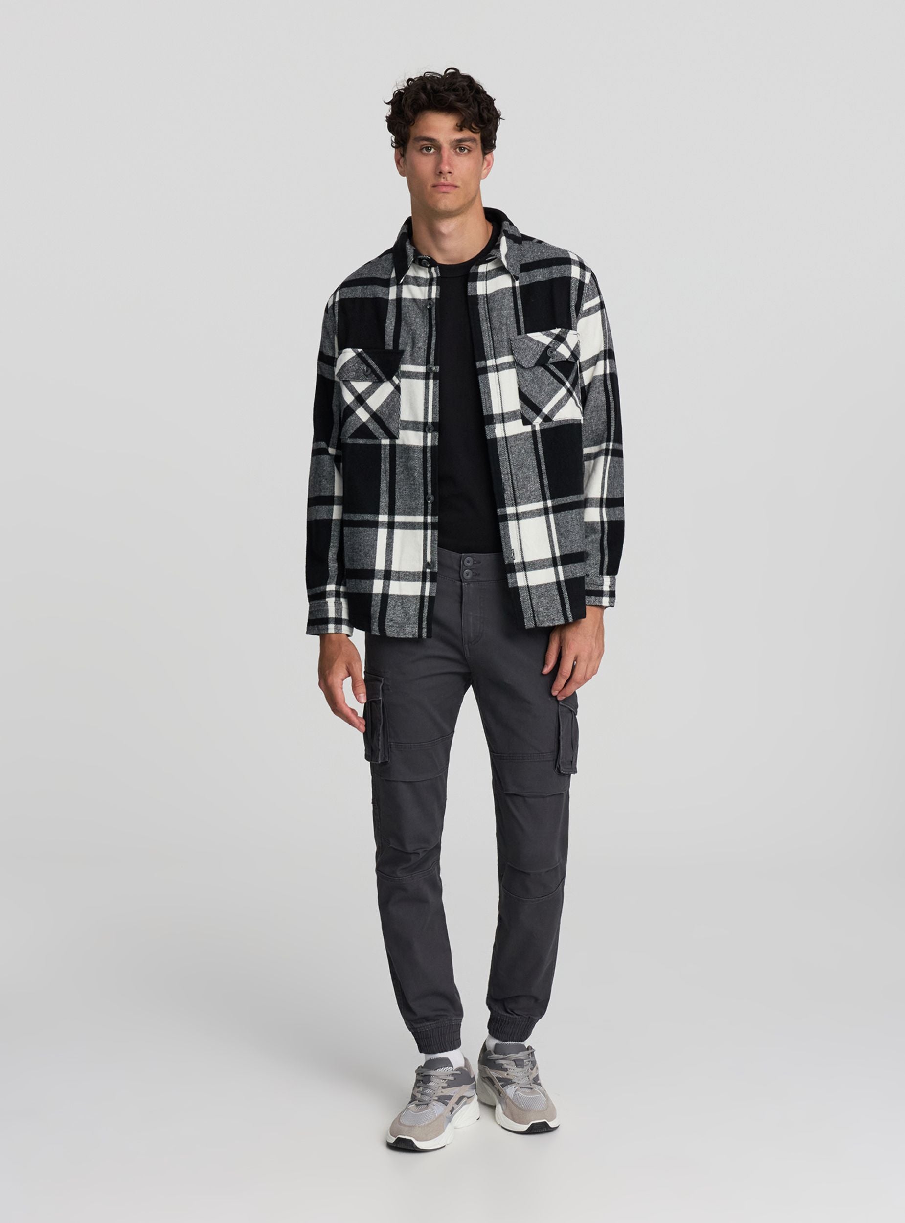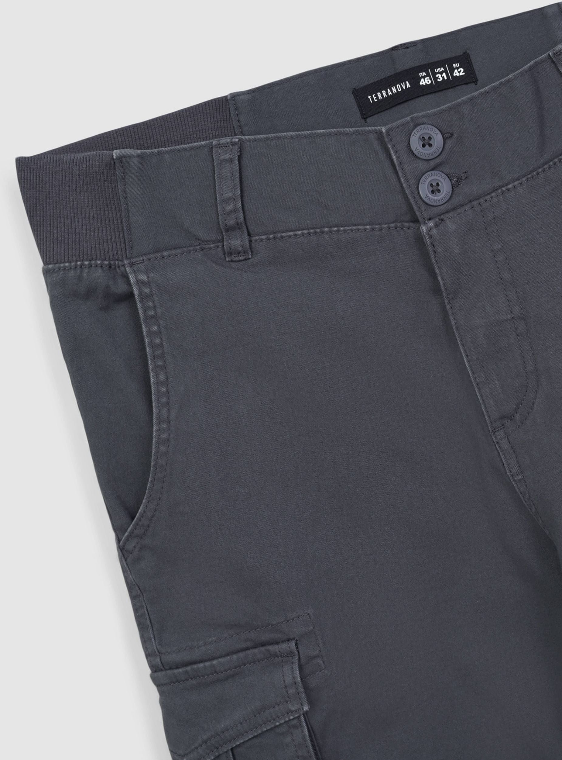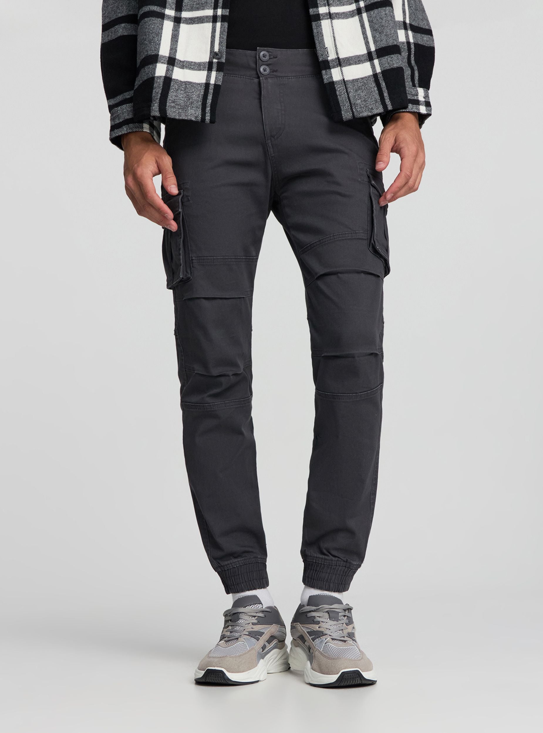 Pantaloni da uomo in stile cargo, ideali per un look pratico e contemporaneo. Caratterizzati da un design a tinta unita, sono dotati di polsini sul fondo, chiusura con bottoni e zip e ampie tasche laterali e posteriori per funzionalità extra. Perfetti per il tempo libero, si abbinano facilmente a t-shirt o felpe per un outfit comodo e versatile.