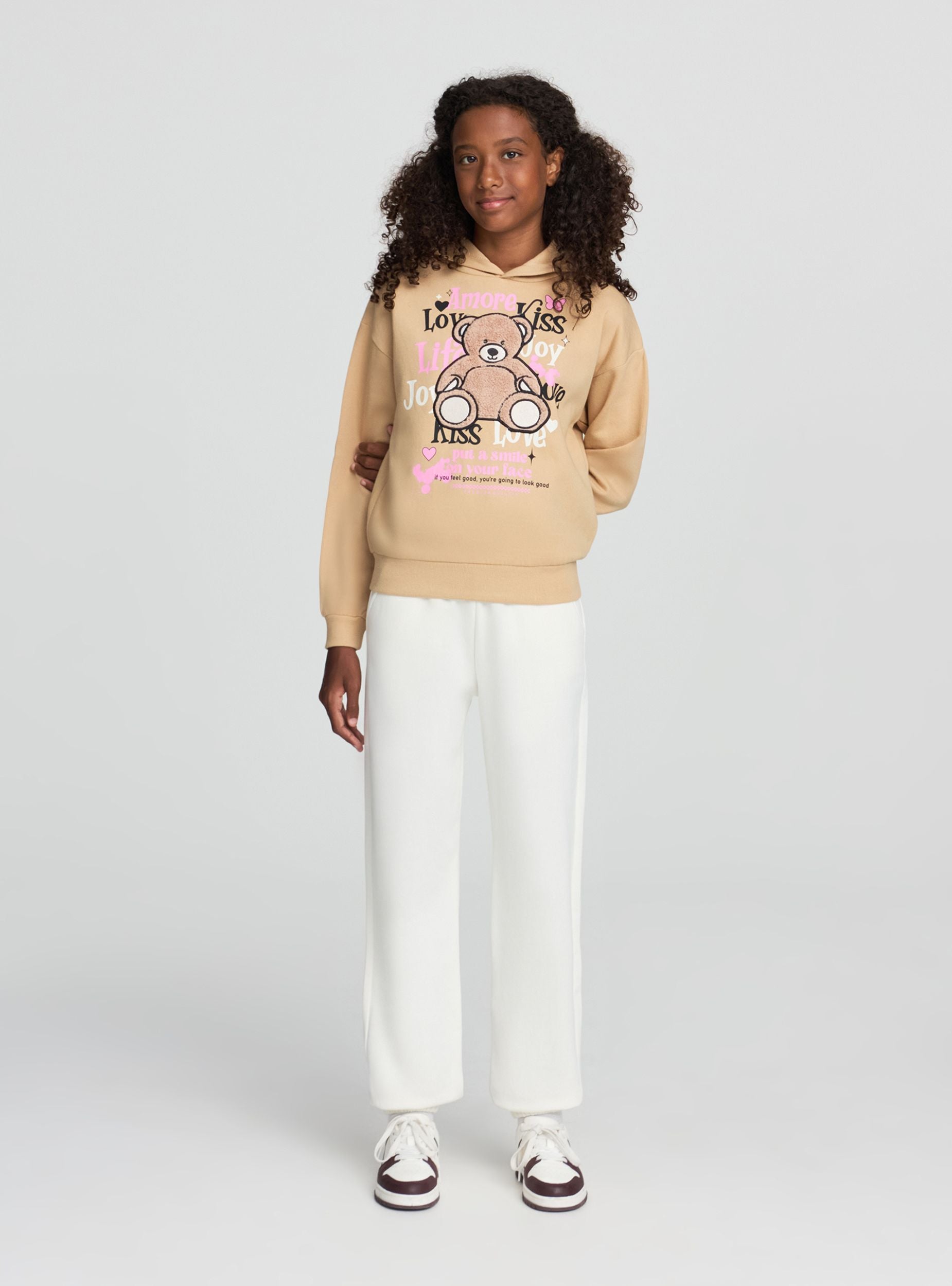 Pantaloni pesanti della tuta da bambina ideali per il tempo libero e le attività quotidiane. Con un design comodo e pratico, sono perfetti per creare outfit casual e sportivi. La vestibilità regolare e il tessuto pesante li rendono adatti per le stagioni più fresche. Dotati di tasche laterali, vita e polsini elasticizzati, offrono comfort e libertà di movimento. Un capo versatile per ogni occasione informale.