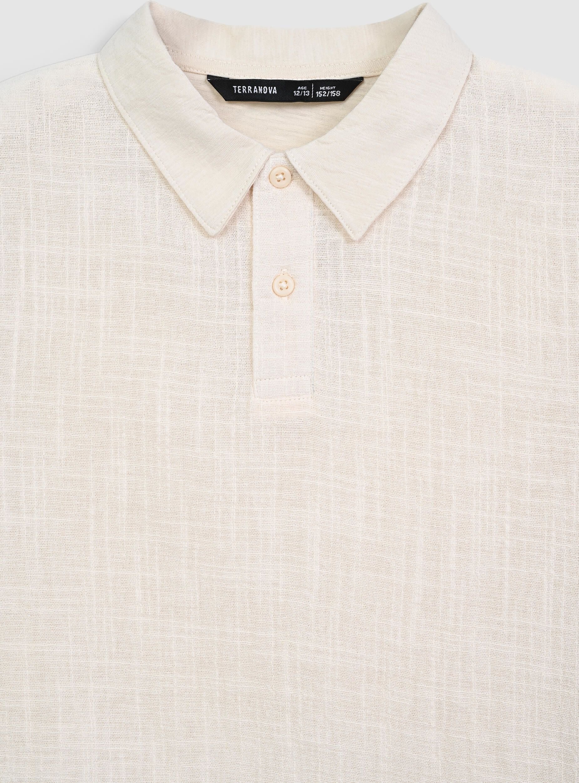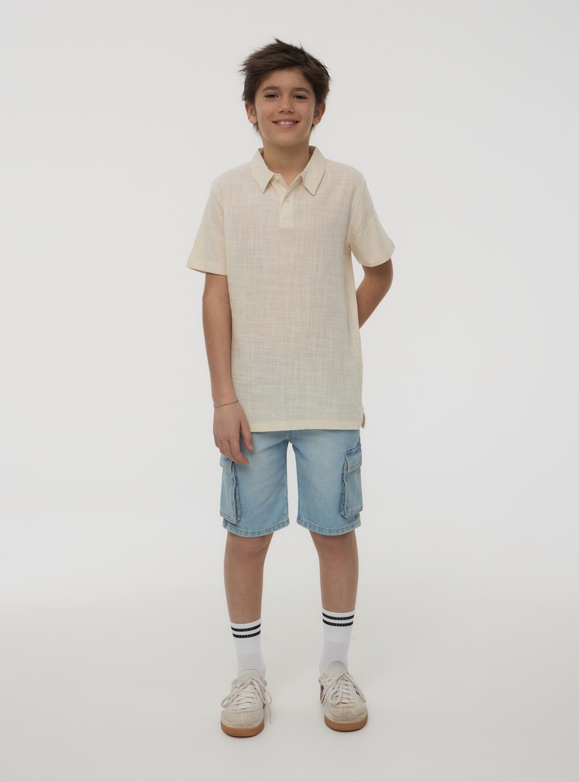 Maglietta modello polo da bambino, realizzata in bitessuto, è ideale per un look casual e versatile, perfetta per il tempo libero o per un outfit informale. Caratterizzata da una vestibilità regolare, presenta un design a tinta unita con colletto e chiusura a bottoni. Una scelta pratica e comoda per ogni occasione.Dettagli