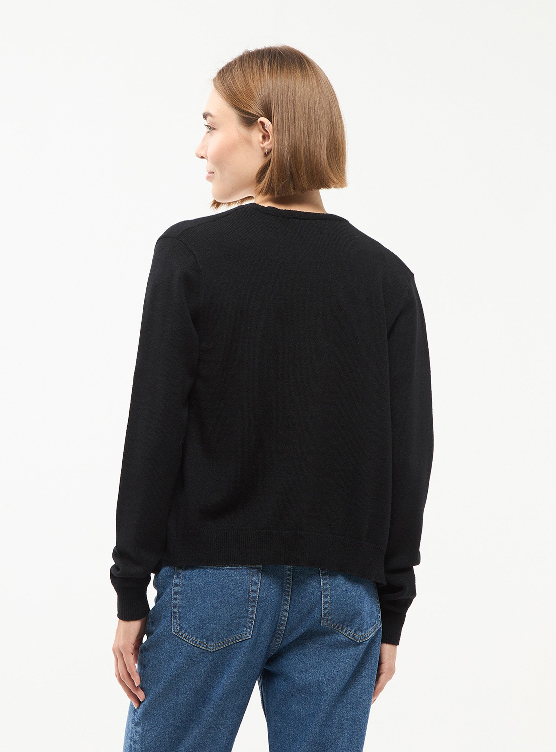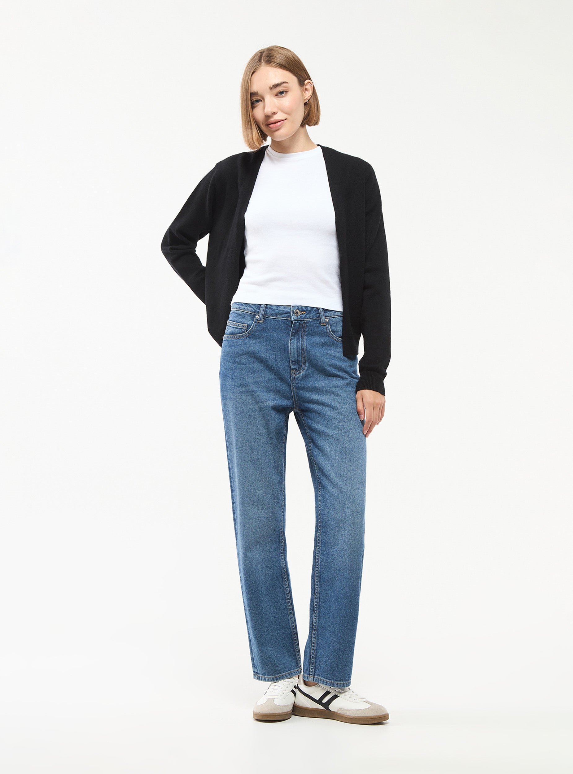 Cardigan aperto da donna in tessuto tinta unita. Manica lunga con polsino sul fondo. Vestibilità è  regular.