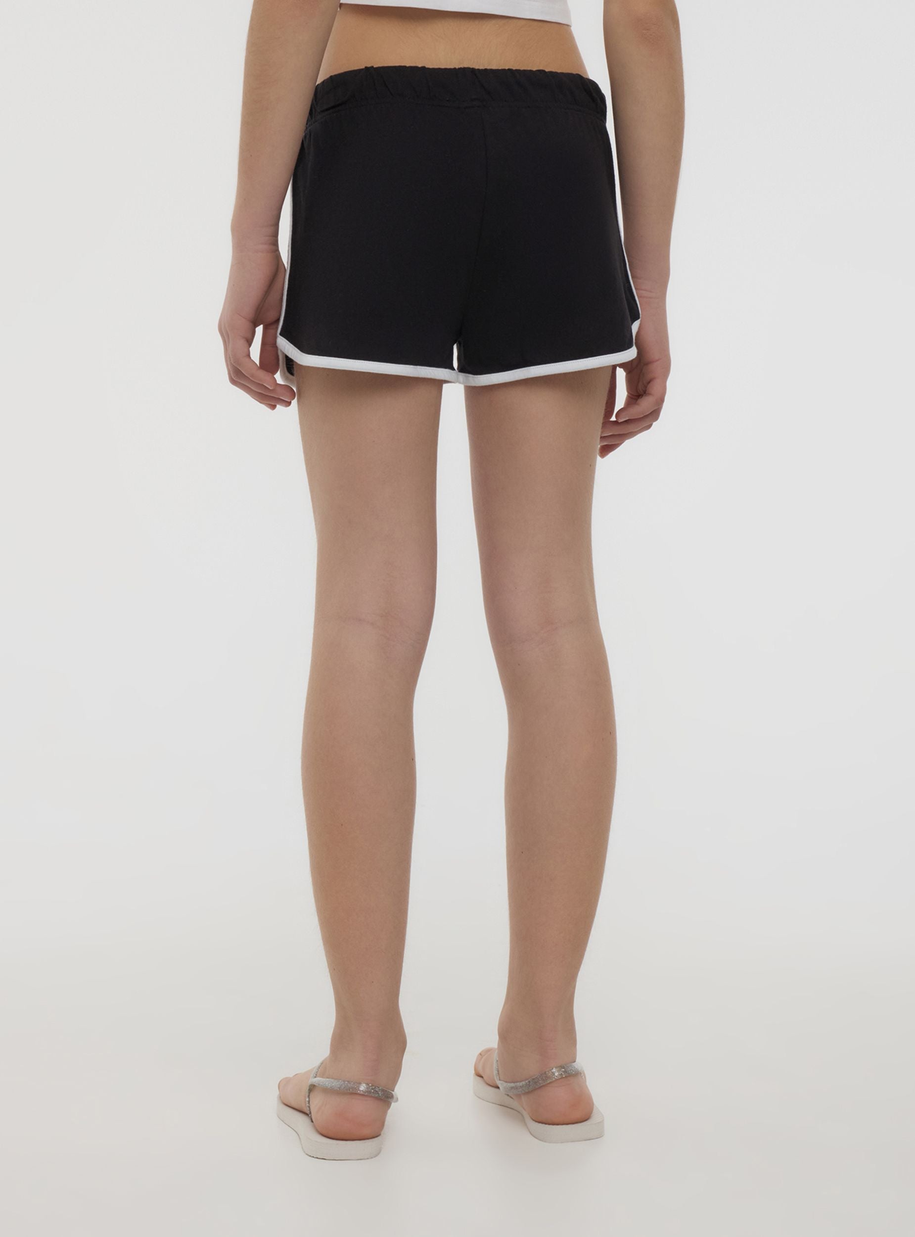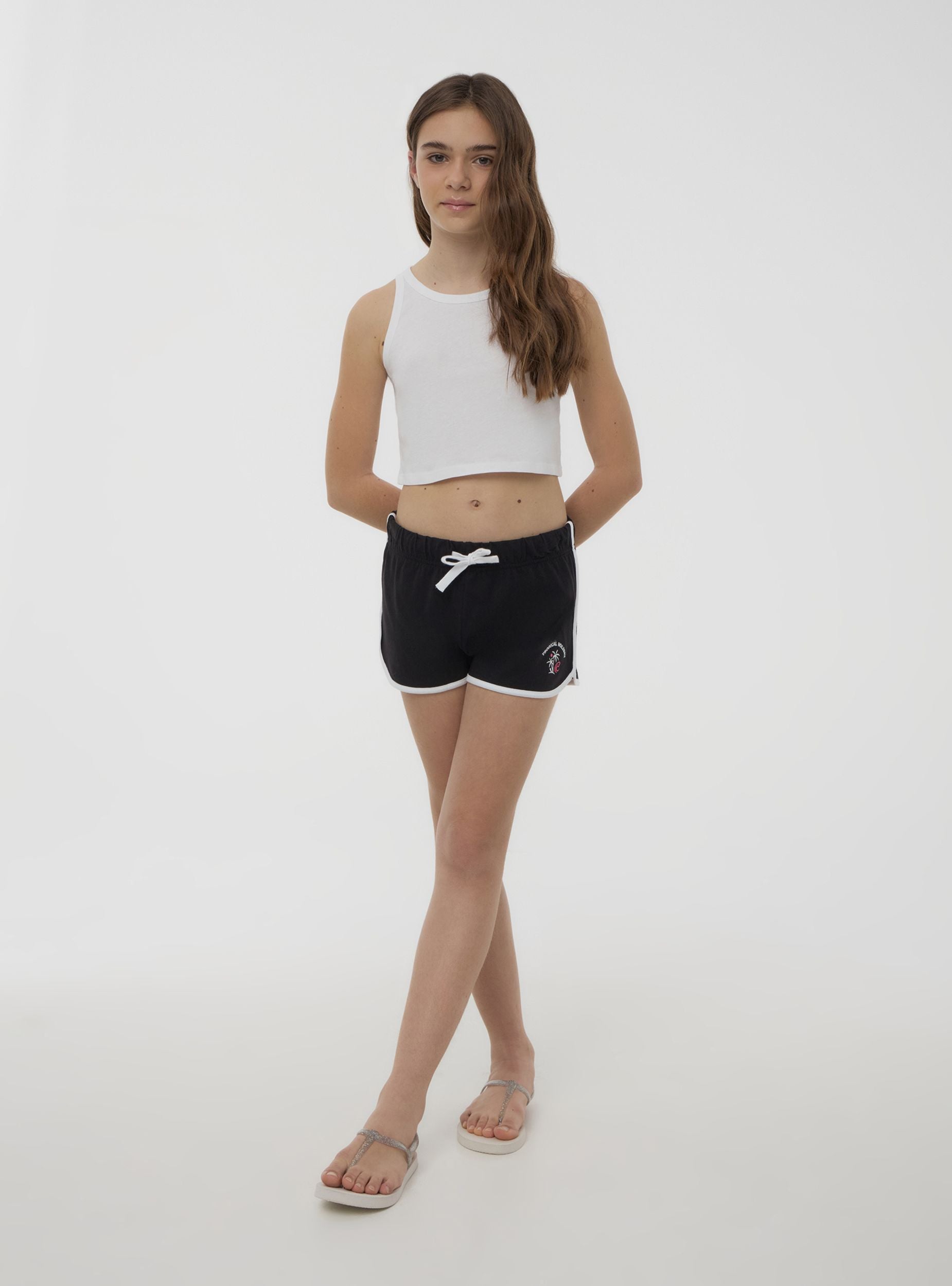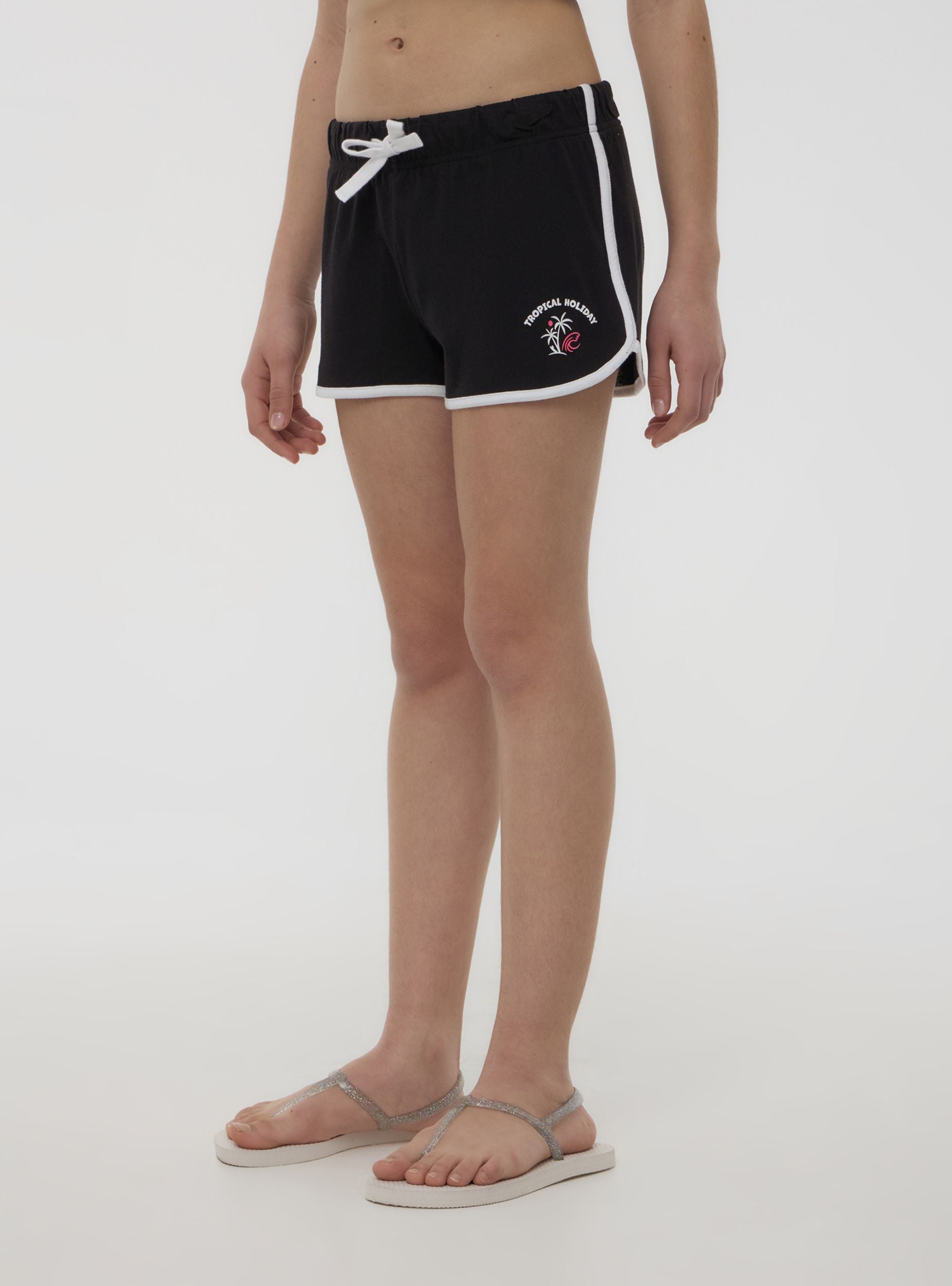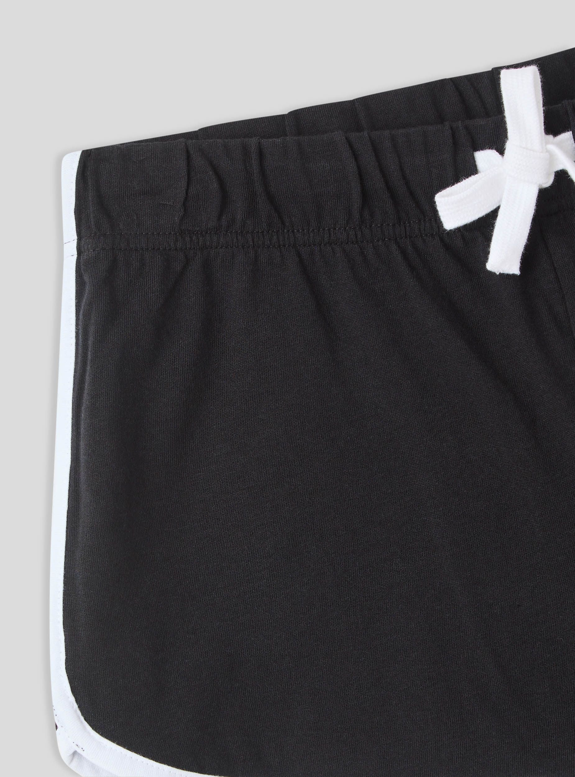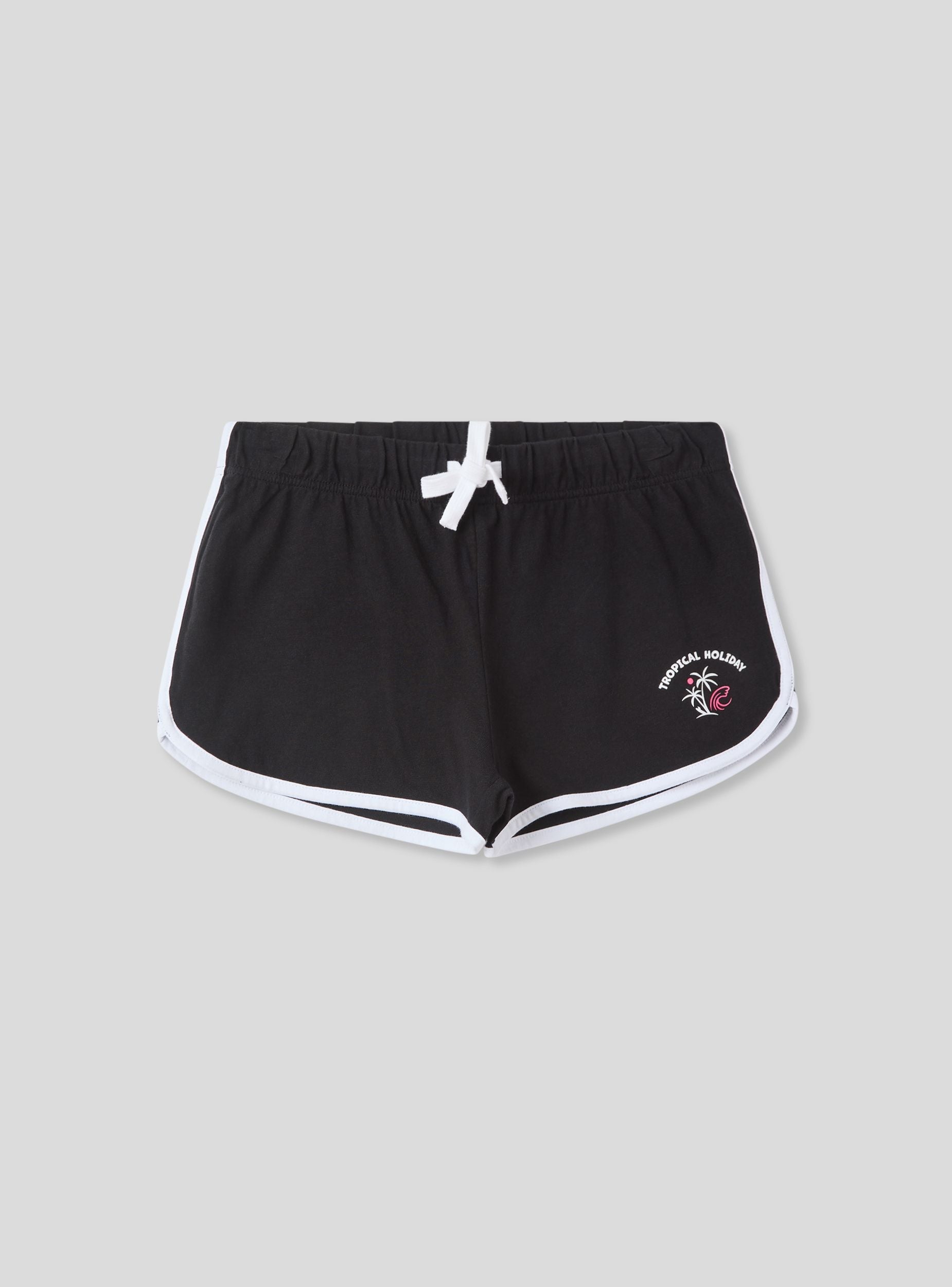 Pantaloncini da bambina con una vivace stampa frontale, caratterizzati da un design semplice e pratico. Il modello presenta una comoda coulisse in vita per una vestibilità regolabile, ideale per il massimo comfort durante il gioco o le attività quotidiane. I profili a contrasto lungo i bordi donano un tocco di stile, rendendo il capo più dinamico e adatto ad abbinamenti casual. Il taglio corto e la linea morbida garantiscono libertà di movimento, perfetti per le giornate estive.