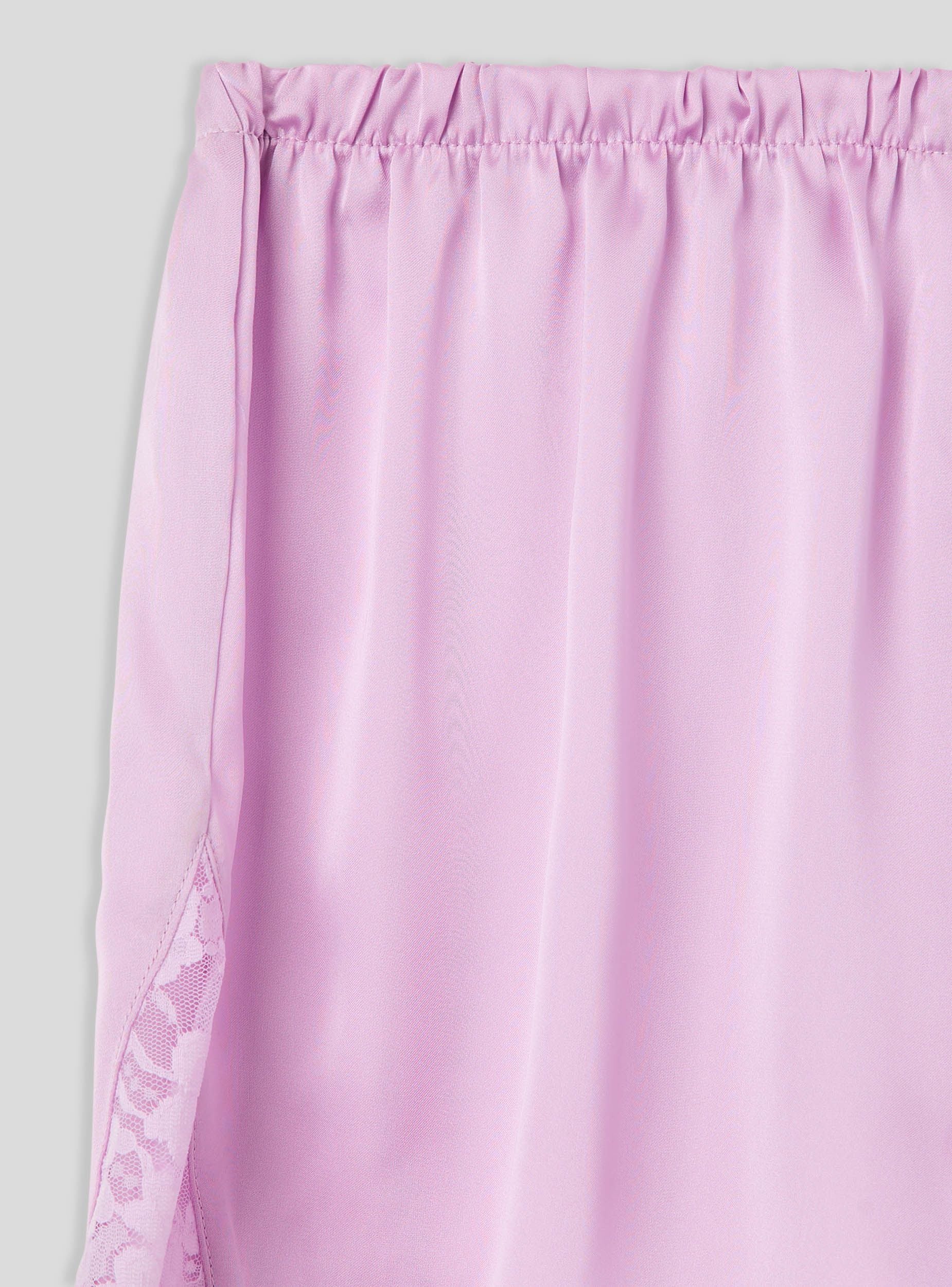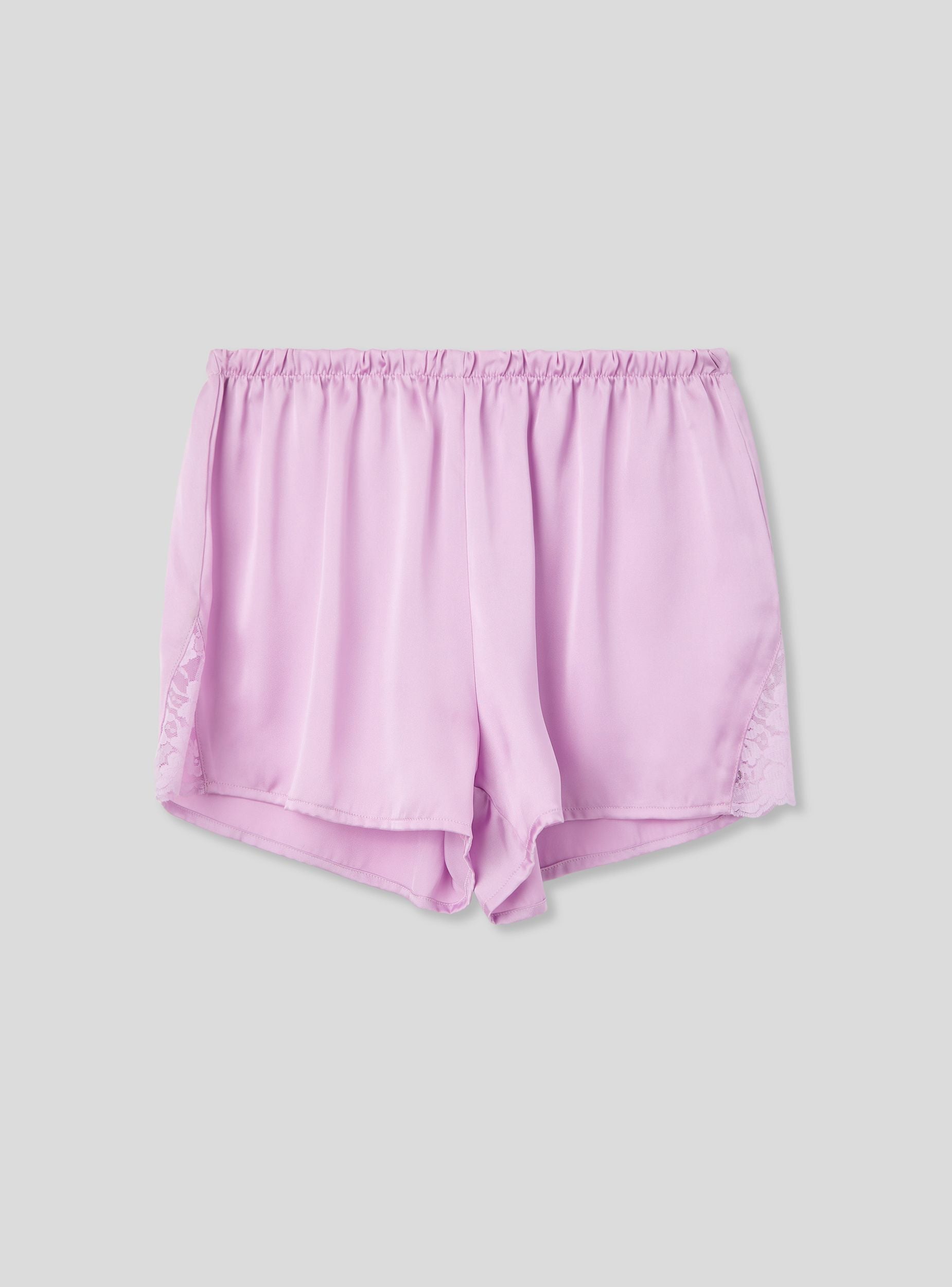 Pantaloncini corti del pigiama da donna a tinta unita, con elastico in vita per un comfort ottimale. Il design è arricchito da delicati inserti in pizzo sui lati, che aggiungono un tocco di eleganza e femminilità. La vestibilità morbida e fluida li rende perfetti per la notte, offrendo leggerezza e una sensazione di freschezza sulla pelle. Ideali da abbinare a una canotta o una maglietta coordinata per un completo da notte raffinato e confortevole.Dettagli