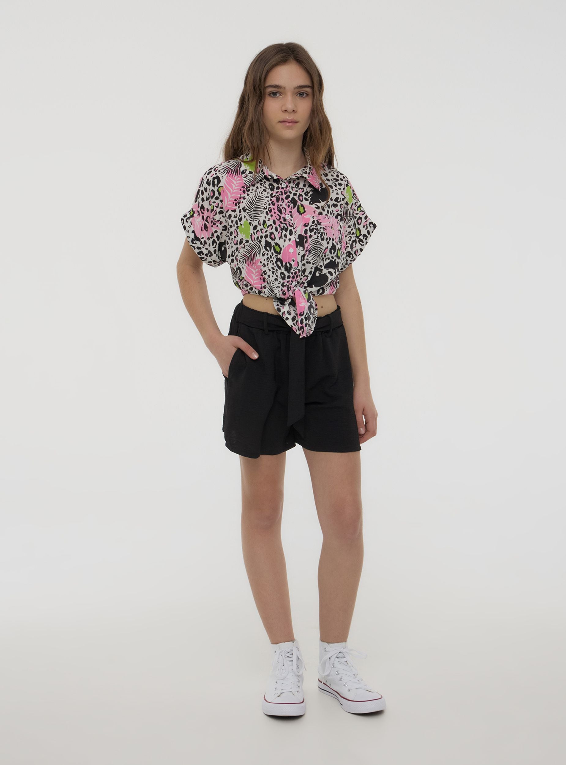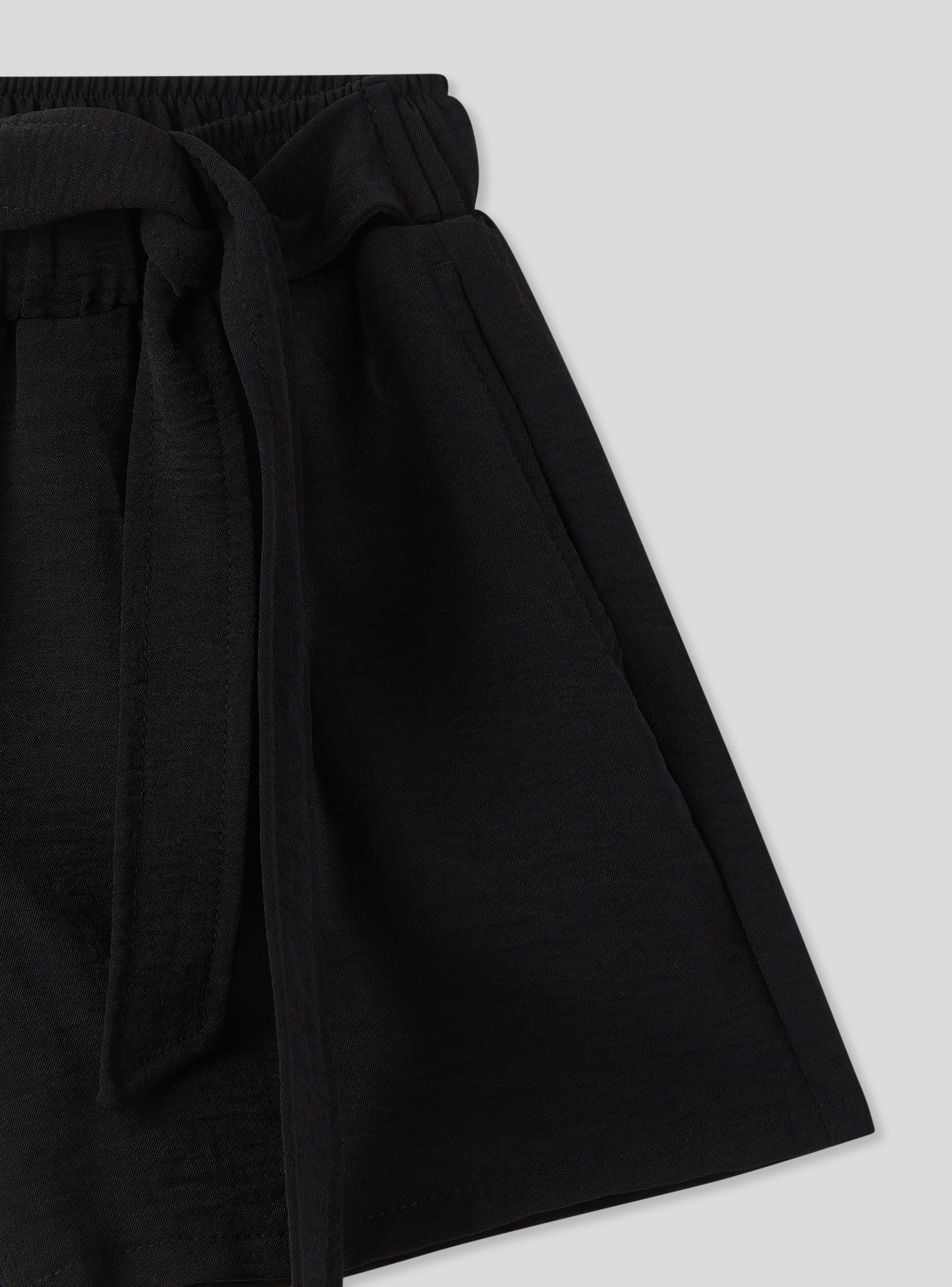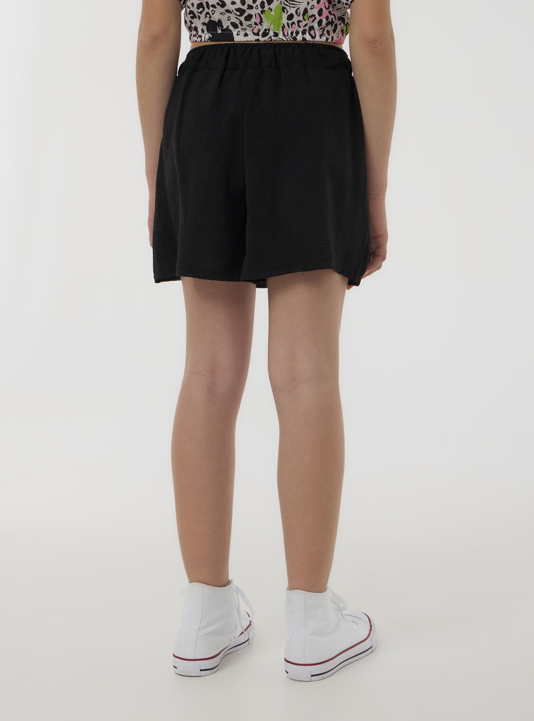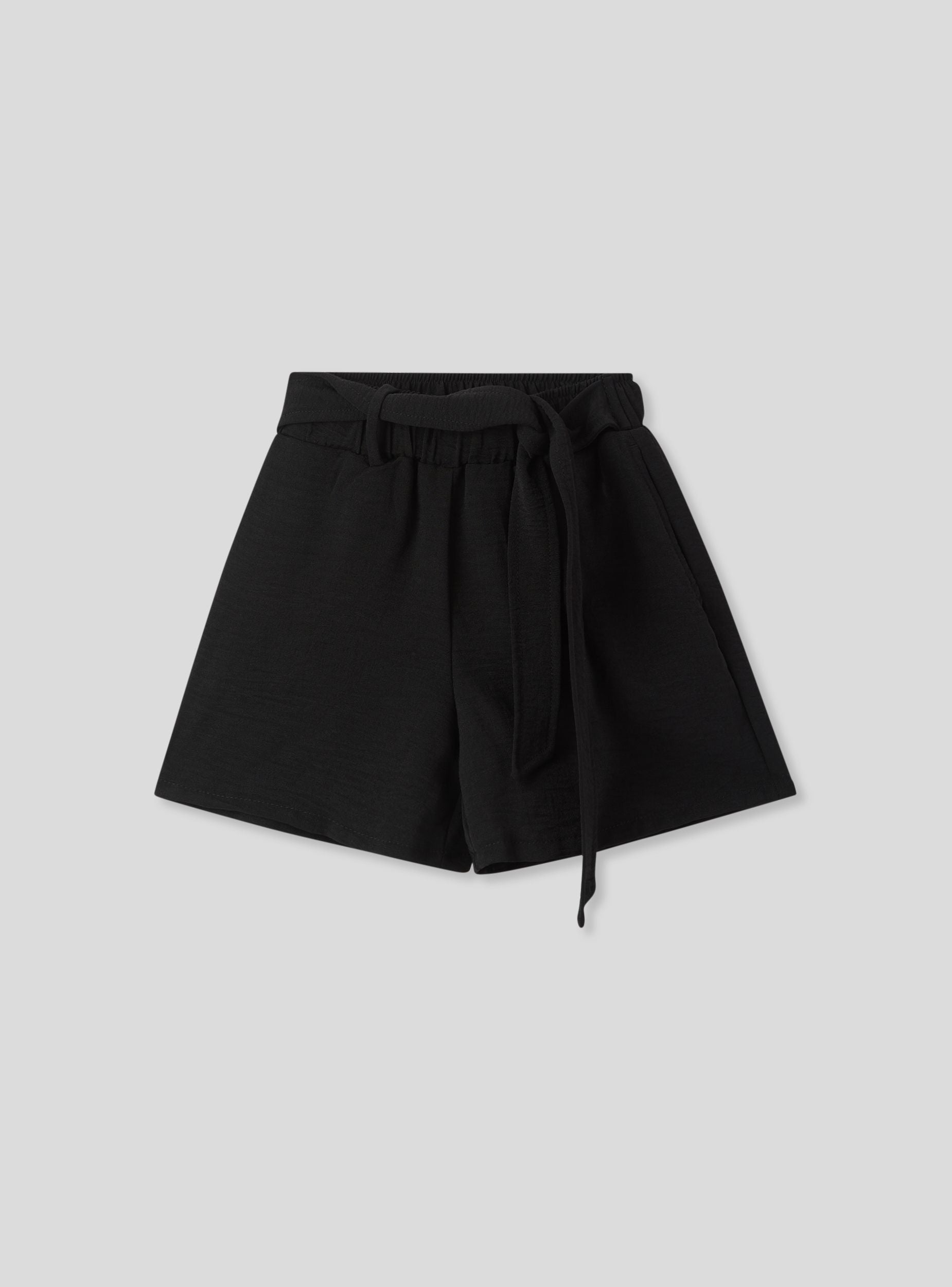 Pantaloncini da bambina, ideali per le giornate estive grazie alla vestibilità comoda e al design pratico. Il modello corto con tinta unita si distingue per la fusciacca regolabile in vita, che aggiunge un tocco di stile e permette un fit personalizzato. Le tasche laterali offrono spazio per piccoli oggetti, rendendoli perfetti per il tempo libero e le attività all'aria aperta.
