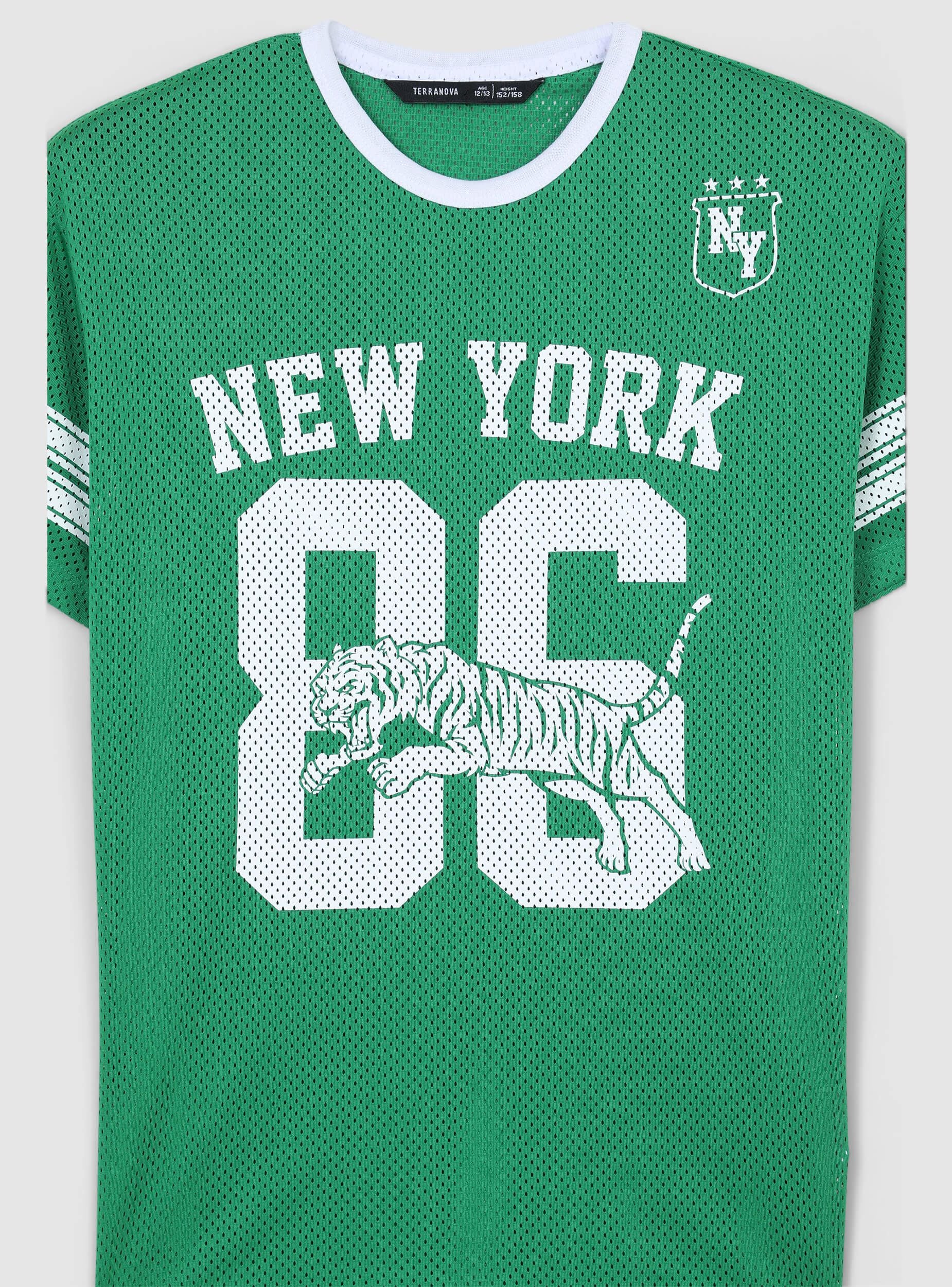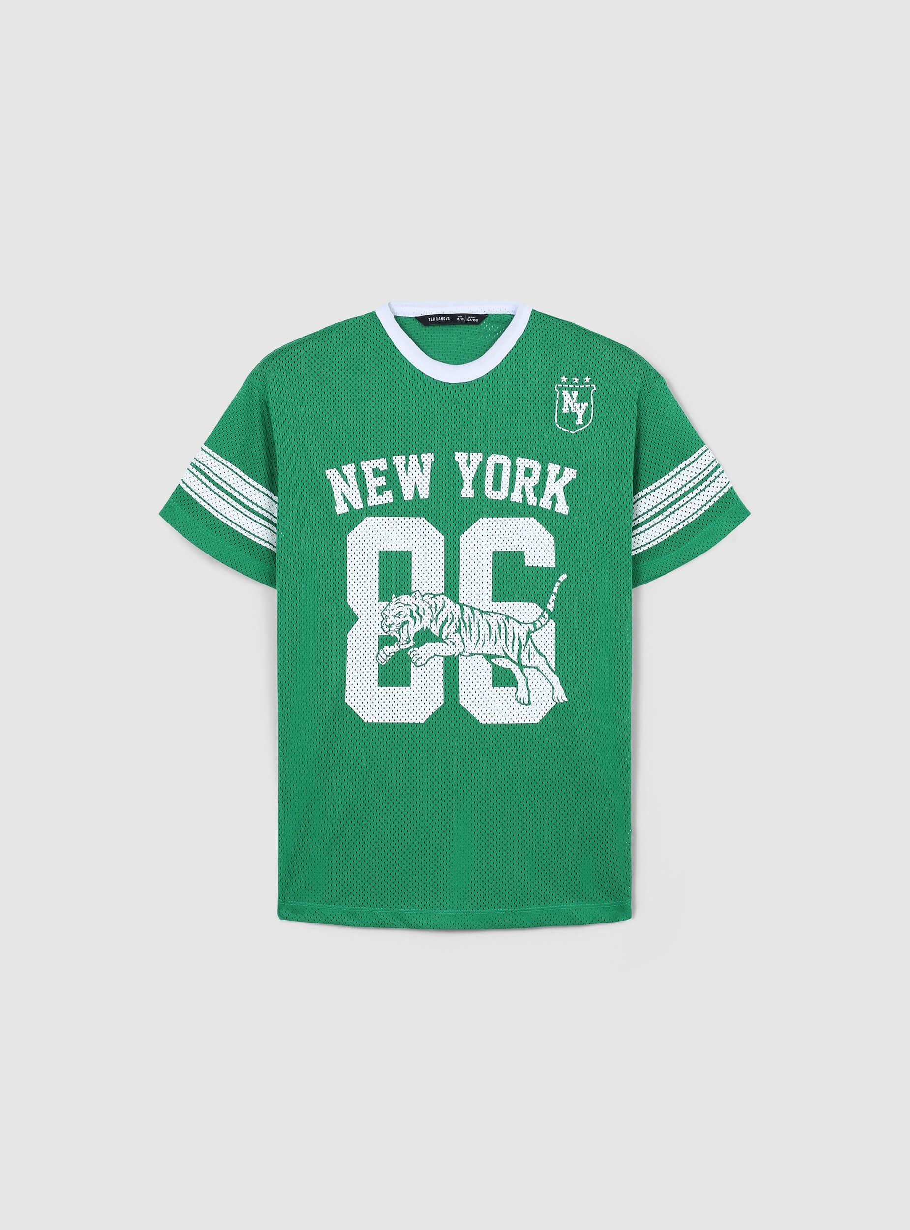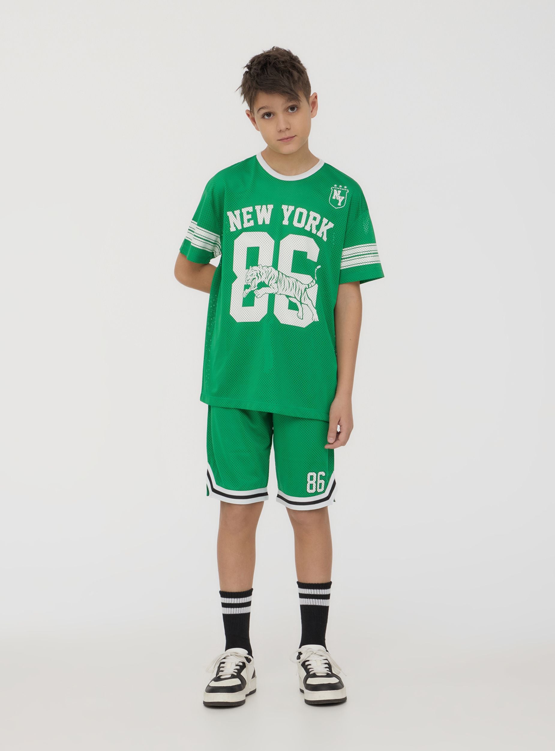Maglietta da bambino ideale per un look sportivo e dinamico, perfetta per il tempo libero o per attività all'aperto. Caratterizzata da una vestibilità regolare, presenta una stampa grafica accattivante e dettagli a righe sulle maniche. Un capo versatile e comodo per ogni occasione casual.Dettagli