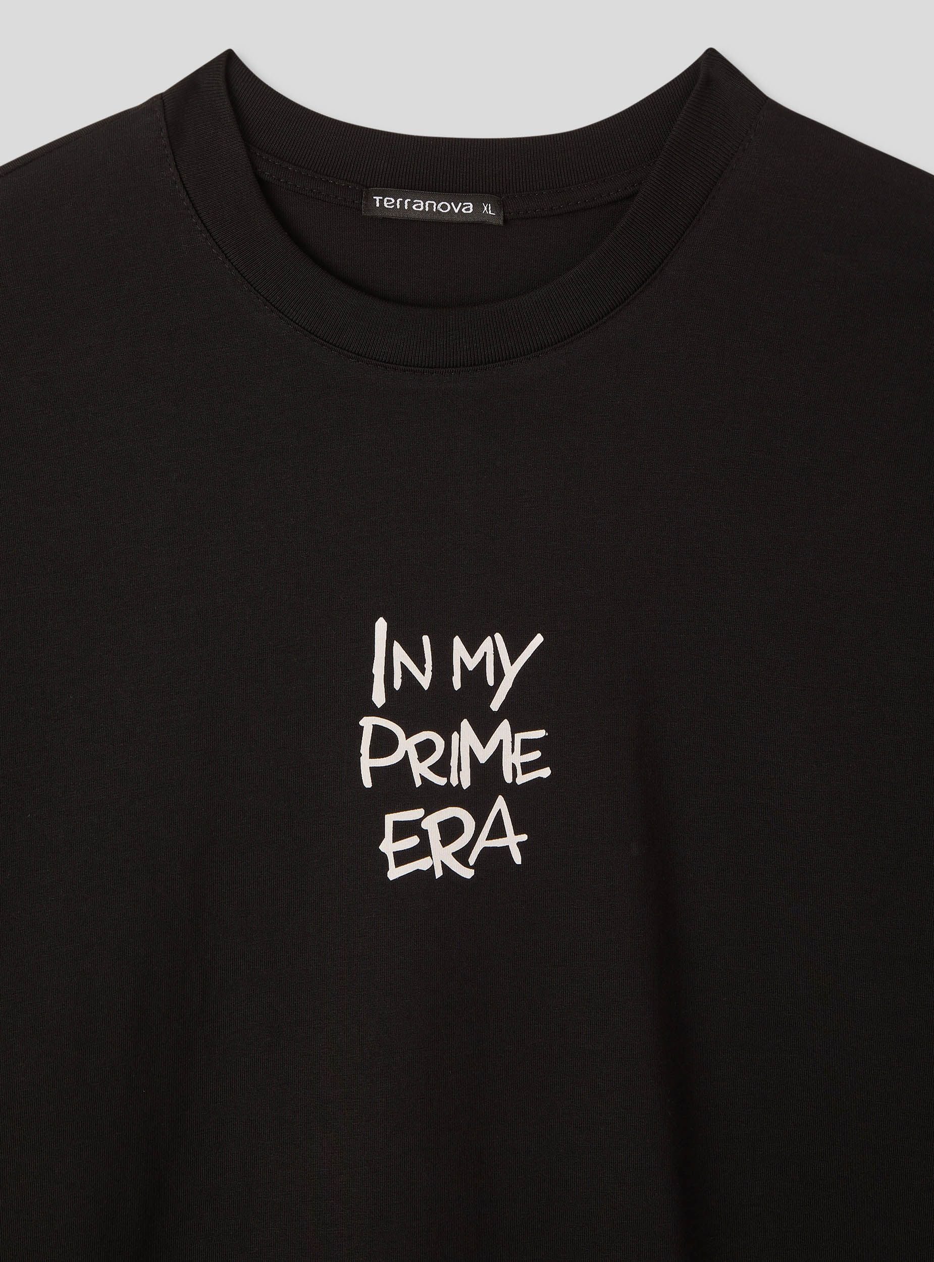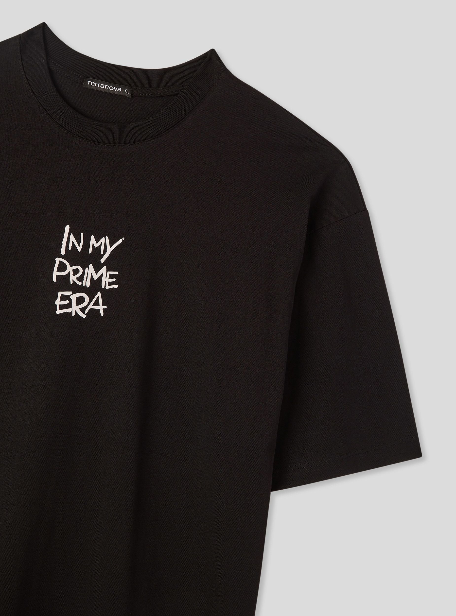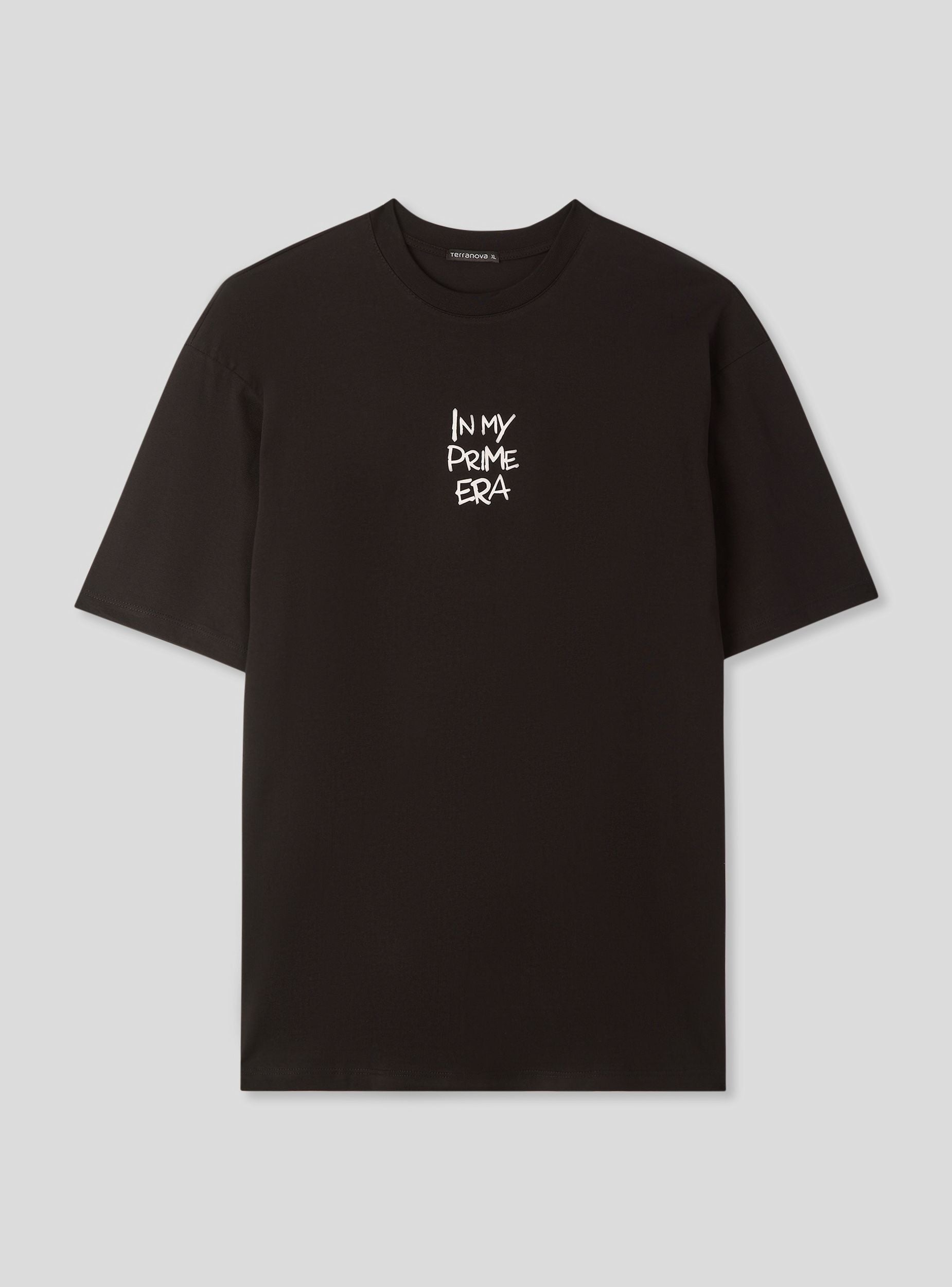 Maglietta da uomo con scritta, ideale per un look casual e moderno. Presenta una vestibilità boxy che garantisce comfort e stile. Perfetta per essere abbinata a jeans o pantaloni sportivi, questa maglietta si distingue per il suo design semplice e la scritta sul davanti. Un capo versatile per il tempo libero e le occasioni informali.