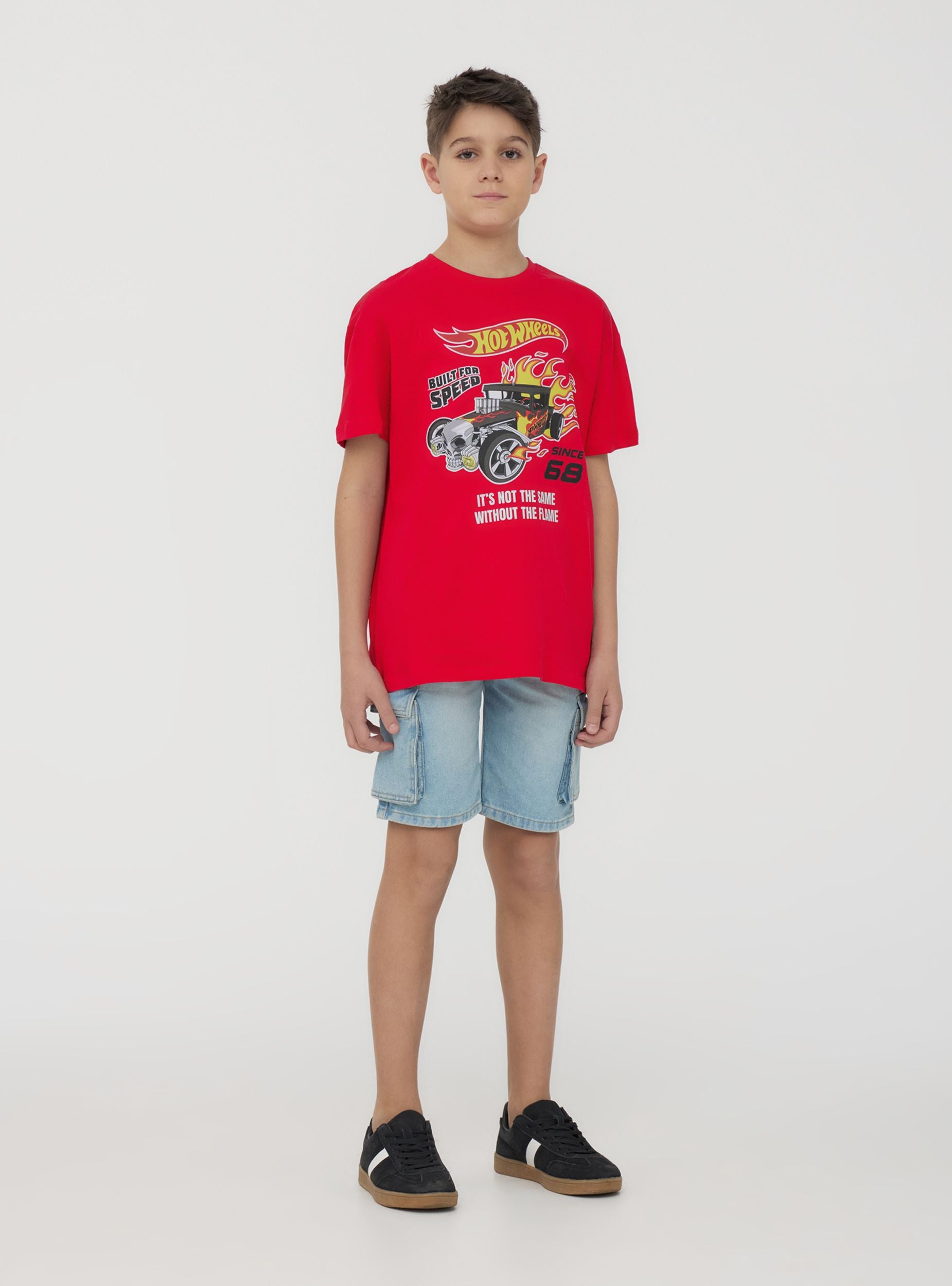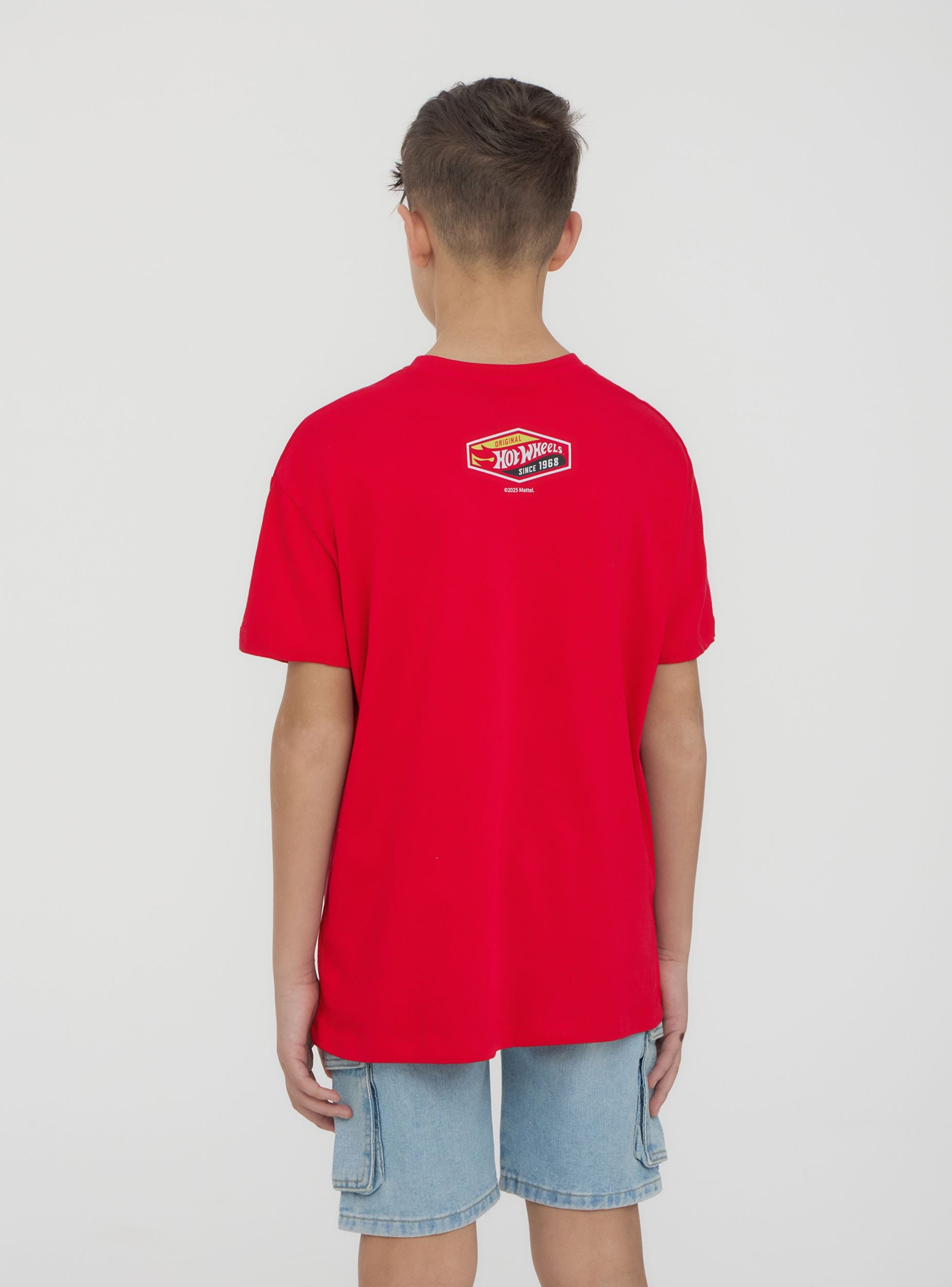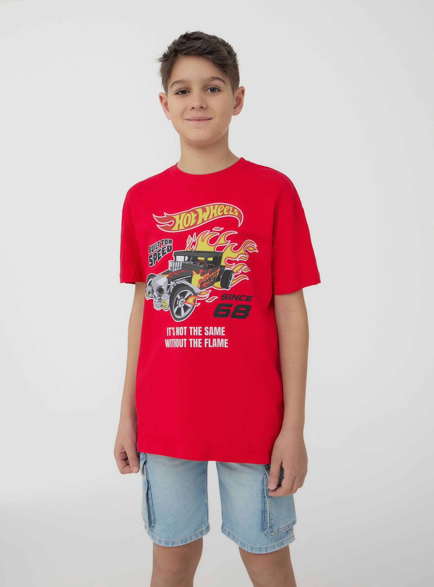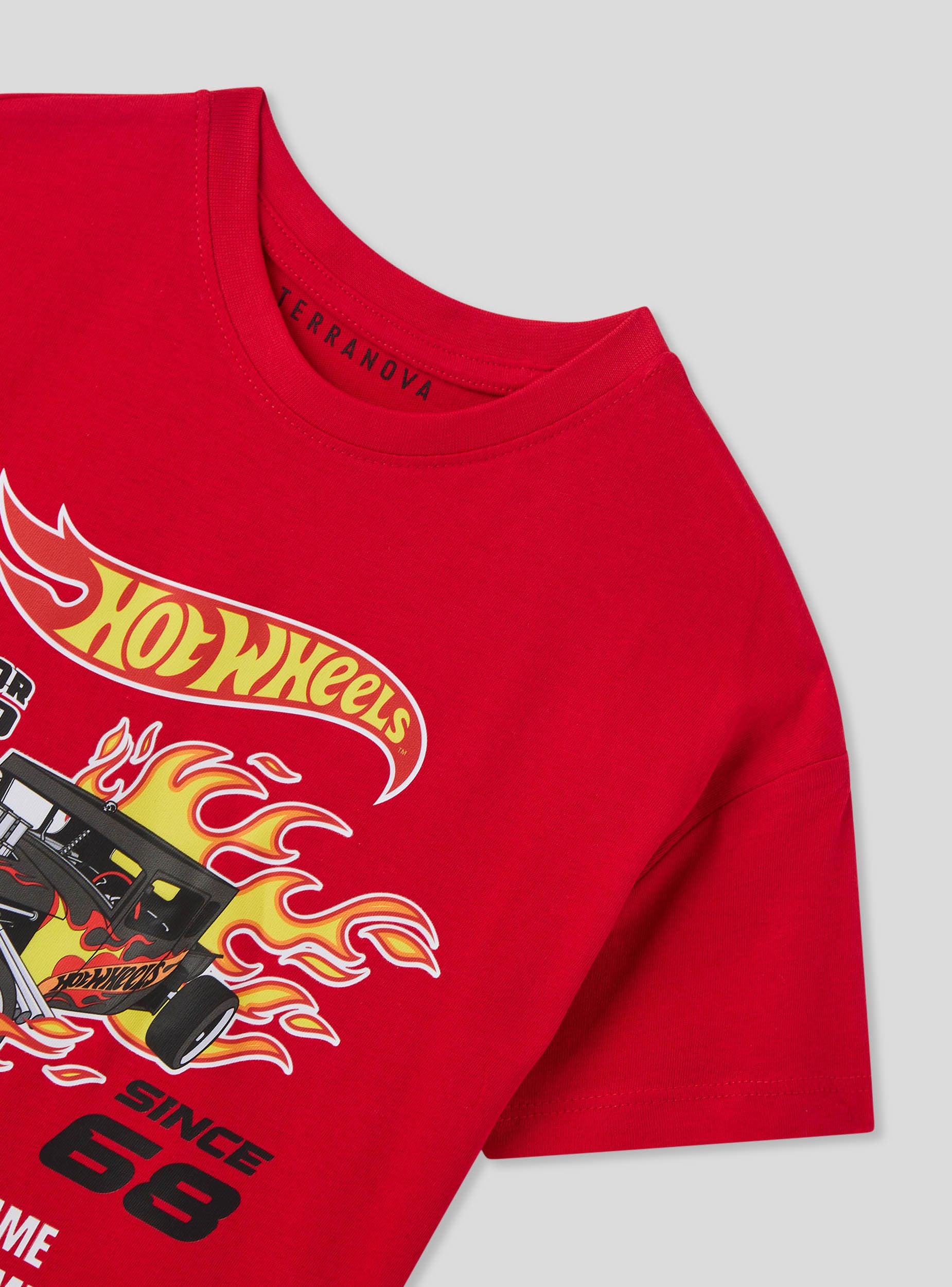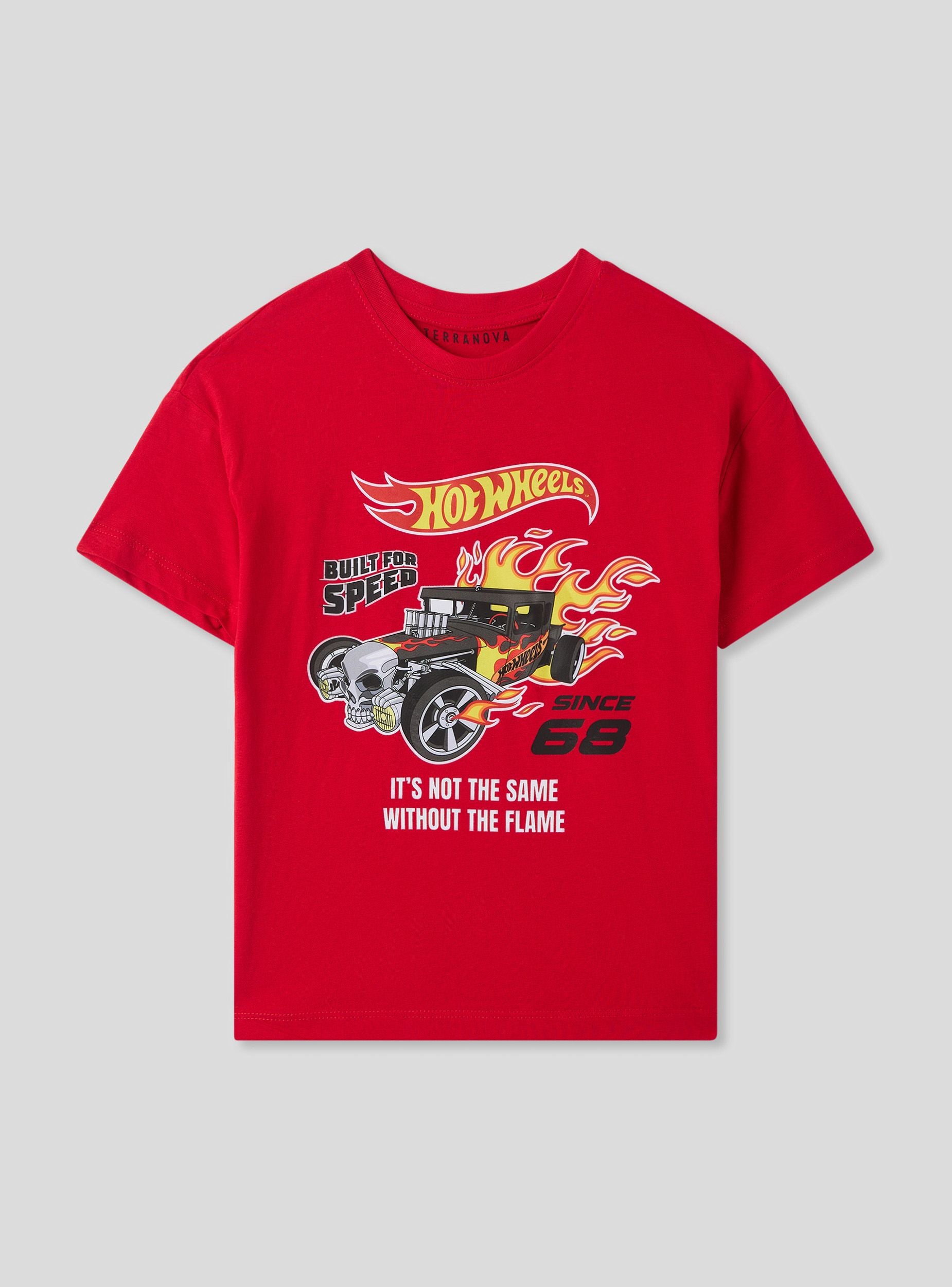 Energica e accattivante, questa maglietta da bambino con stampa Hot Wheels® è un must-have per chi ama il brivido della velocità. Il design con maniche corte e girocollo assicura libertà di movimento, mentre la grafica con auto fiammeggianti dona un carattere deciso. Perfetta da abbinare a joggers o pantaloni cargo per un outfit pratico e alla moda, ideale per il tempo libero.Dettagli