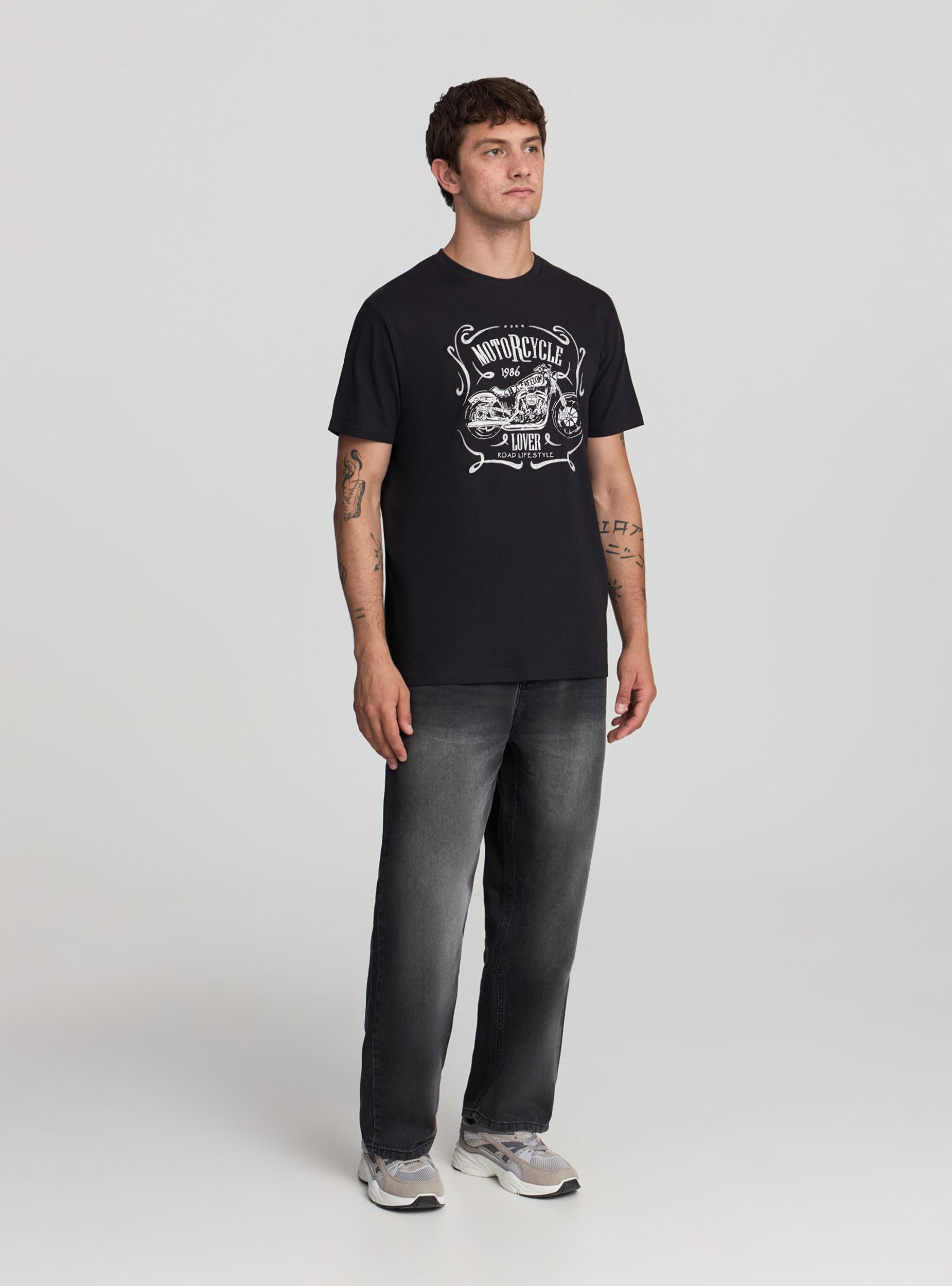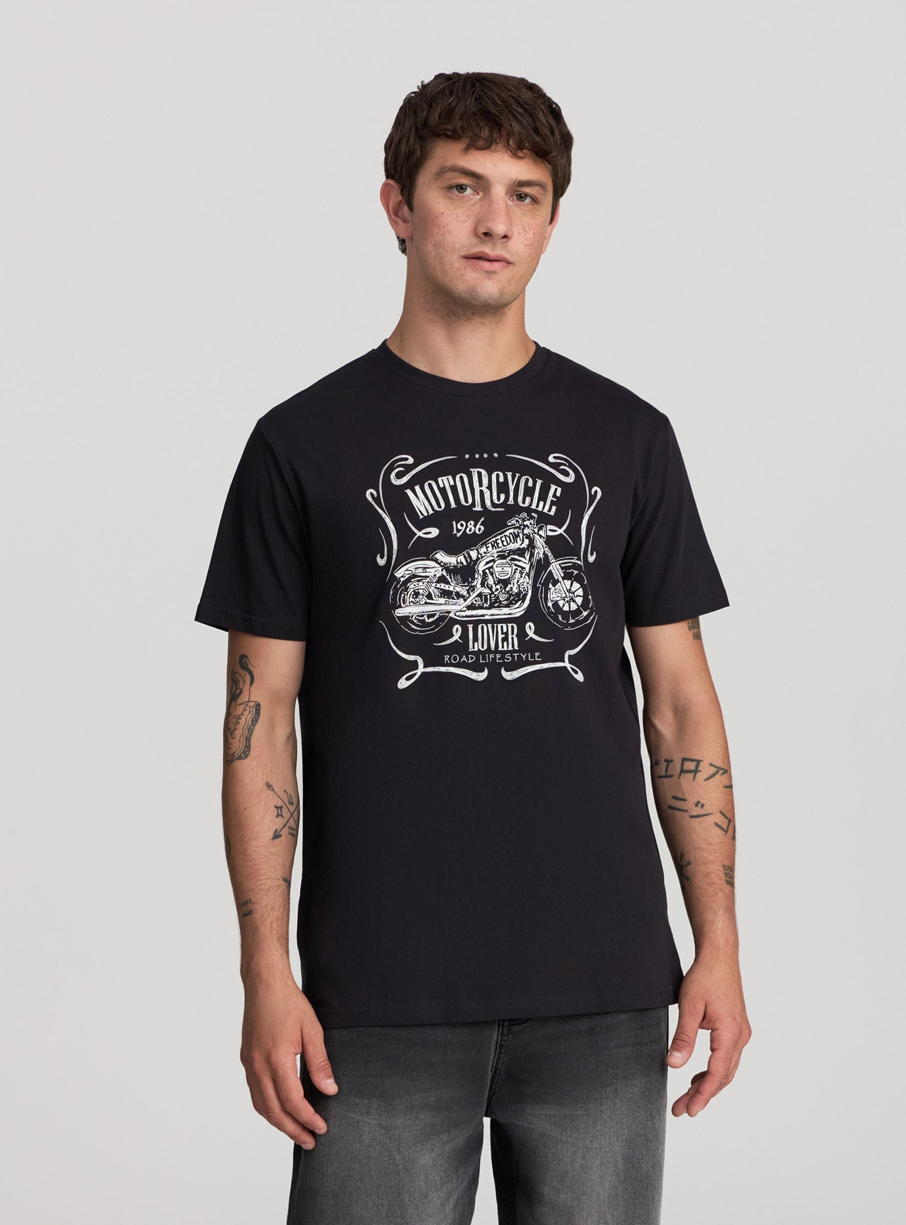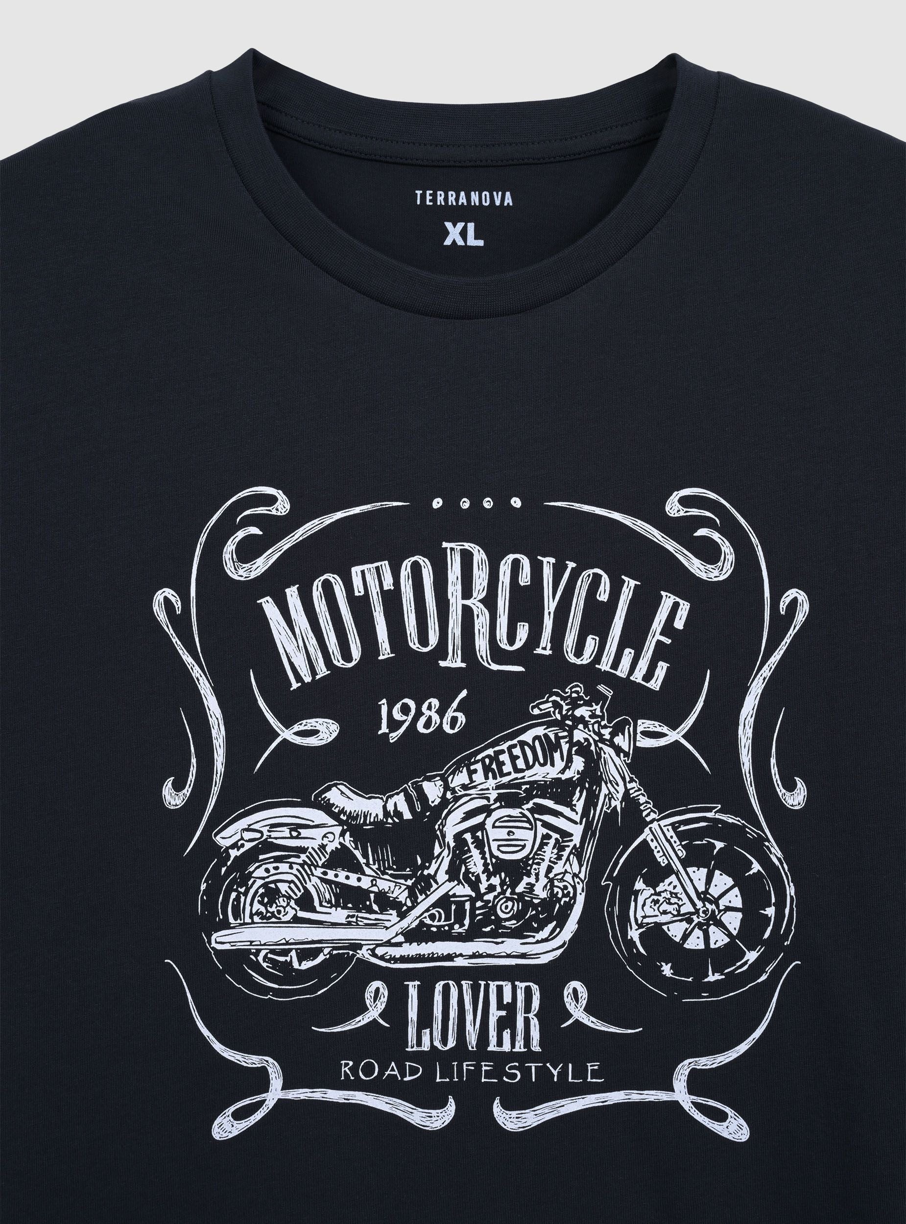 Maglietta da uomo con stampa moto, ideale per un look casual e dinamico. Presenta una vestibilità comoda e un design accattivante con dettagli grafici che richiamano lo stile motociclistico. Perfetta per abbinamenti con jeans o pantaloni cargo, si adatta a diverse occasioni informali. Il girocollo e le maniche corte completano il suo stile versatile e moderno.