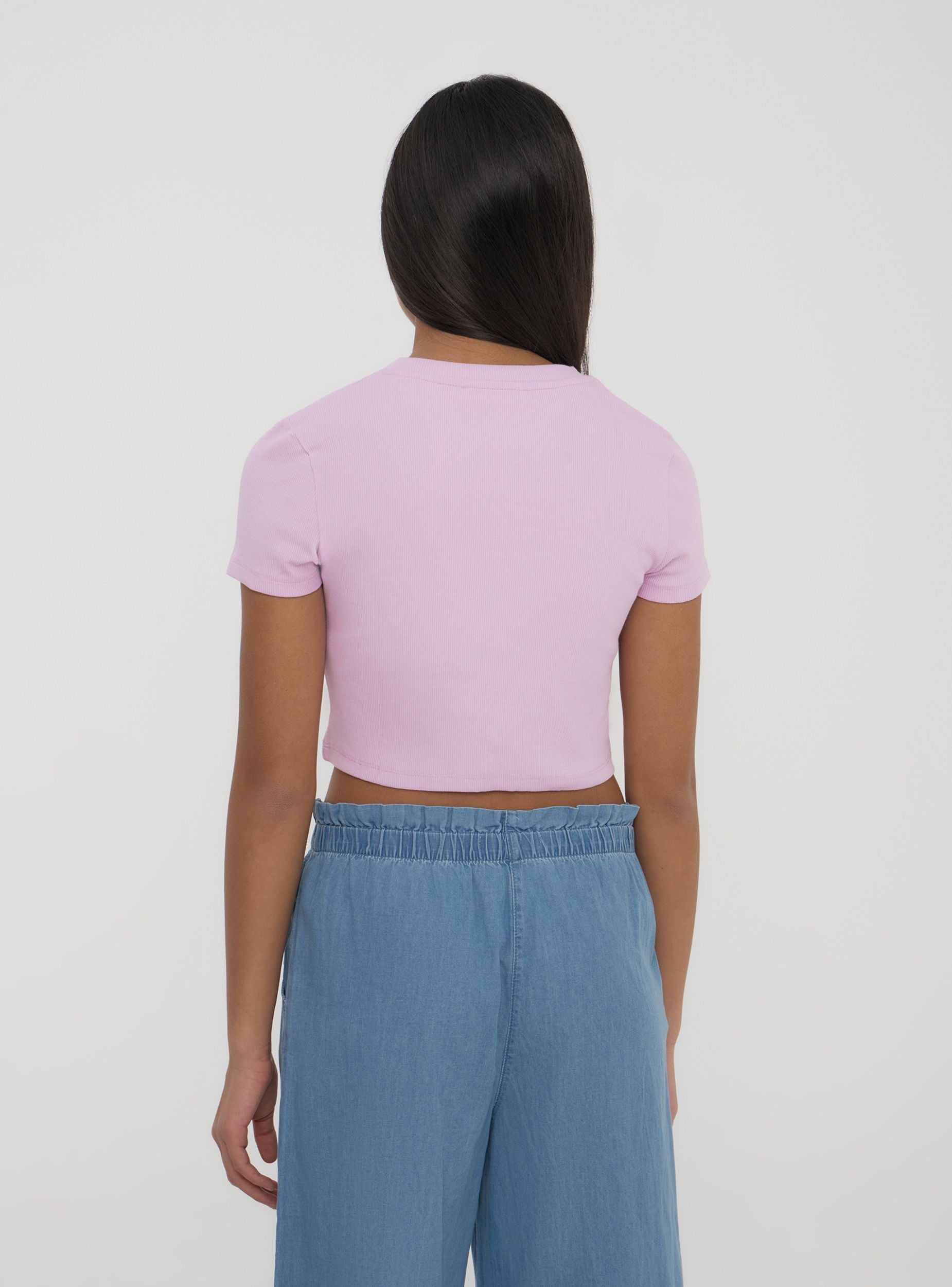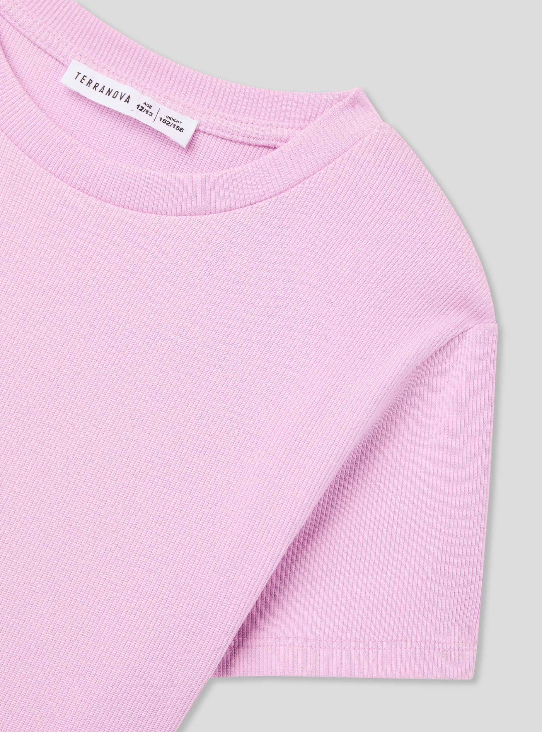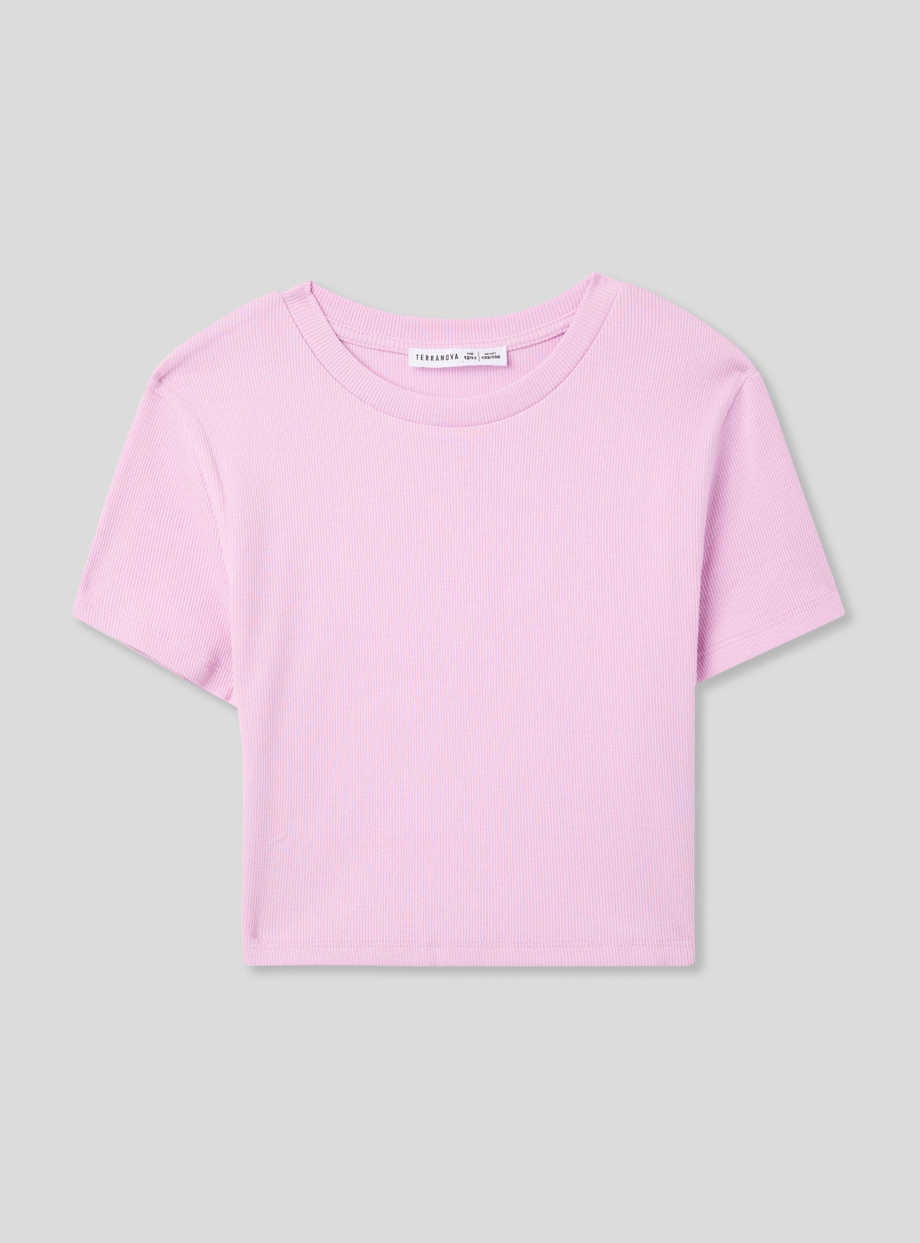 T-shirt crop a costine tinta unita