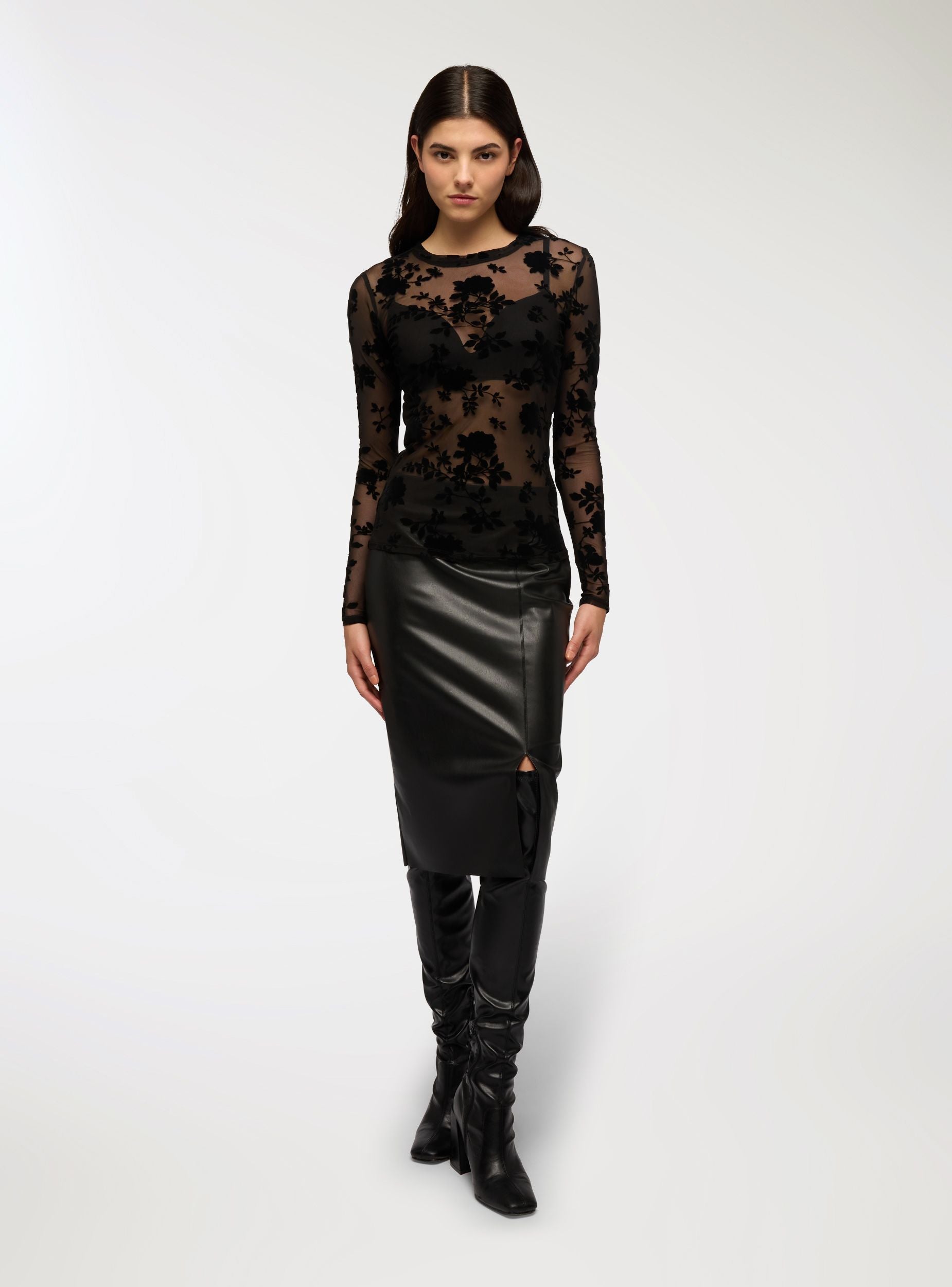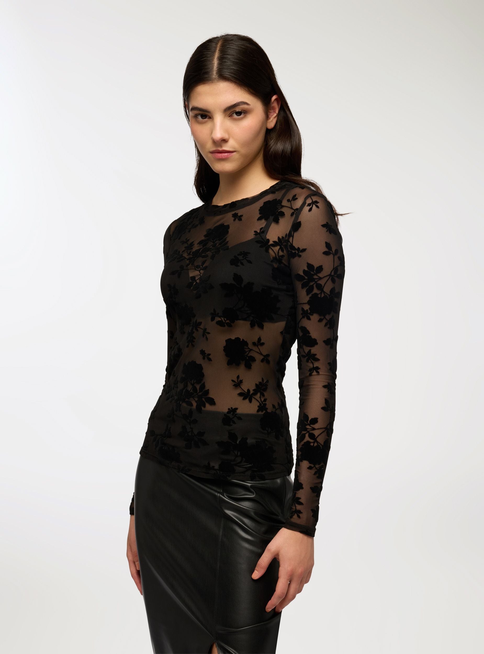 Maglietta da donna a maniche lunghe con stampa floreale. Ideale per un look trendy e femminile, si abbina perfettamente a jeans o gonne per un outfit casual o elegante. La vestibilitá aderente e il design raffinato la rendono adatta a diverse occasioni, dal tempo libero a eventi informali. Un capo versatile e di stile per il guardaroba di ogni donna.