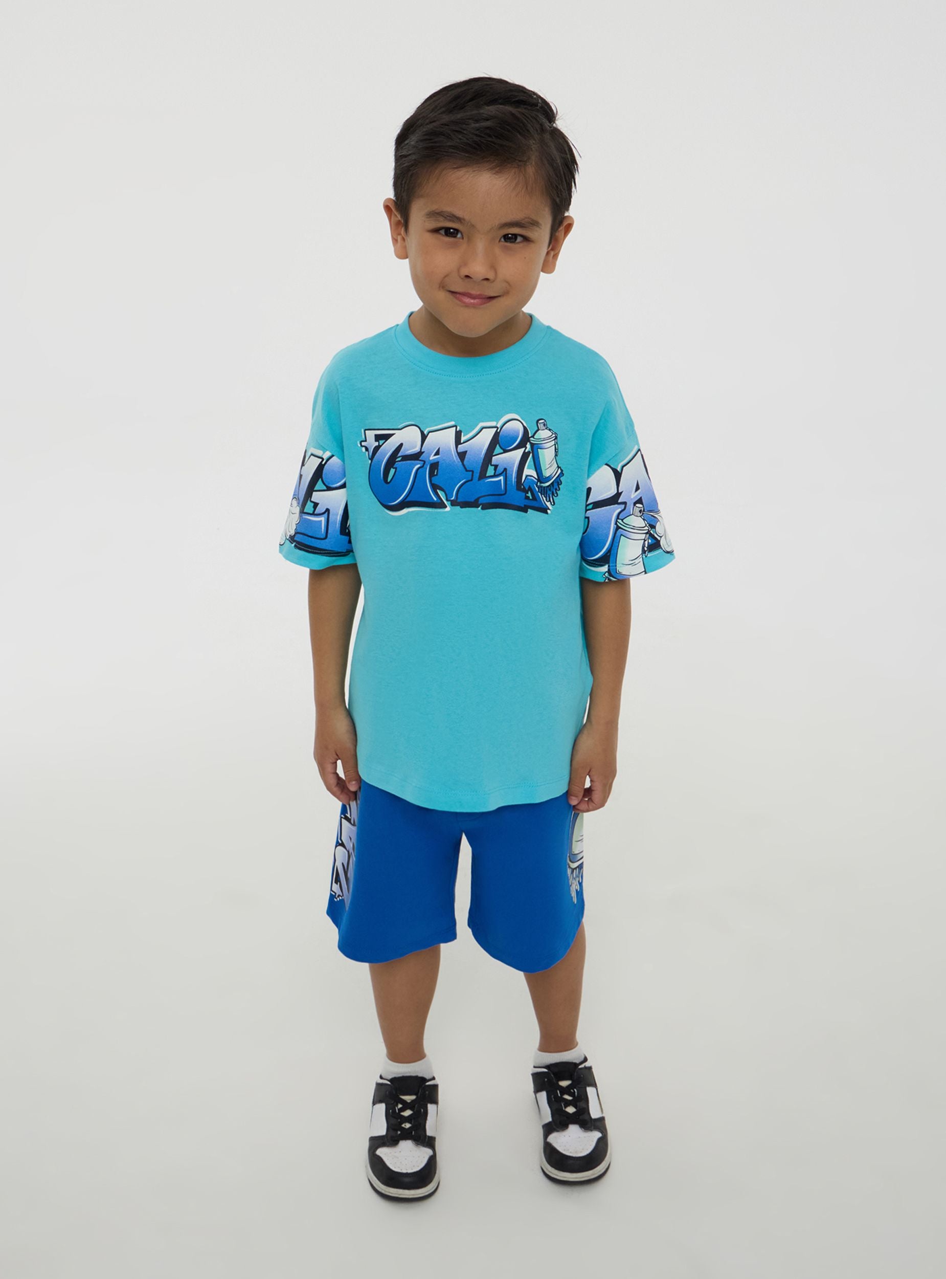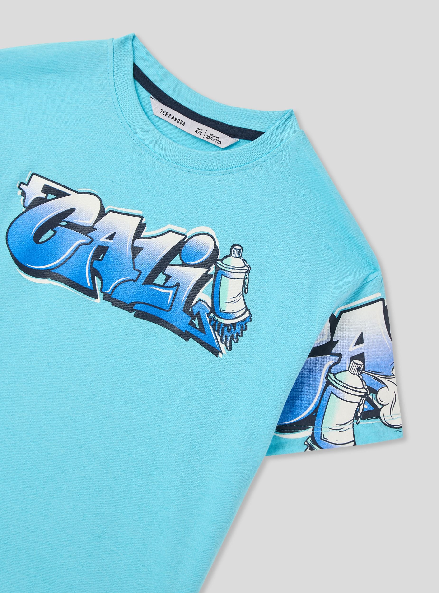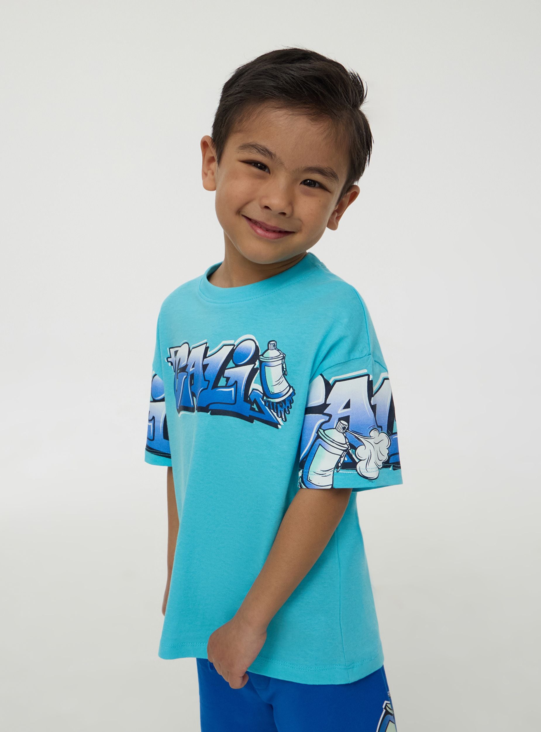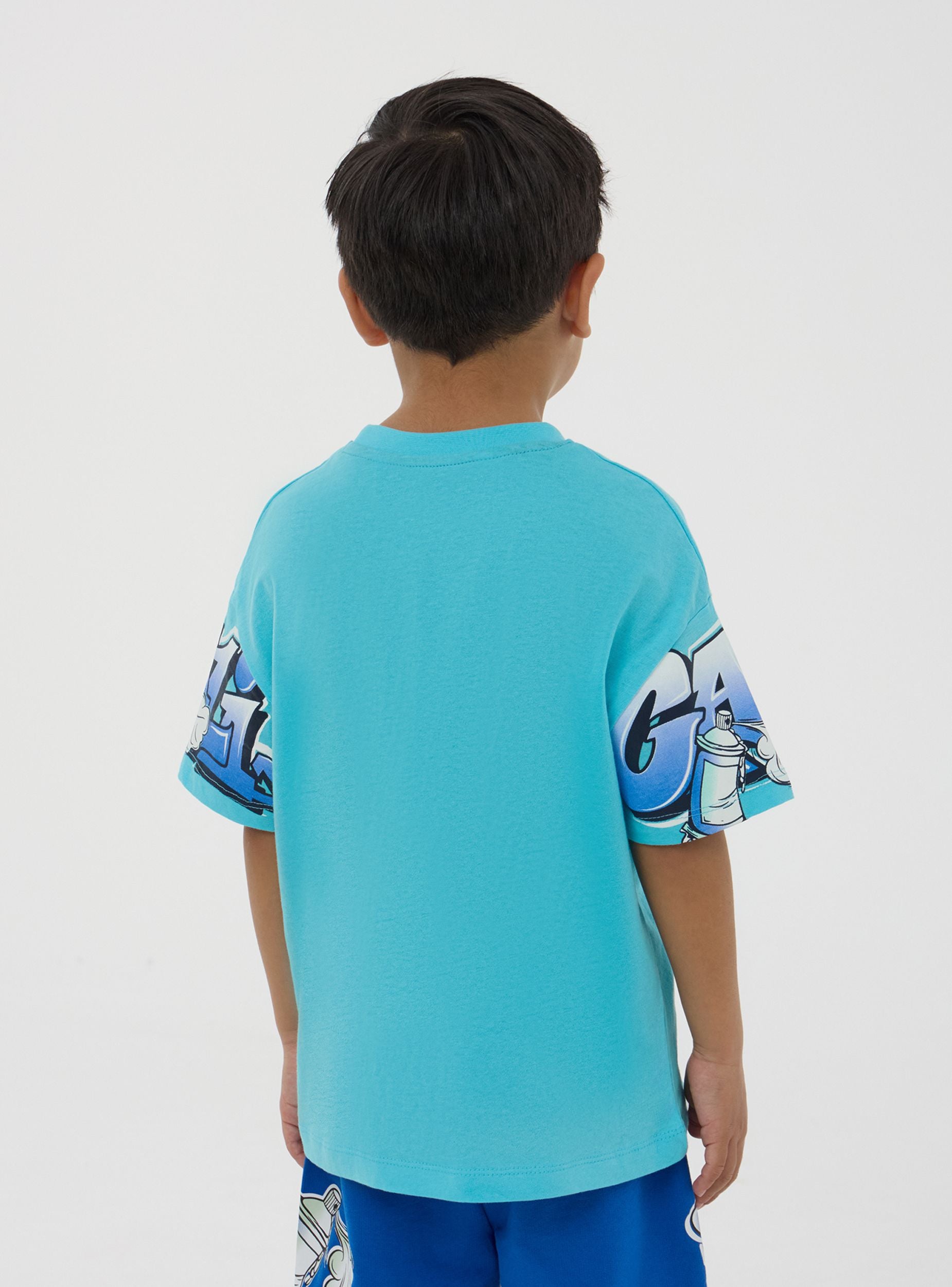 Maglietta da bimbo dallo stile urbano e grintoso, perfetta per aggiungere un tocco streetwear ai look quotidiani. Il modello presenta maniche corte e girocollo per un comfort ottimale, mentre la stampa graffiti sulle maniche e sul petto dona un aspetto energico e creativo. Ideale per il tempo libero, si abbina facilmente a jeans, joggers o bermuda per un outfit fresco e alla moda, perfetto per ogni avventura.Dettagli