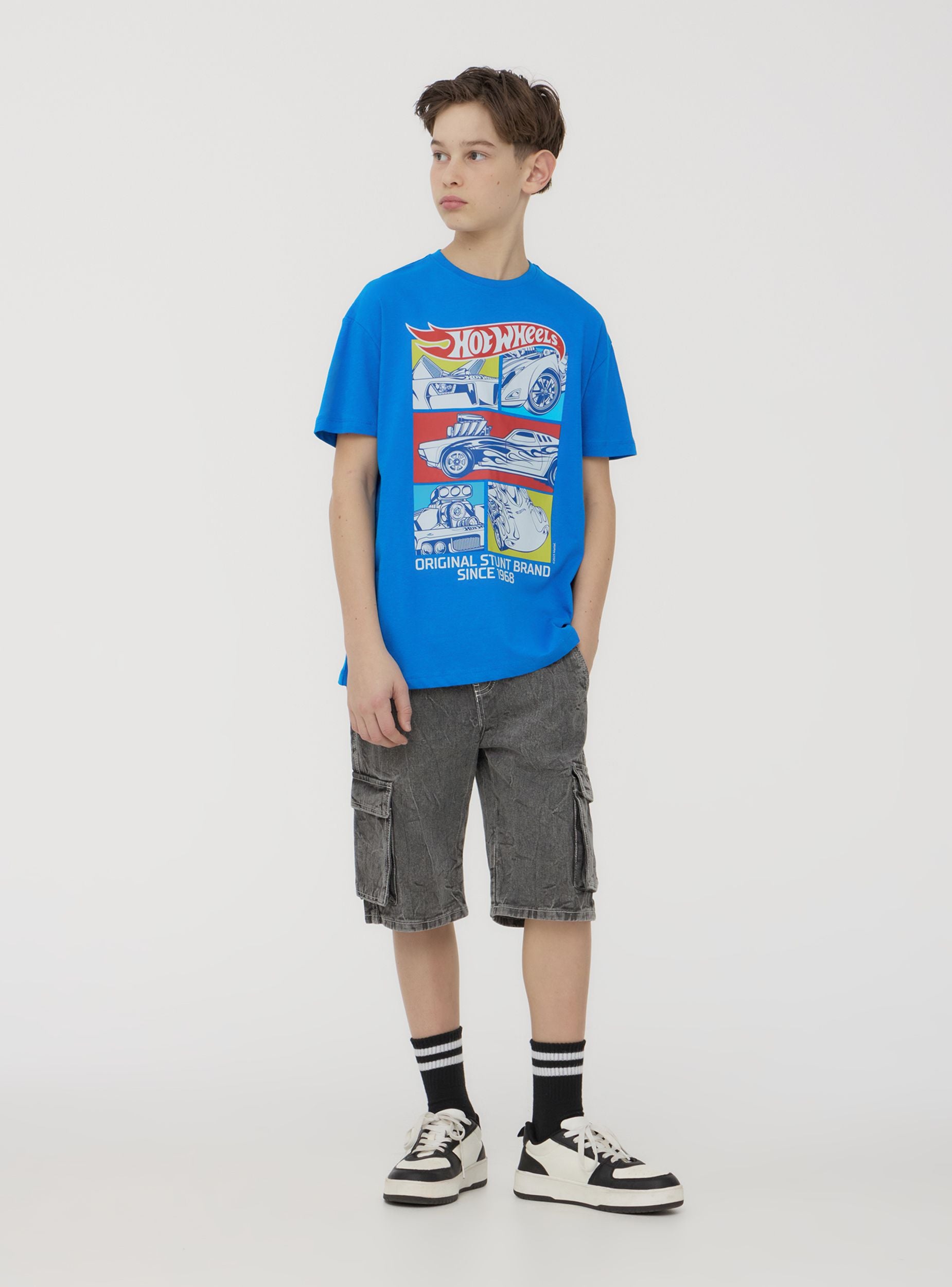 Perfetta per i piccoli appassionati di velocità, questa maglietta con stampa Hot Wheels® unisce stile e dinamismo. Il design con maniche corte e girocollo offre un comfort ideale per le giornate di gioco e avventura. Il motivo grafico ispirato al mondo delle corse aggiunge un tocco grintoso, perfetto per abbinamenti con jeans o bermuda per un look sportivo e casual.Dettagli
