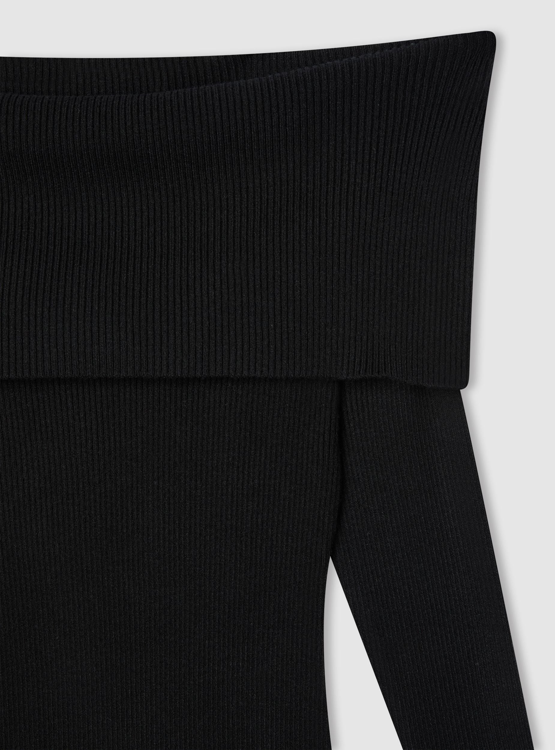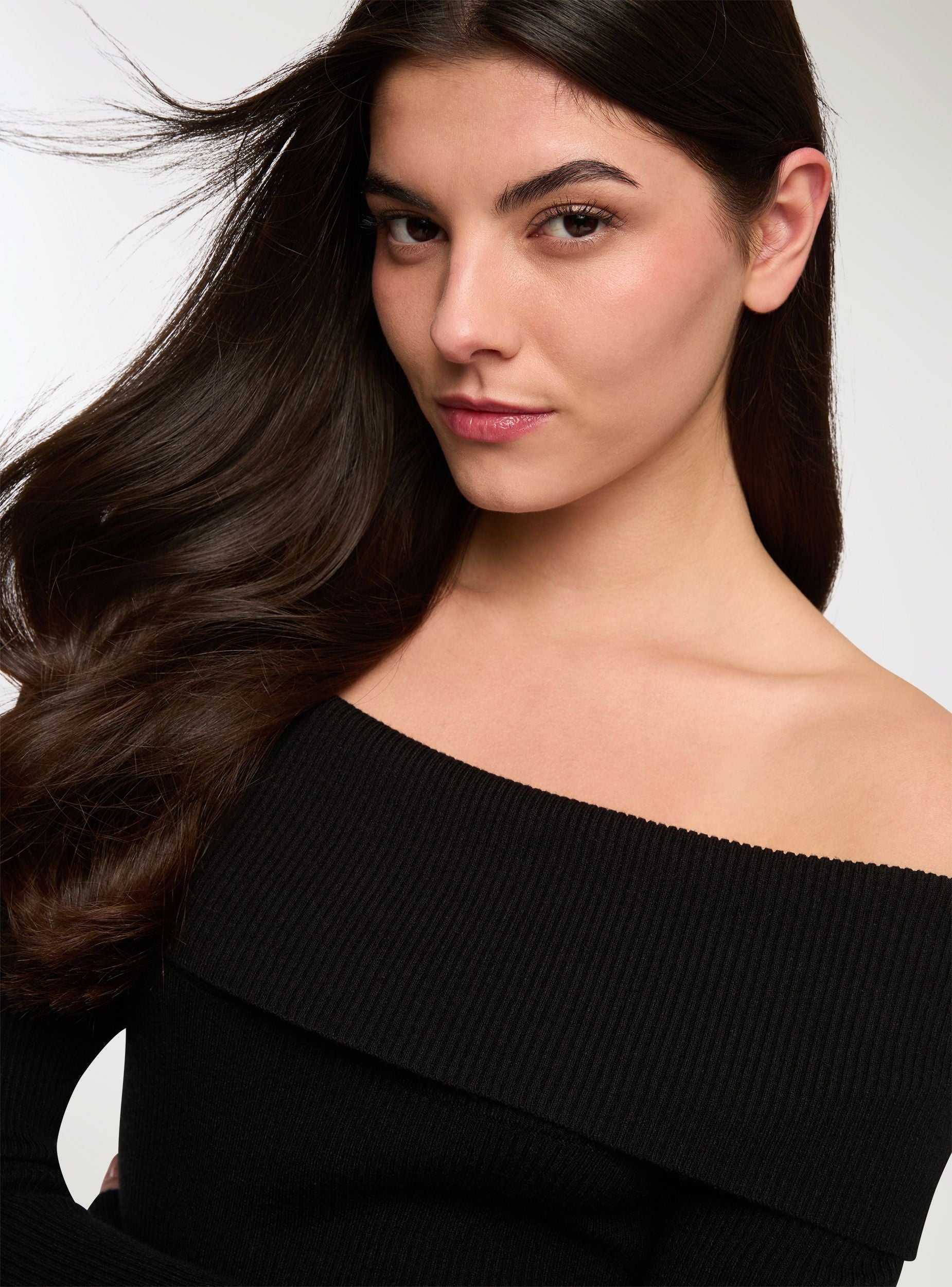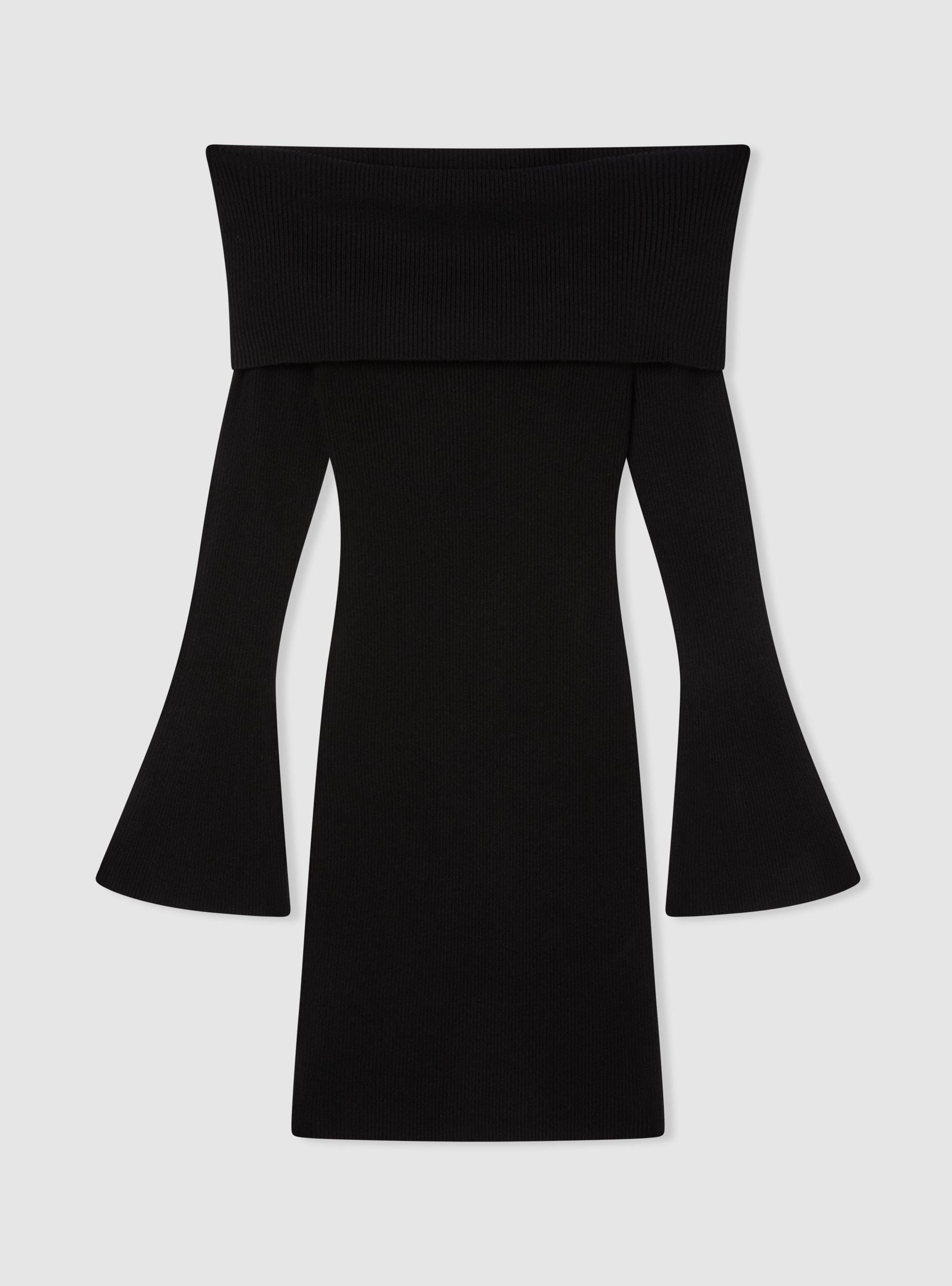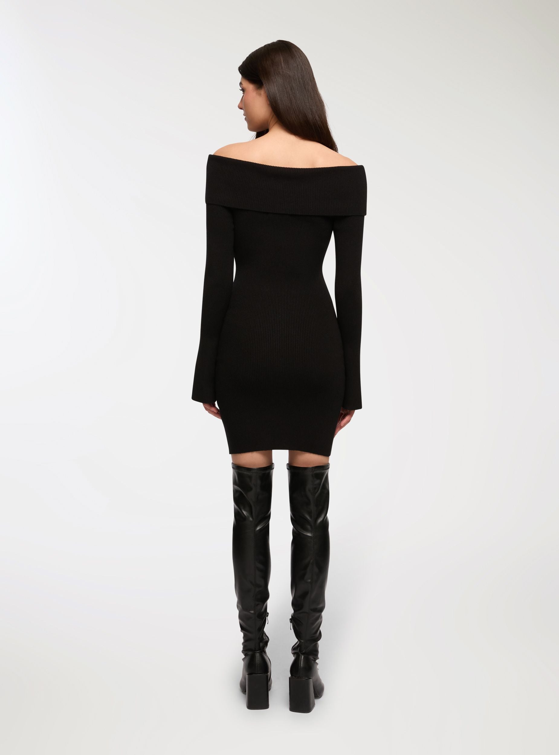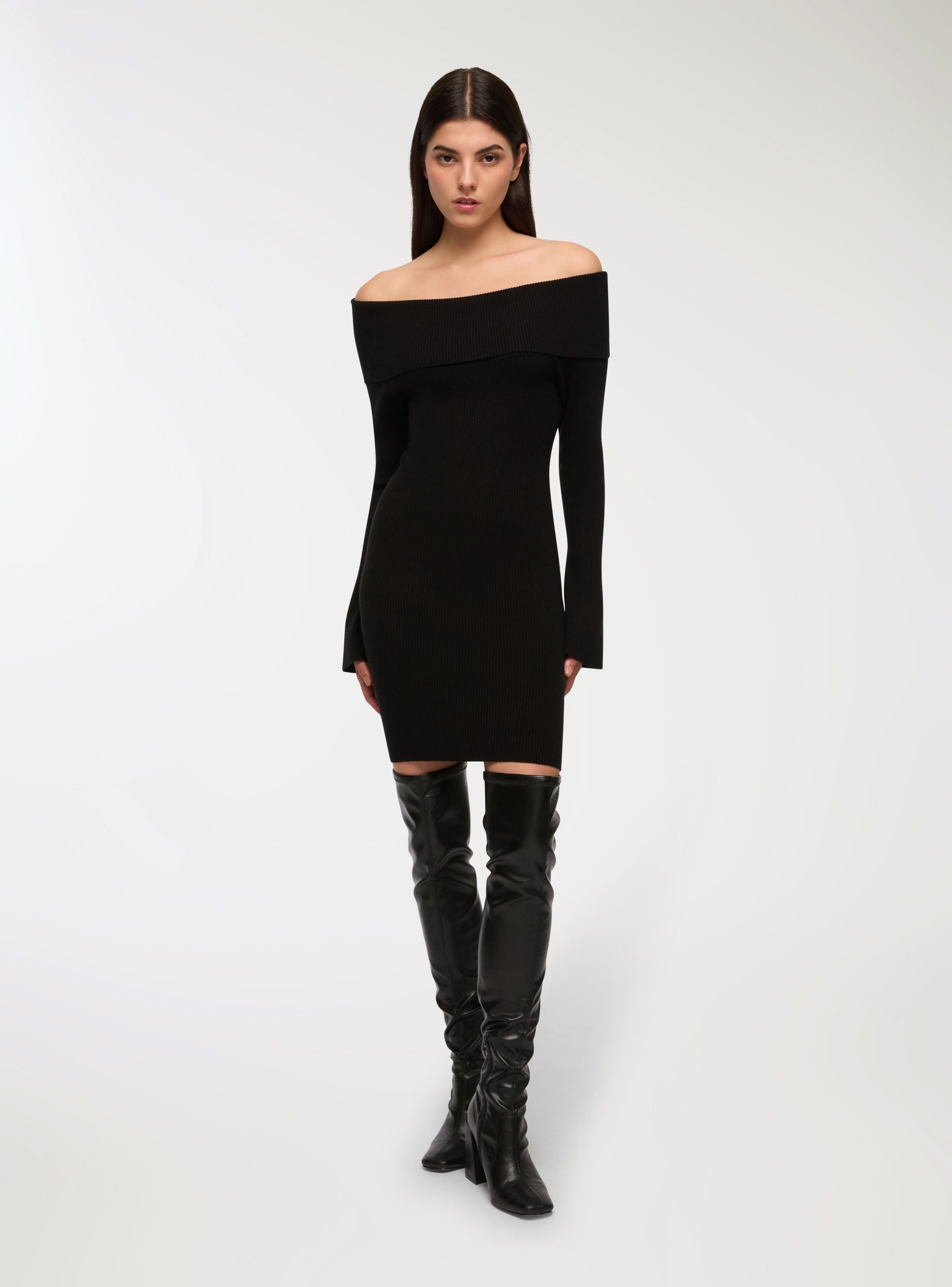 Abito in maglia da donna con design a spalle scoperte, perfetto per uno stile femminile e sofisticato. Il taglio aderente valorizza la silhouette, mentre le maniche lunghe leggermente svasate aggiungono un tocco elegante. Ideale per la stagione fredda, si presta sia a look casual con stivali che a outfit più chic per la sera. Un capo versatile, caldo e alla moda per ogni occasione.