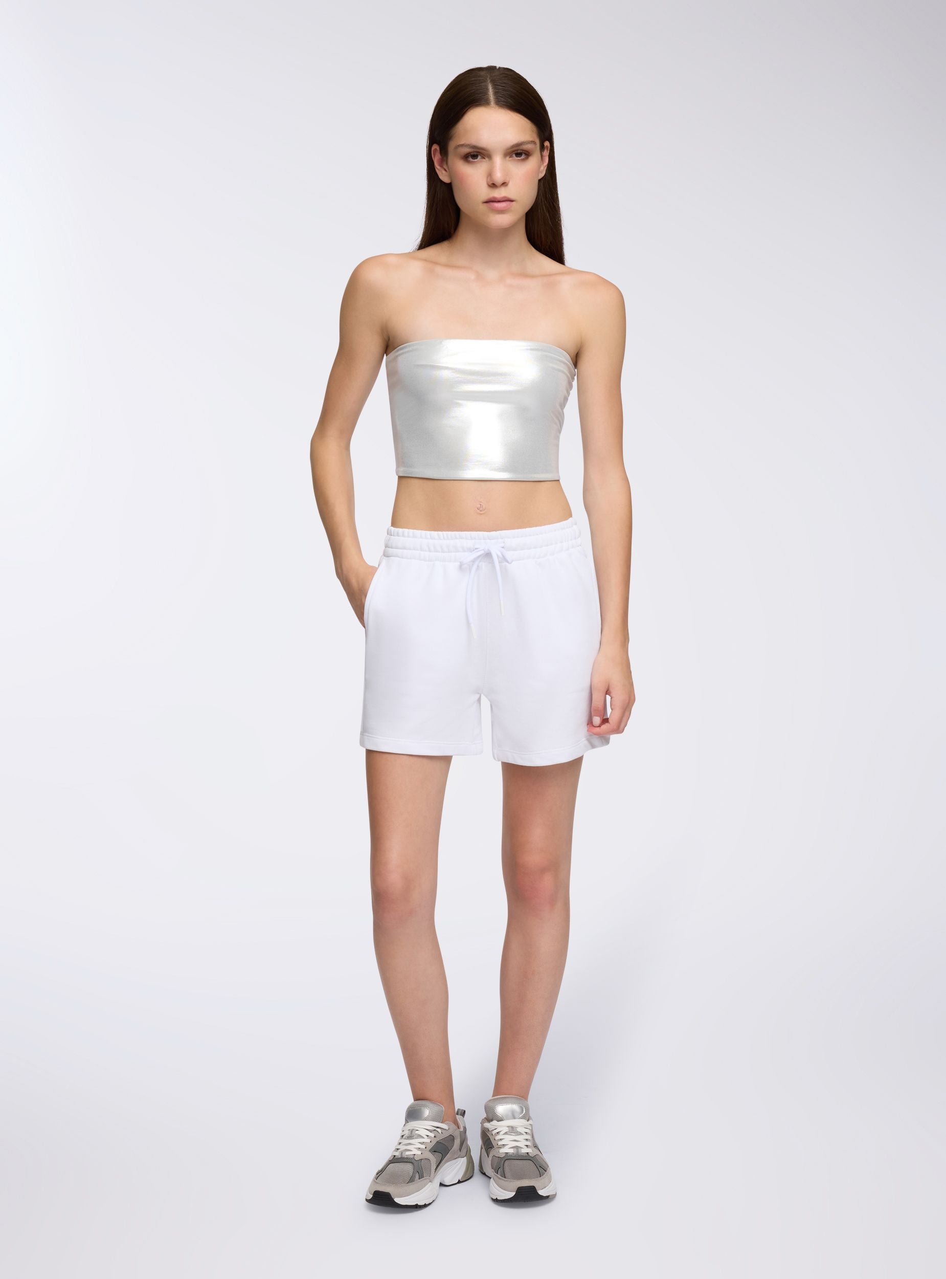 Pantaloncini leggeri della tuta da donna ideali per il tempo libero e l'attività sportiva. Presentano una comoda coulisse in vita per una vestibilità regolabile e tasche laterali per praticità. La lunghezza corta li rende perfetti per le giornate calde o per allenamenti leggeri. Si abbinano facilmente a magliette e scarpe sportive per un look casual e dinamico.Dettagli