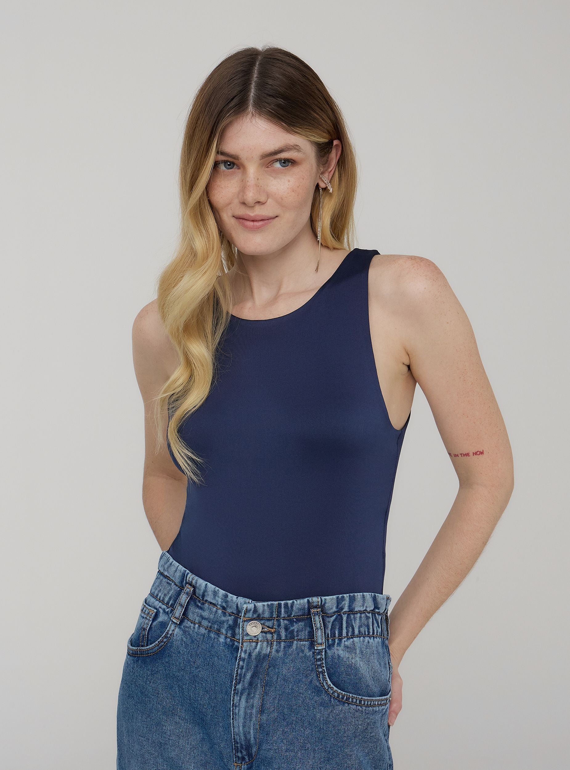 Body da donna a tinta unita, caratterizzato da un design elasticizzato che si adatta perfettamente alla figura, garantendo una vestibilità aderente e confortevole. La scollatura arrotondata e le spalline ampie conferiscono un tocco minimalista e versatile. Il capo è dotato di una pratica chiusura con bottoni a pressione nella parte inferiore, ideale per indossarlo con facilità. Un capo essenziale per creare look eleganti o casual, da abbinare a jeans o gonne per un tocco di stile moderno e femminile.