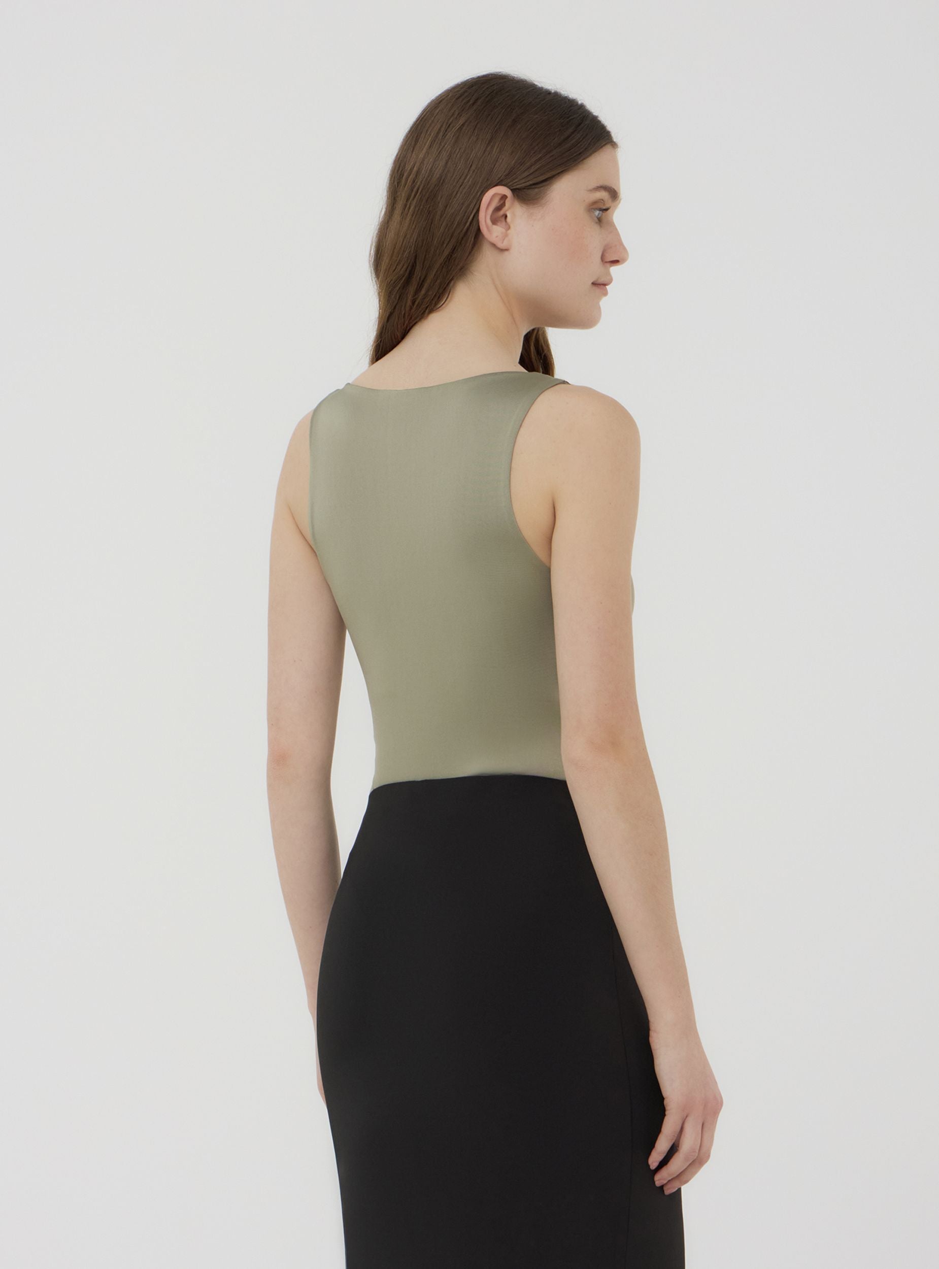 Body da donna a tinta unita, caratterizzato da un design elasticizzato che si adatta perfettamente alla figura, garantendo una vestibilità aderente e confortevole. La scollatura arrotondata e le spalline ampie conferiscono un tocco minimalista e versatile. Il capo è dotato di una pratica chiusura con bottoni a pressione nella parte inferiore, ideale per indossarlo con facilità. Un capo essenziale per creare look eleganti o casual, da abbinare a jeans o gonne per un tocco di stile moderno e femminile.Dettagli