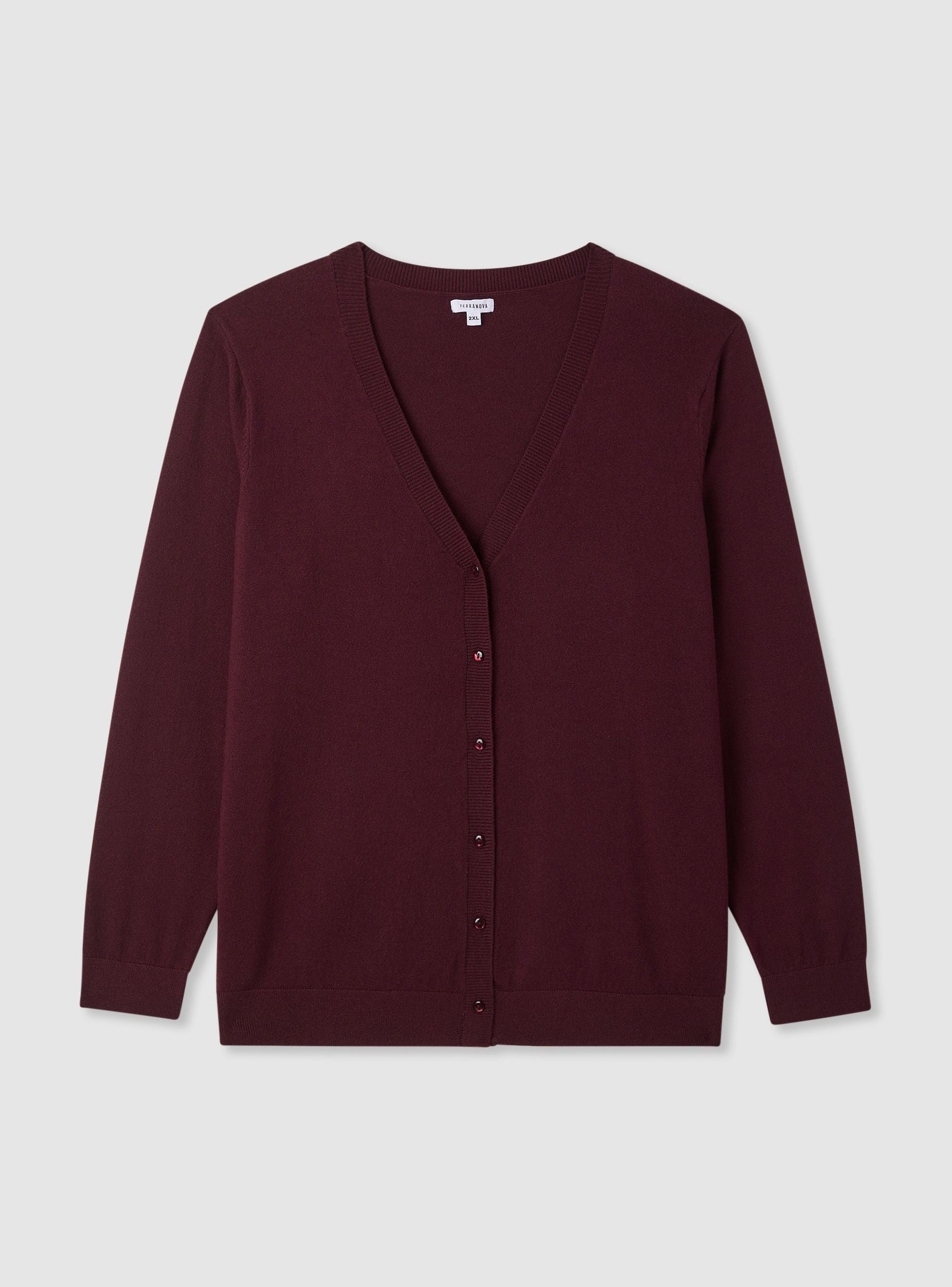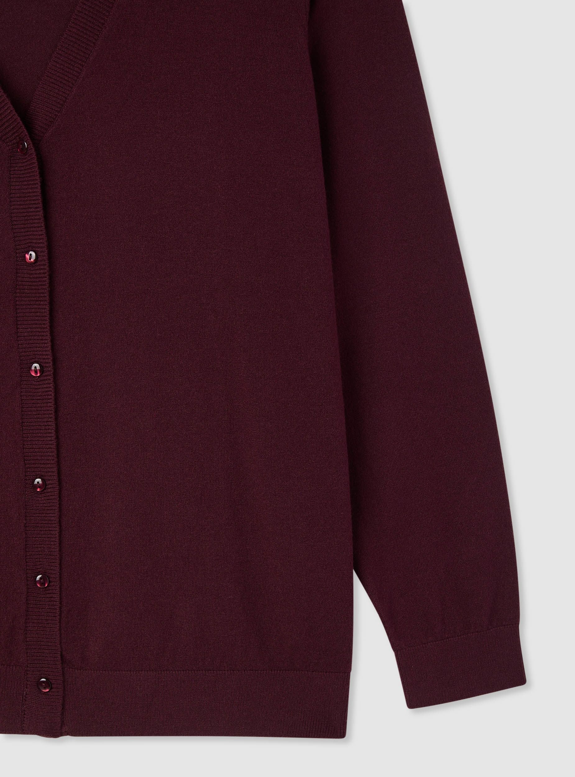 Cardigan da donna a tinta unita con elegante scollo a V e chiusura frontale con bottoni. Un modello essenziale e versatile, caratterizzato da maniche lunghe e finiture in maglia a costine su polsini e fondo. Perfetto da indossare sopra top e camicie per uno stile femminile e curato, ideale sia per la vita quotidiana che per l'ufficio. Un must-have del guardaroba invernale.