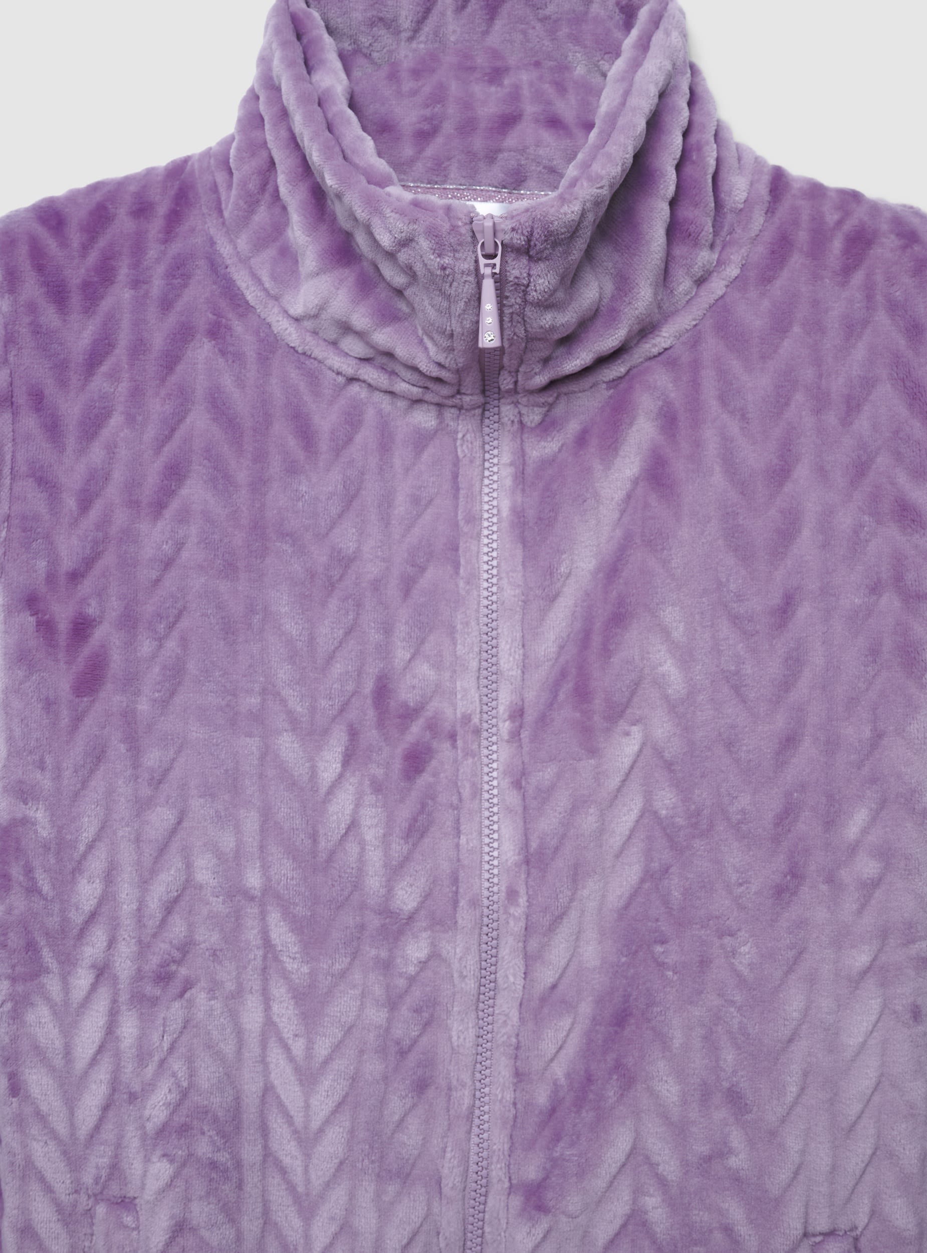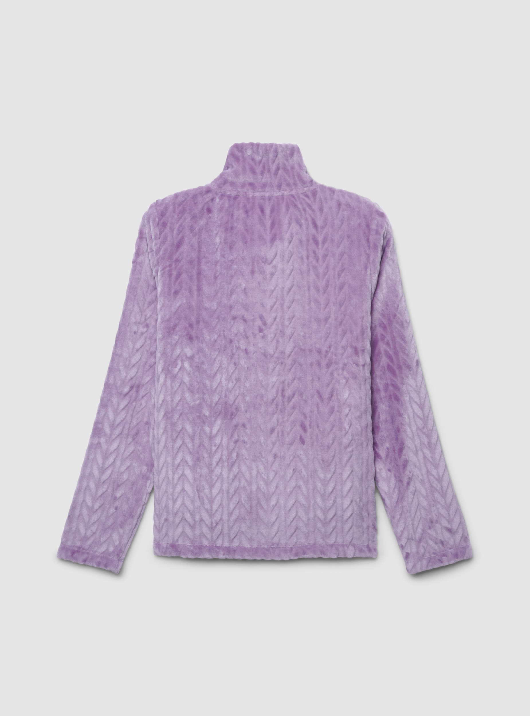 Felpa pesante da donna ideale per l’inverno, caratterizzata da una lavorazione a treccia che dona un effetto caldo e avvolgente. Il design presenta un collo alto, maniche lunghe, comode tasche laterali e una pratica chiusura con zip. Senza cappuccio e in tinta unita, è perfetta per un look casual ma curato, adatto al tempo libero o alle giornate più fredde. Un capo versatile e comodo per il guardaroba stagionale.