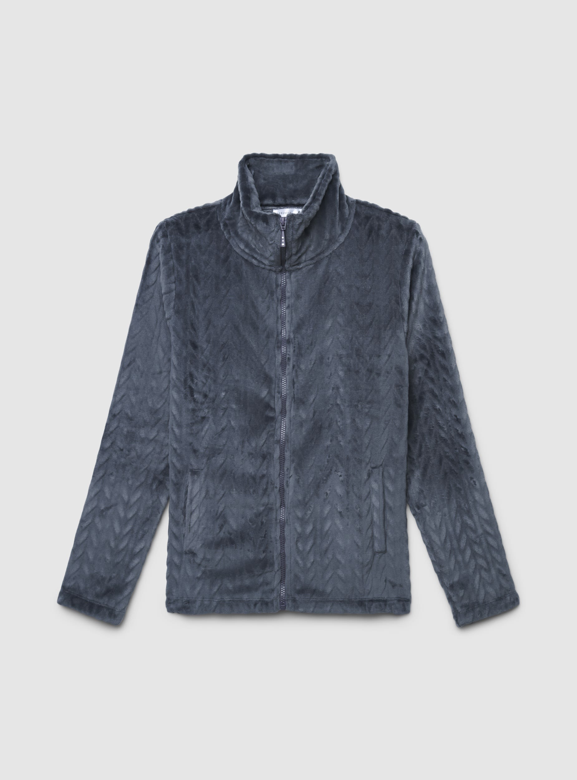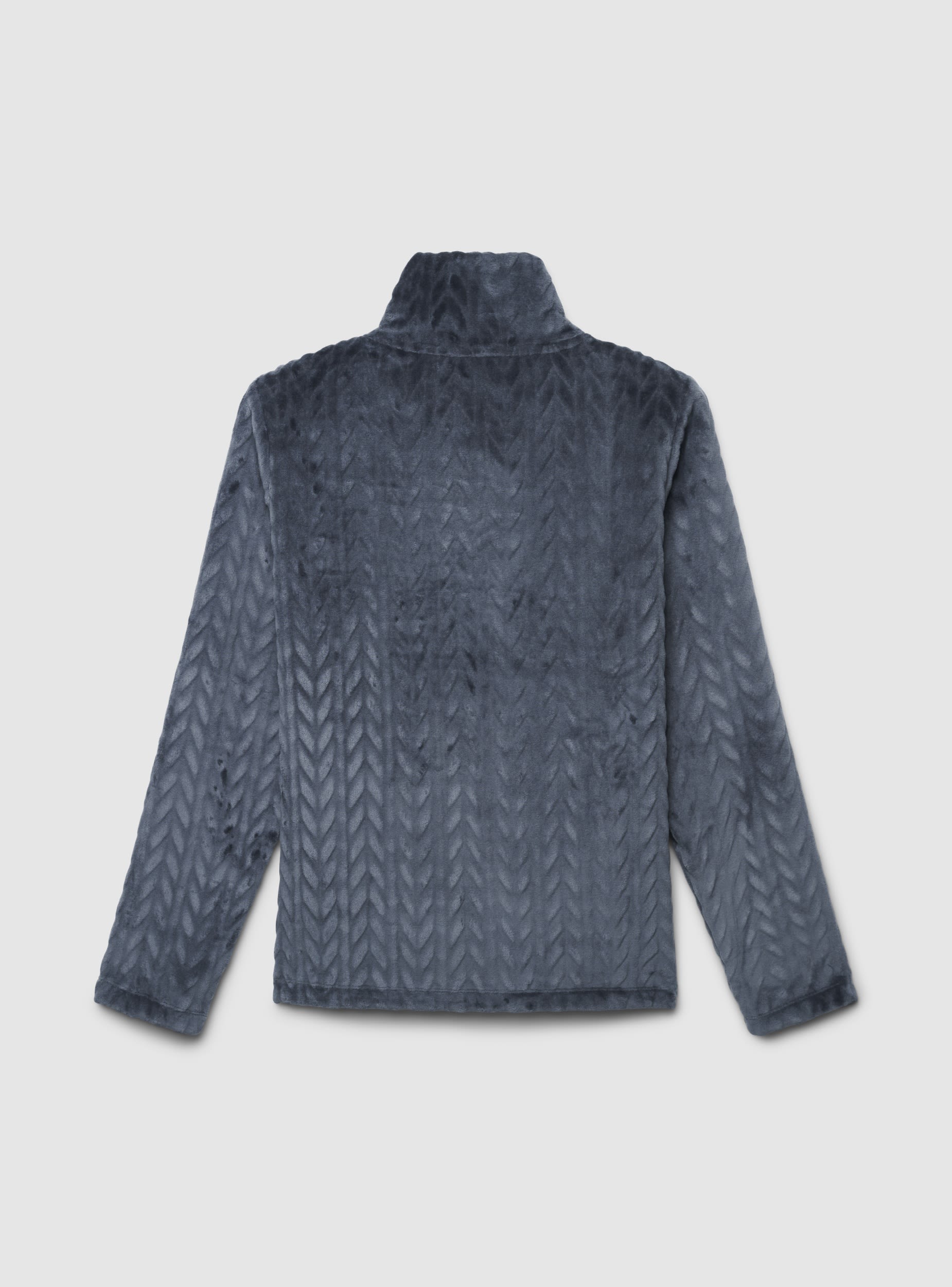Felpa pesante da donna ideale per l’inverno, caratterizzata da una lavorazione a treccia che dona un effetto caldo e avvolgente. Il design presenta un collo alto, maniche lunghe, comode tasche laterali e una pratica chiusura con zip. Senza cappuccio e in tinta unita, è perfetta per un look casual ma curato, adatto al tempo libero o alle giornate più fredde. Un capo versatile e comodo per il guardaroba stagionale.