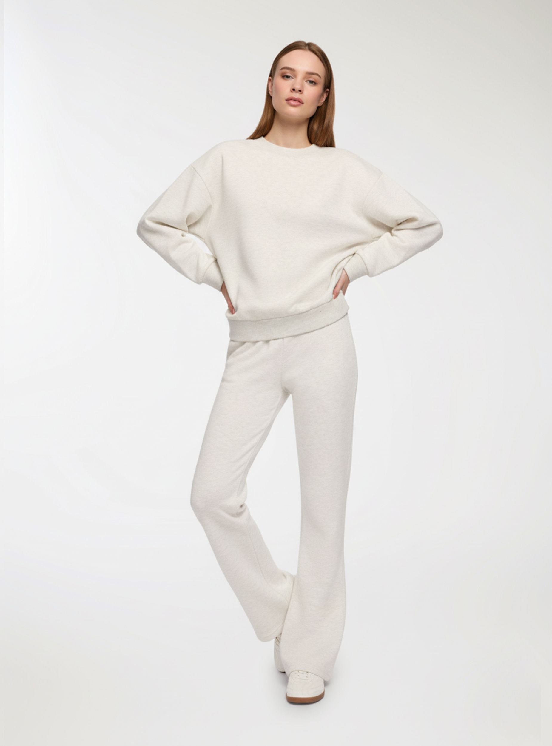 Felpa pesante da donna perfetta per le giornate più fredde. Modello tinta unita senza cappuccio e senza zip, con maniche lunghe e finiture a costine su collo, polsi e fondo. Un capo basic e versatile, ideale da indossare nel tempo libero o per un look casual e confortevole.