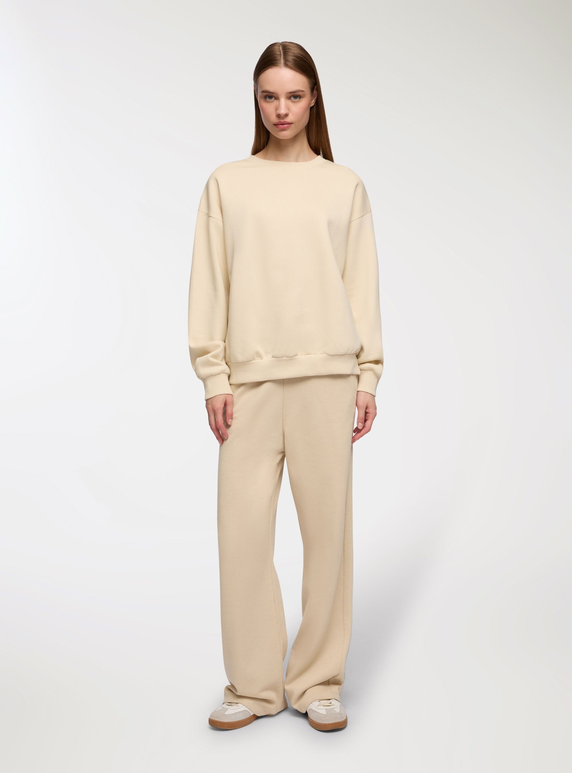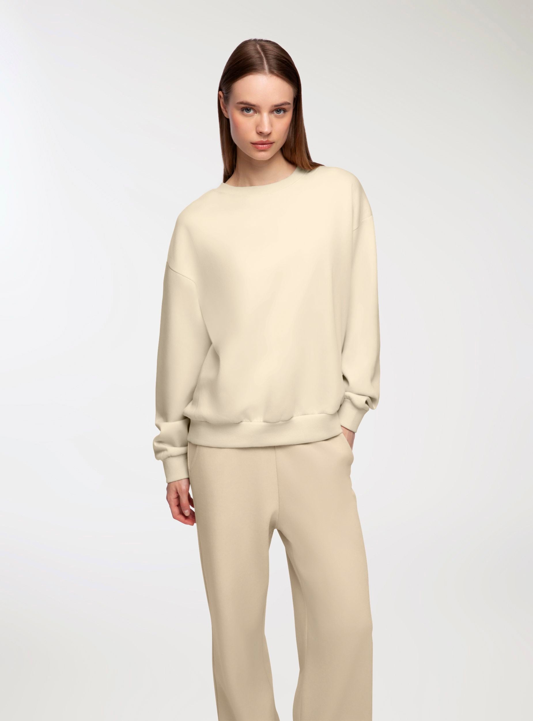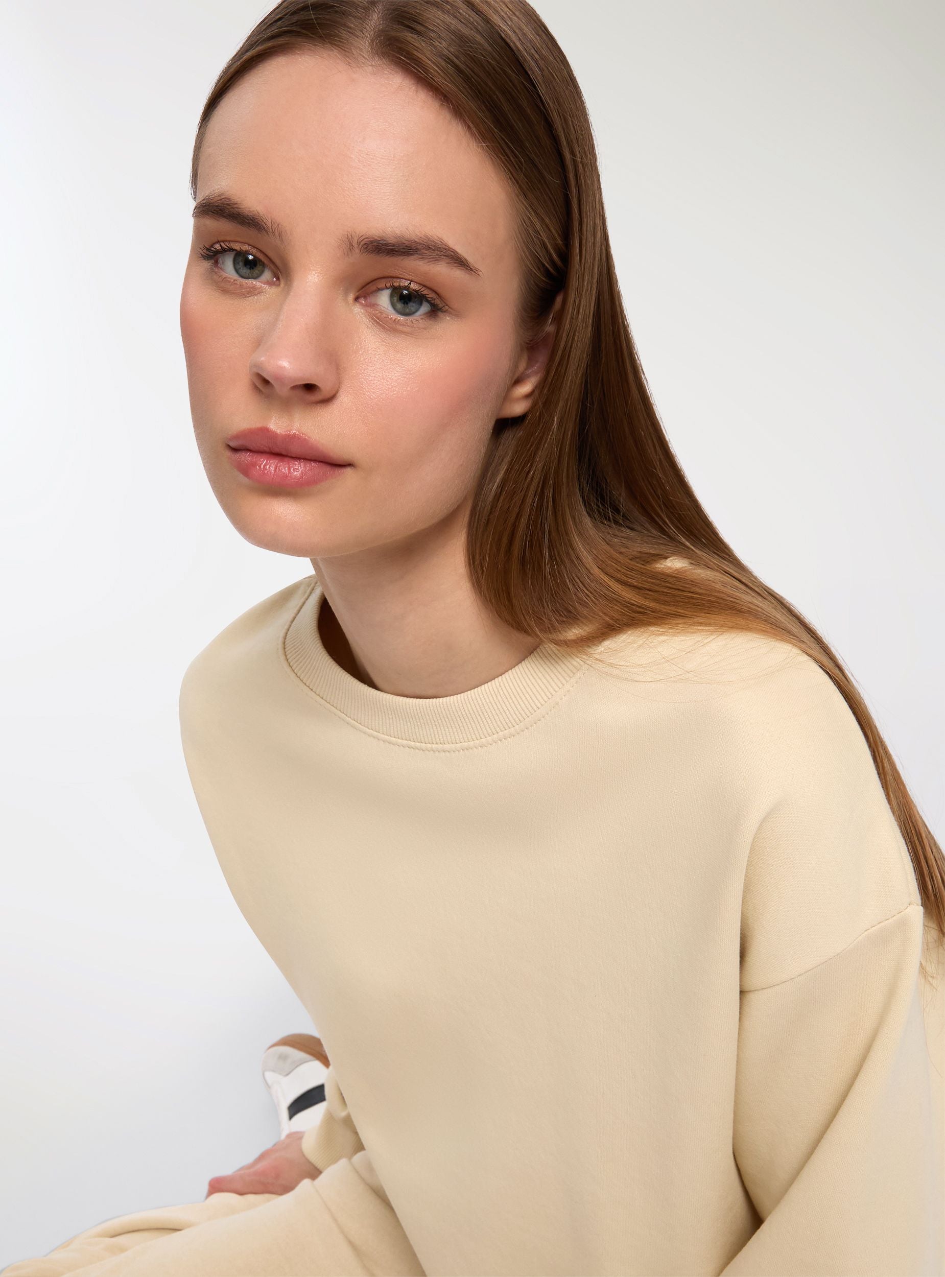 Felpa pesante da donna perfetta per le giornate più fredde. Modello tinta unita senza cappuccio e senza zip, con maniche lunghe e finiture a costine su collo, polsi e fondo. Un capo basic e versatile, ideale da indossare nel tempo libero o per un look casual e confortevole.