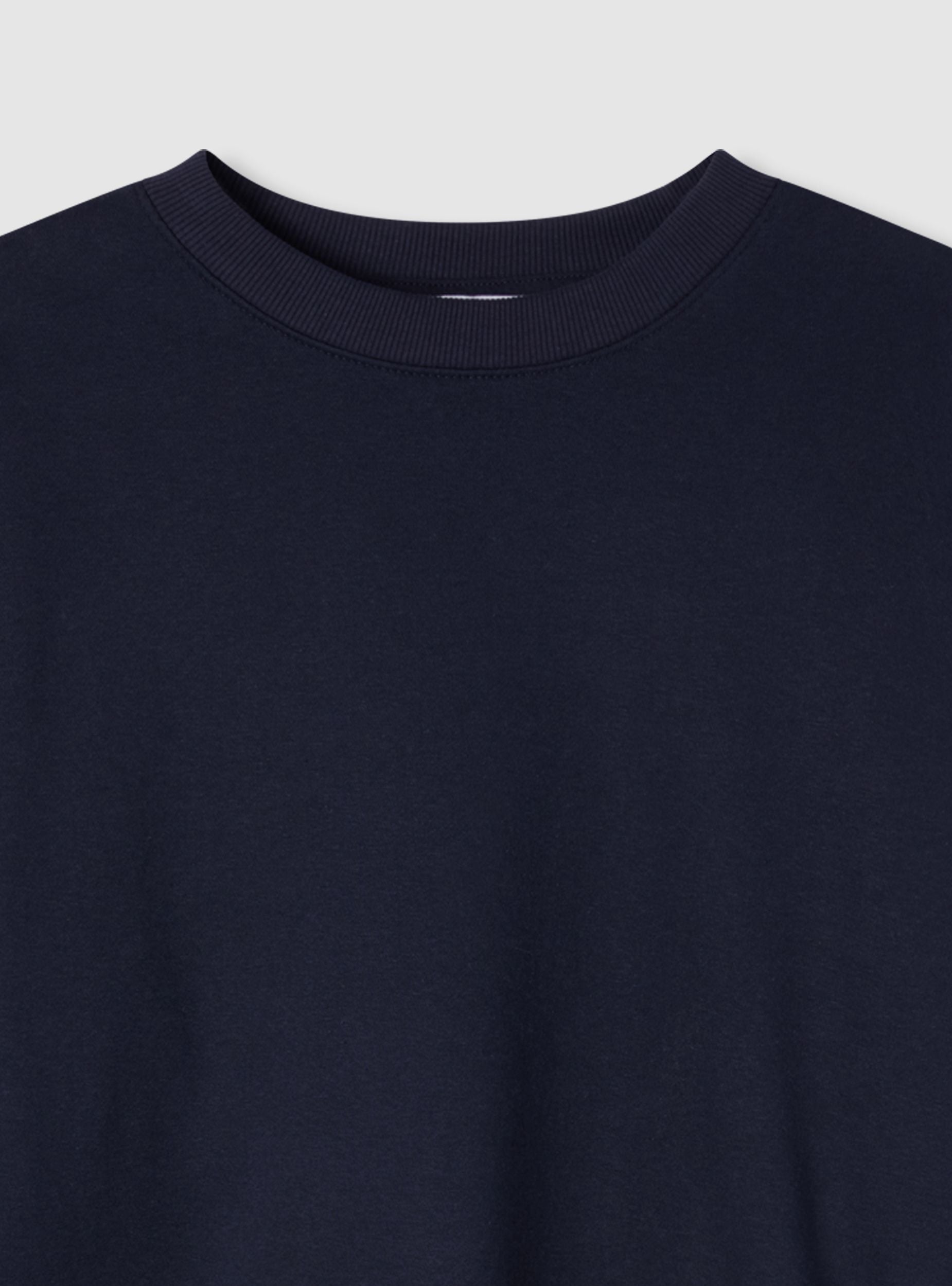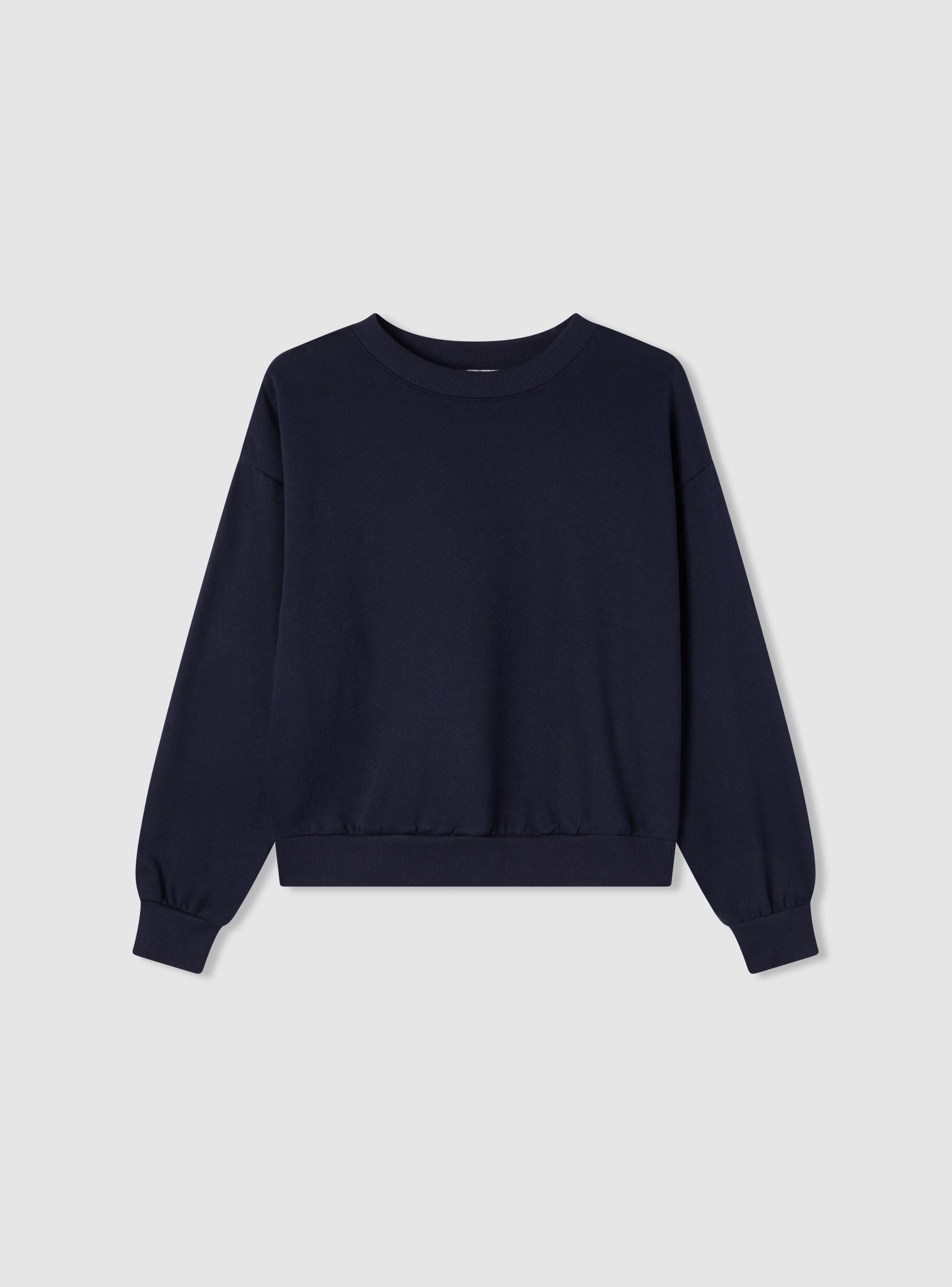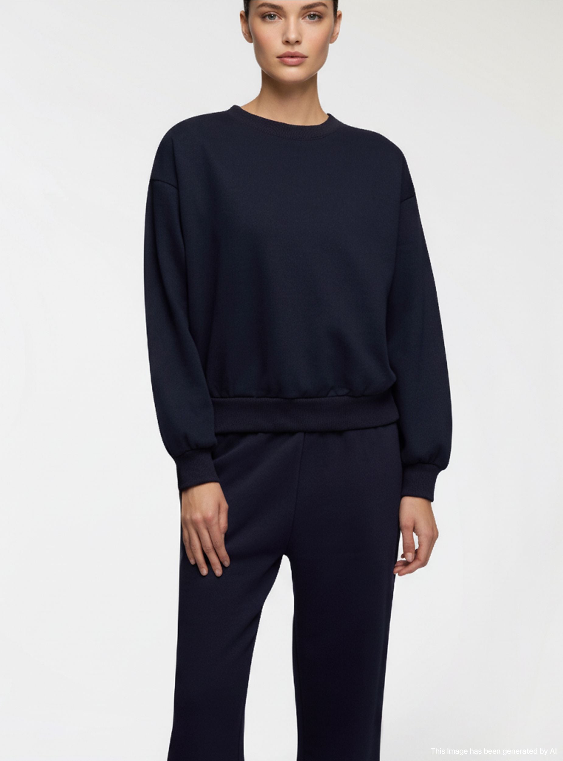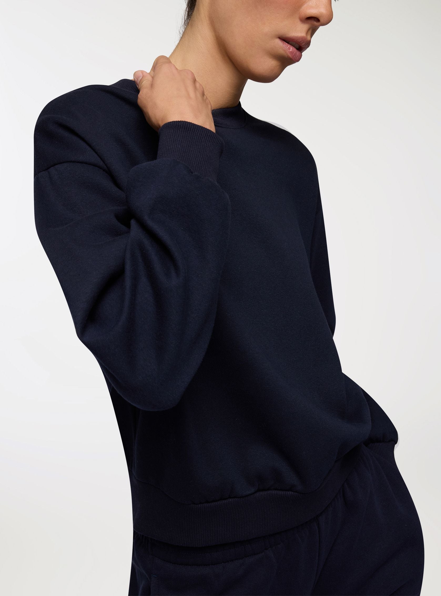 Felpa pesante da donna perfetta per le giornate più fredde. Modello tinta unita senza cappuccio e senza zip, con maniche lunghe e finiture a costine su collo, polsi e fondo. Un capo basic e versatile, ideale da indossare nel tempo libero o per un look casual e confortevole.