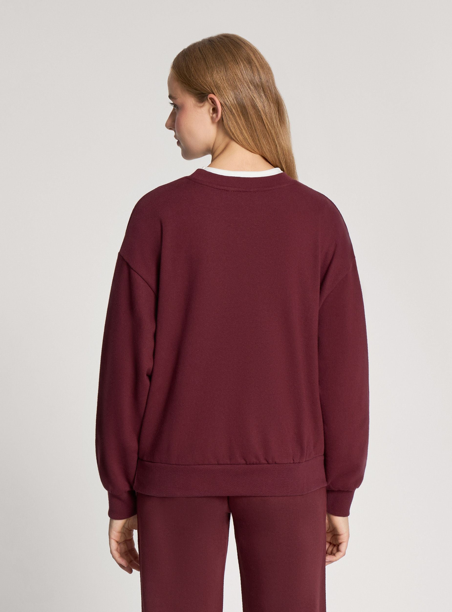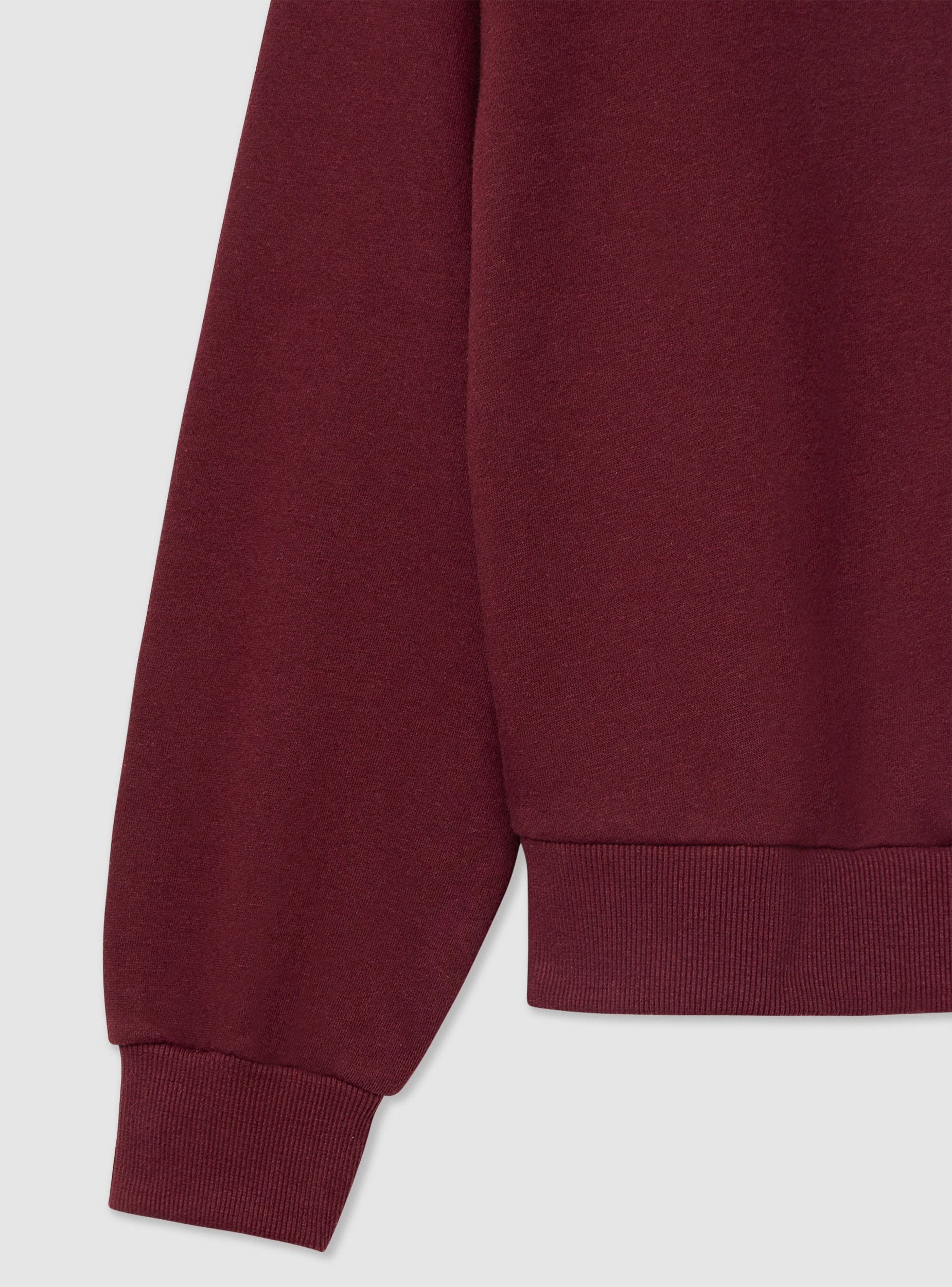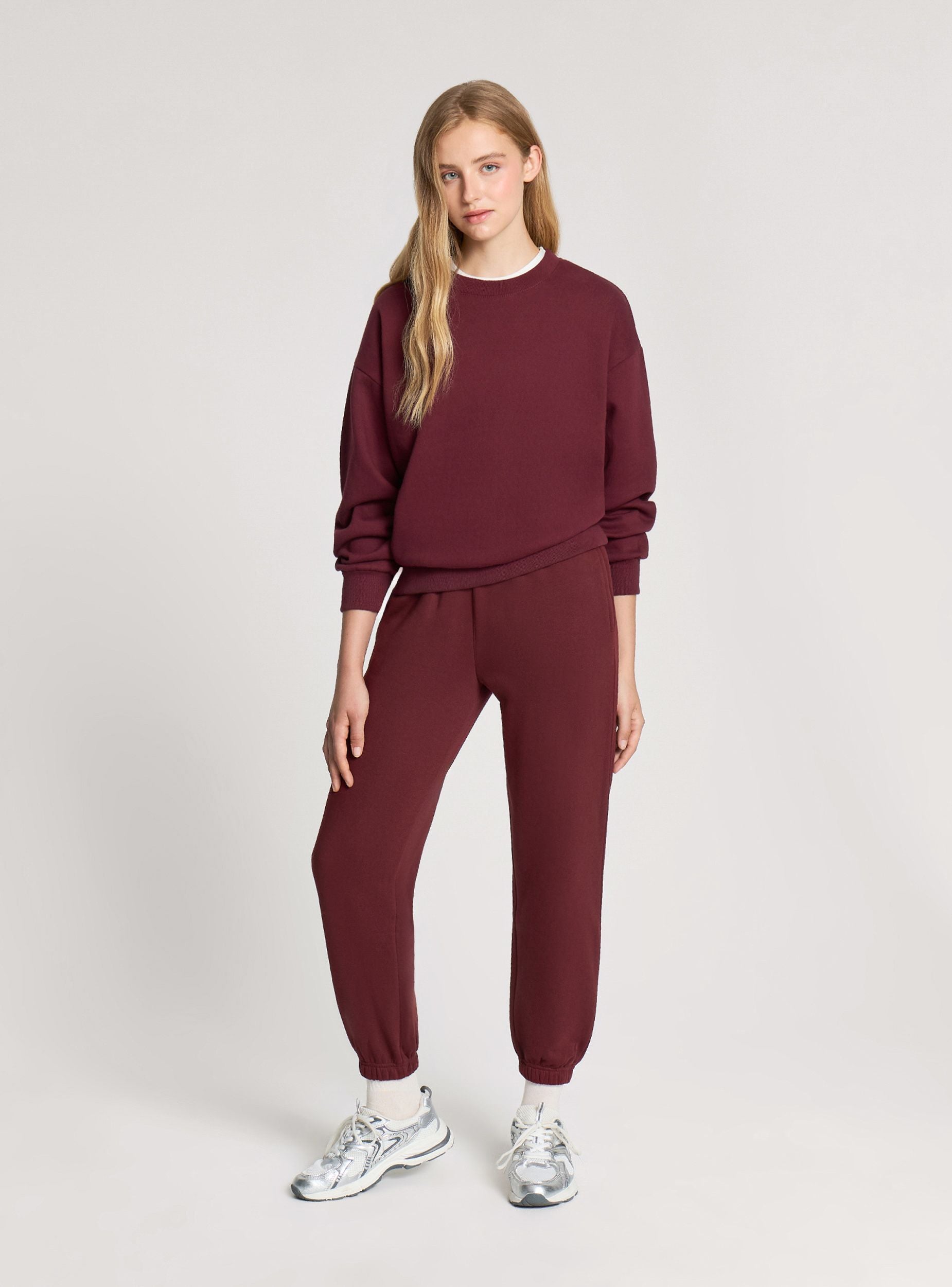 Felpa pesante da donna perfetta per le giornate più fredde. Modello tinta unita senza cappuccio e senza zip, con maniche lunghe e finiture a costine su collo, polsi e fondo. Un capo basic e versatile, ideale da indossare nel tempo libero o per un look casual e confortevole.
