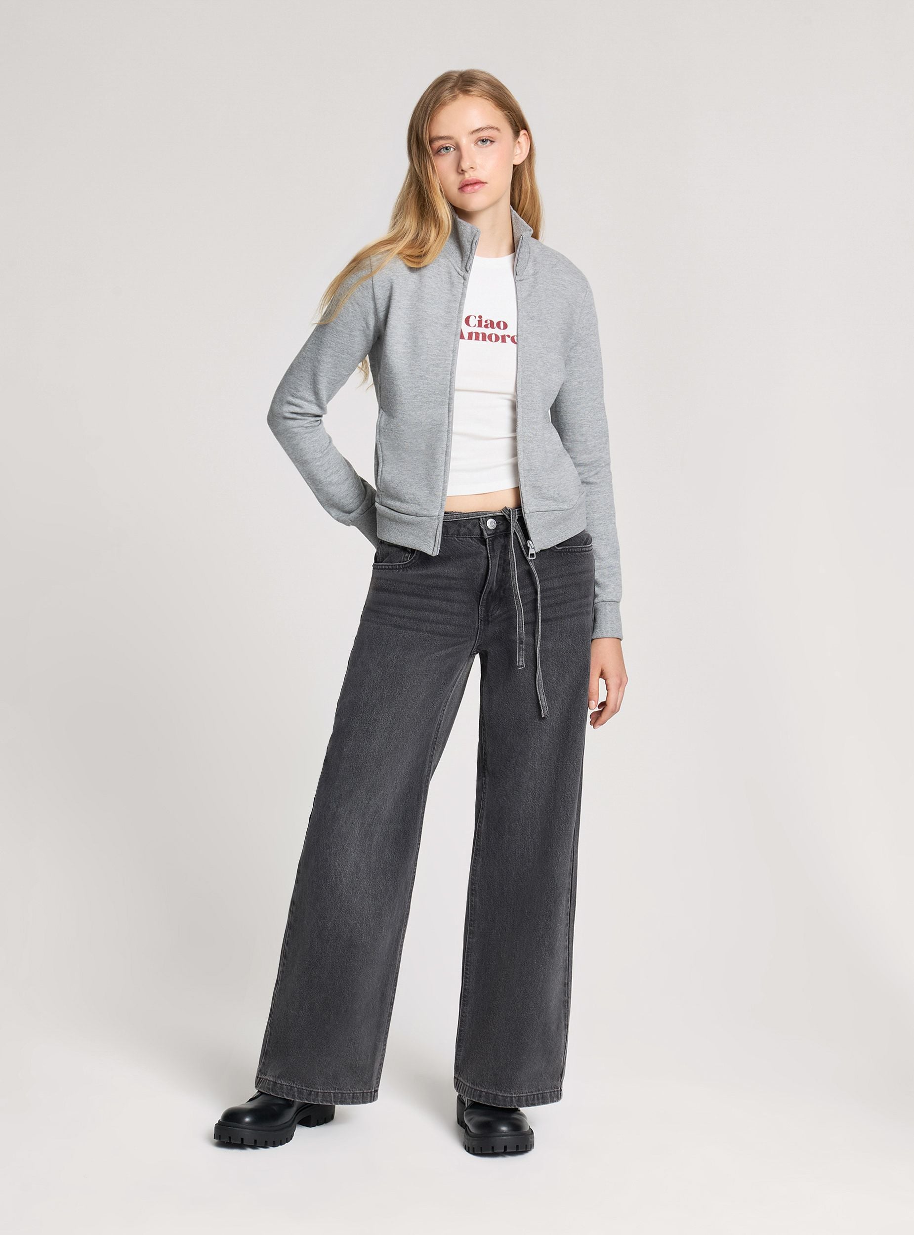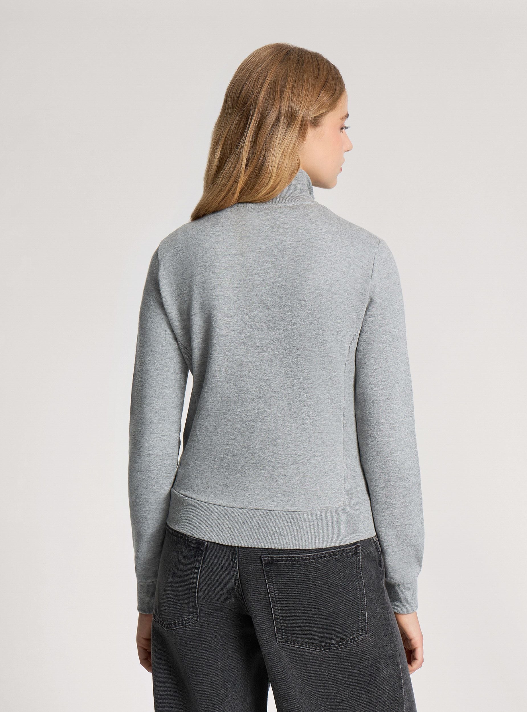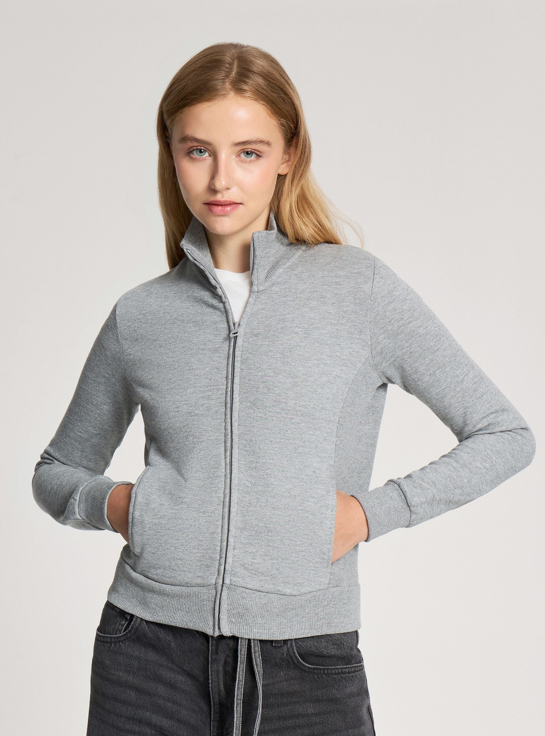 Felpa da donna con zip frontale e collo alto, pensata per offrire comfort e versatilità nelle giornate più fredde. Realizzata in tessuto pesante è perfetta per un look sportivo ma curato. Il design senza cappuccio ne valorizza la linea pulita a tinta unita, mentre le tasche laterali aggiungono praticità. Ideale per il tempo libero, si abbina facilmente a jeans o joggers per uno stile casual e contemporaneo.