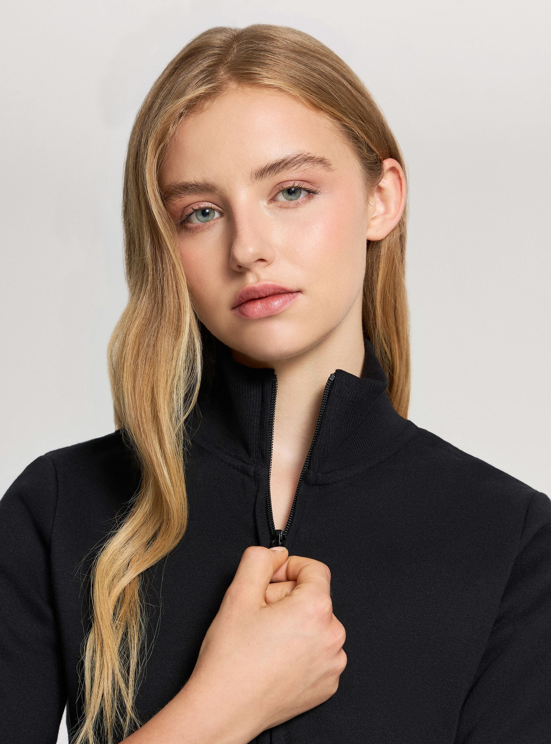 Felpa collo alto con zip girocollo