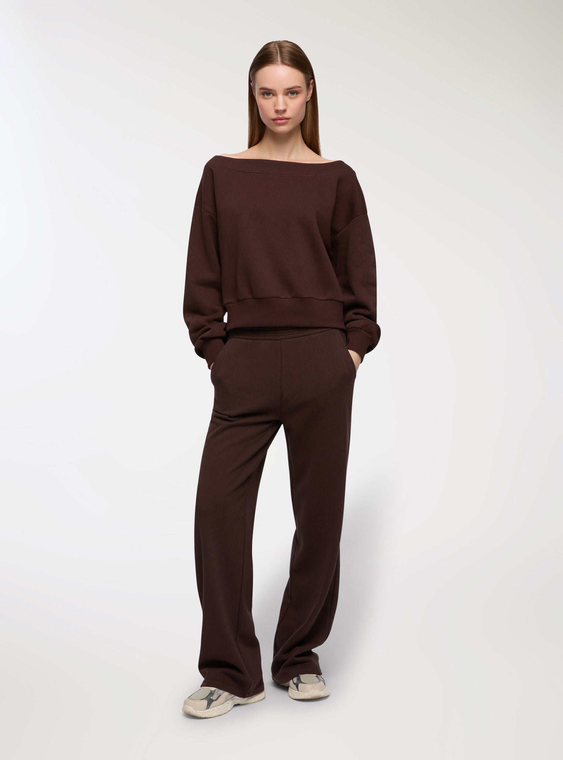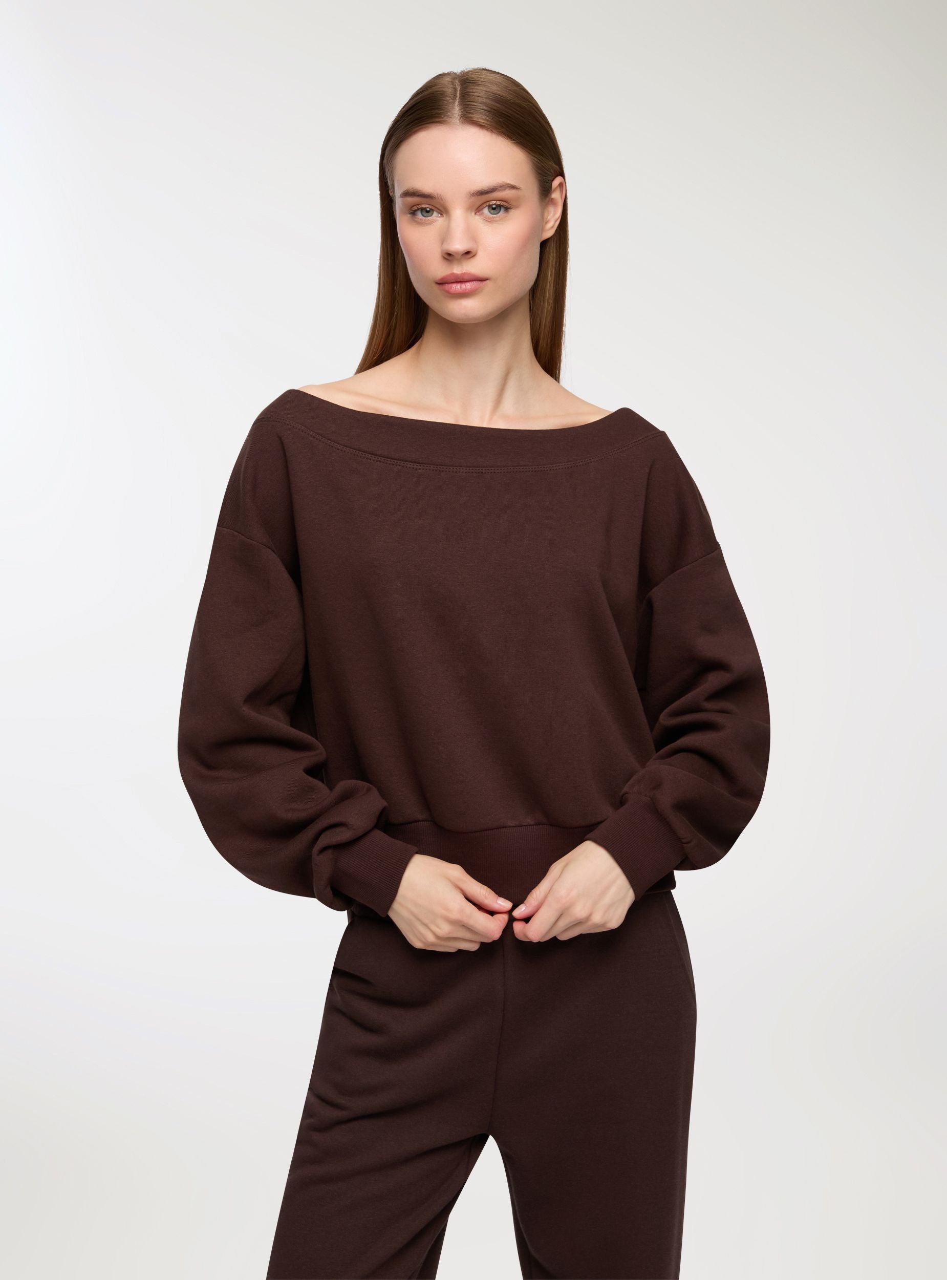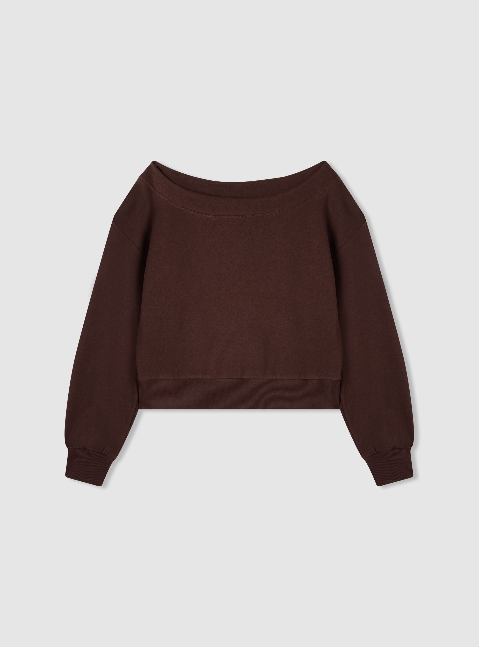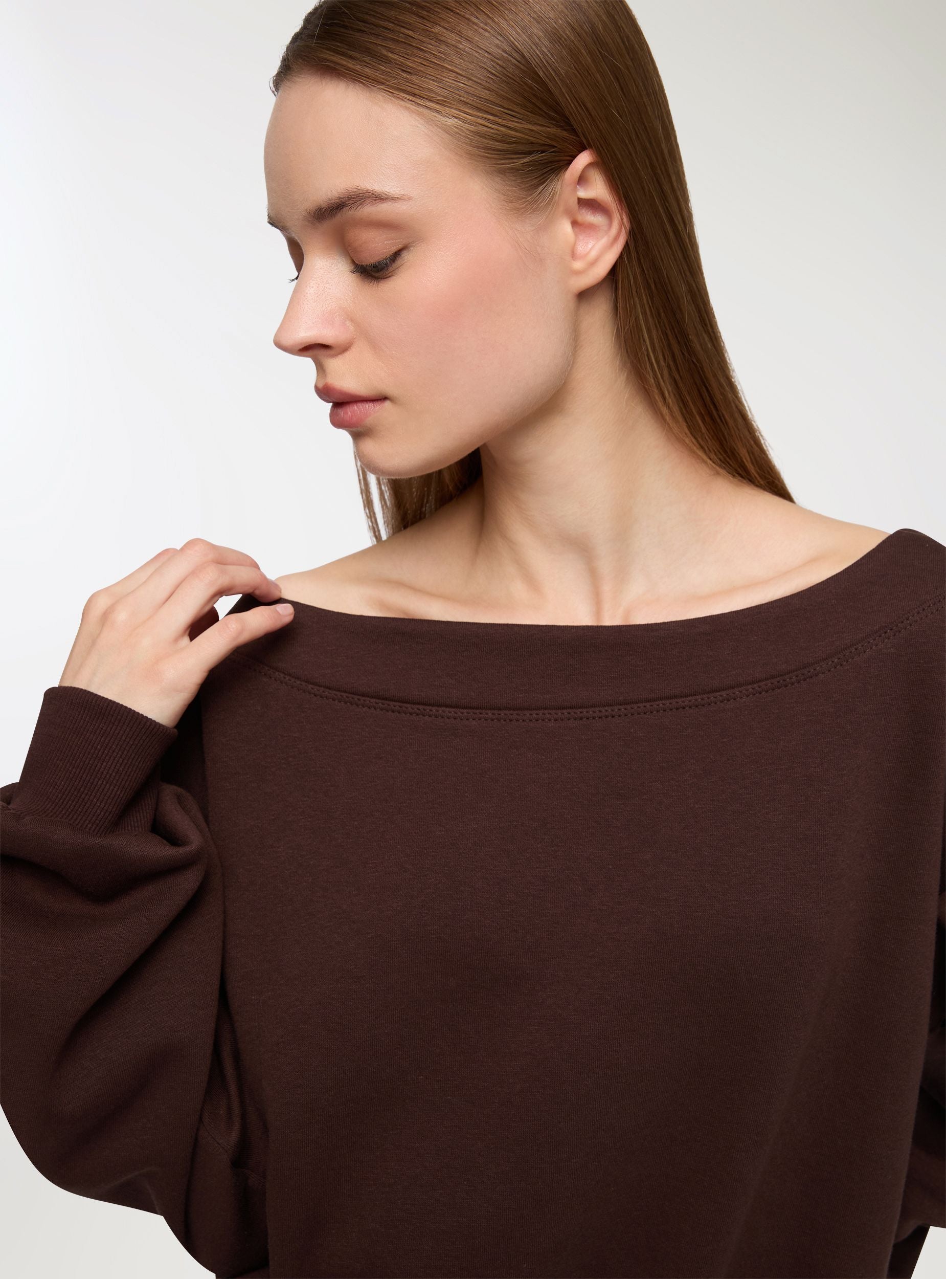 Felpa da donna in tinta unita con design femminile e raffinato. Le spalle scoperte donano un tocco sensuale e moderno. Realizzata in tessuto pesante è perfetta per la stagione fredda. Senza cappuccio e senza zip, questa felpa è ideale per creare outfit minimal ma di grande impatto. Un capo versatile che unisce comfort e stile contemporaneo.