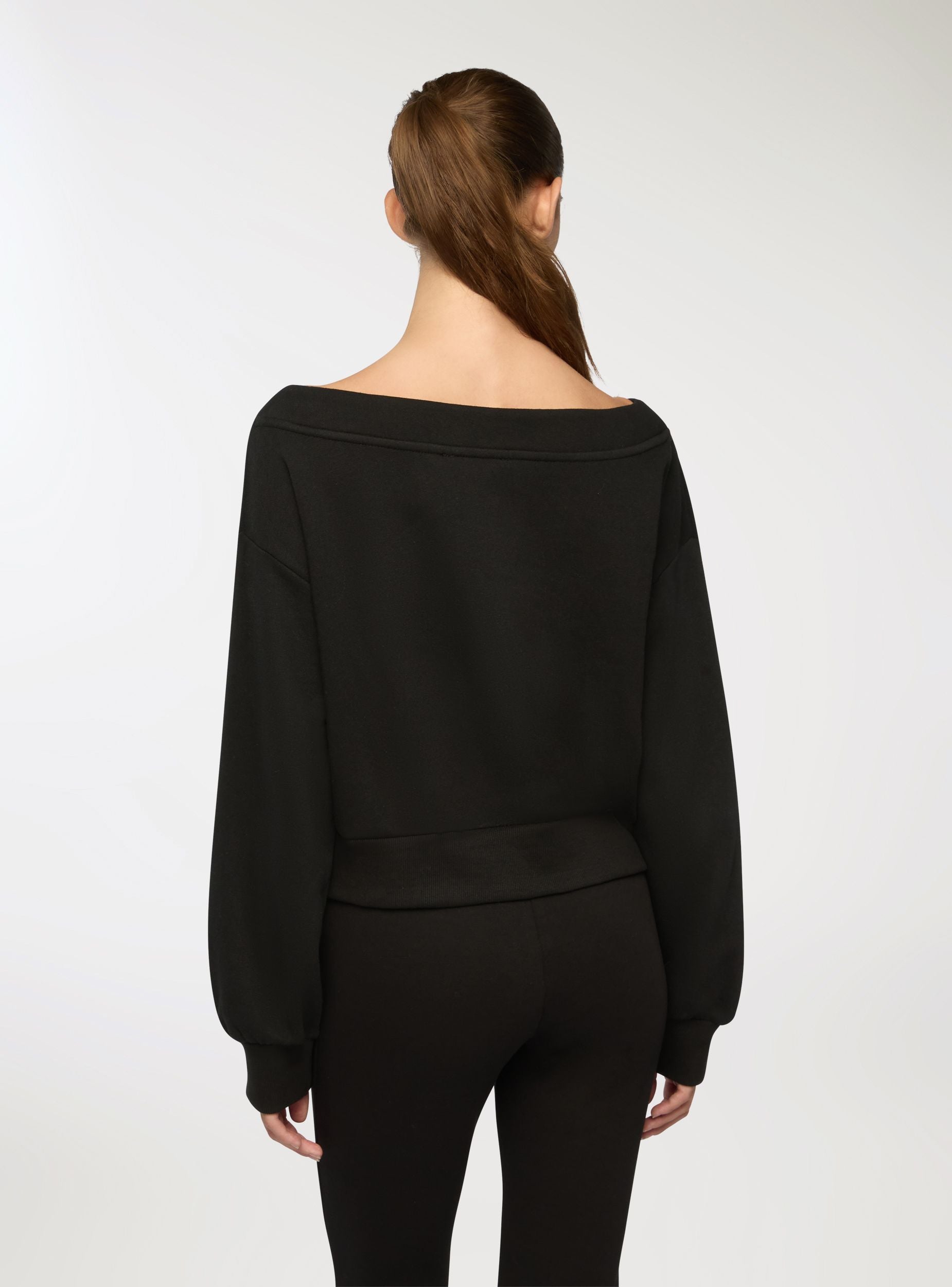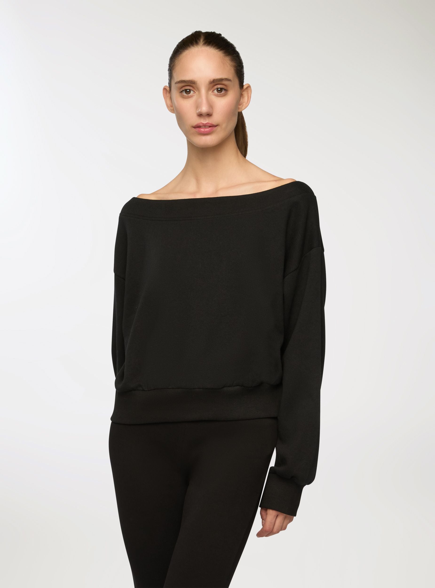Felpa da donna in tinta unita con design femminile e raffinato. Le spalle scoperte donano un tocco sensuale e moderno. Realizzata in tessuto pesante è perfetta per la stagione fredda. Senza cappuccio e senza zip, questa felpa è ideale per creare outfit minimal ma di grande impatto. Un capo versatile che unisce comfort e stile contemporaneo.