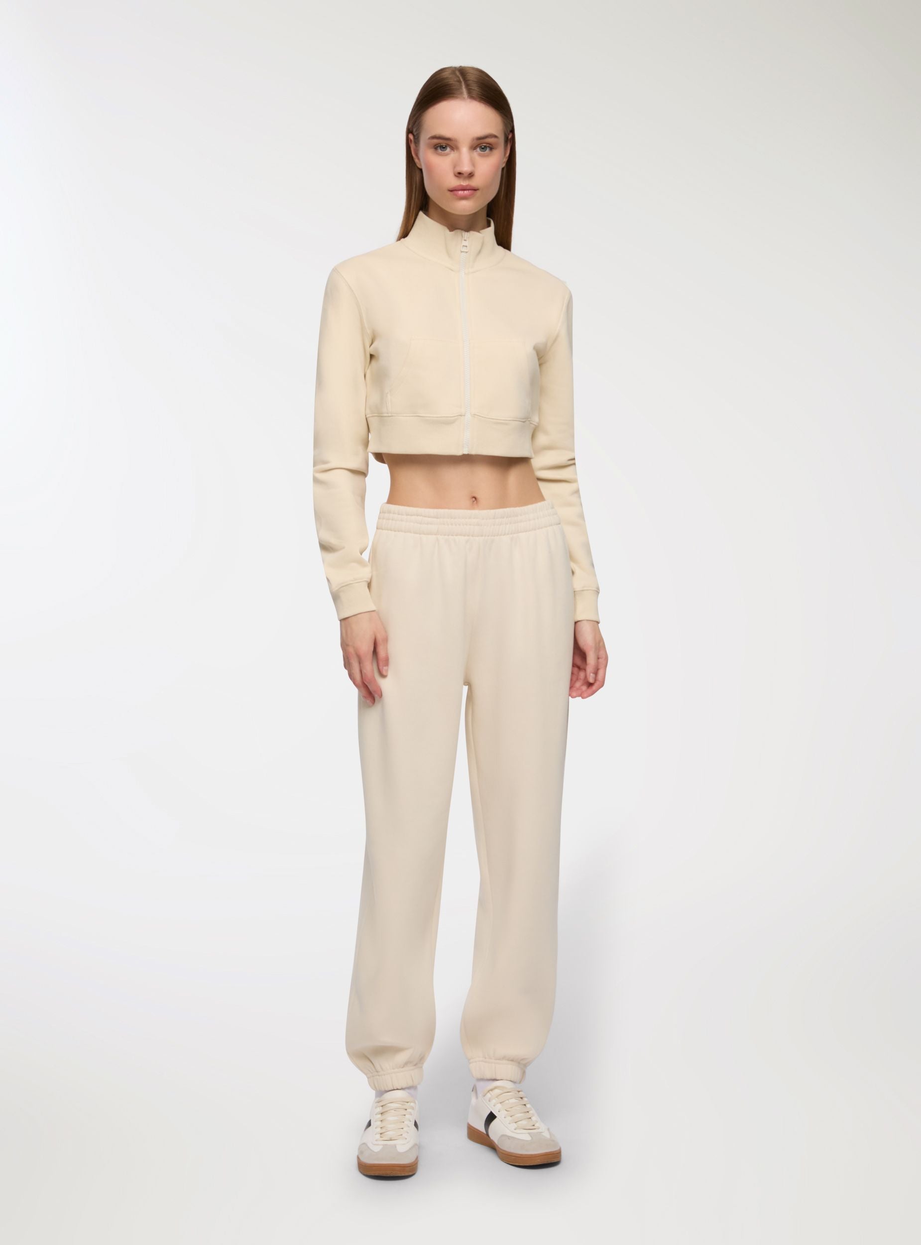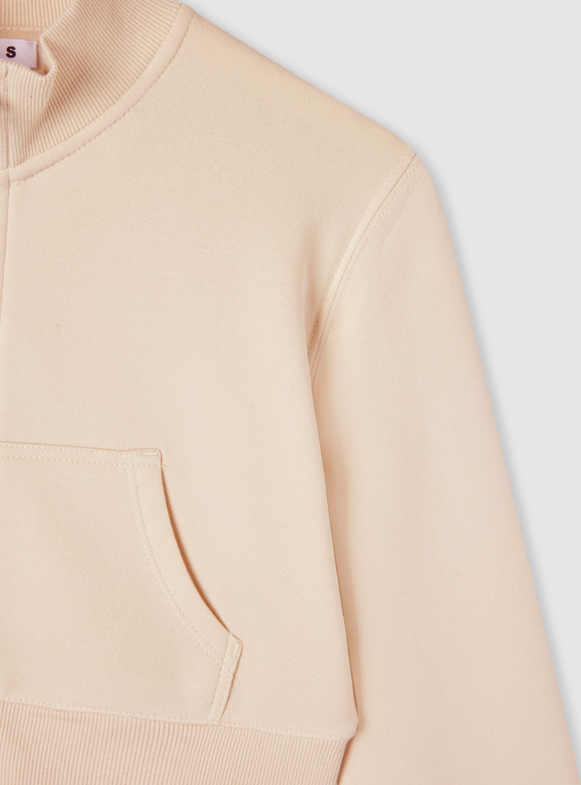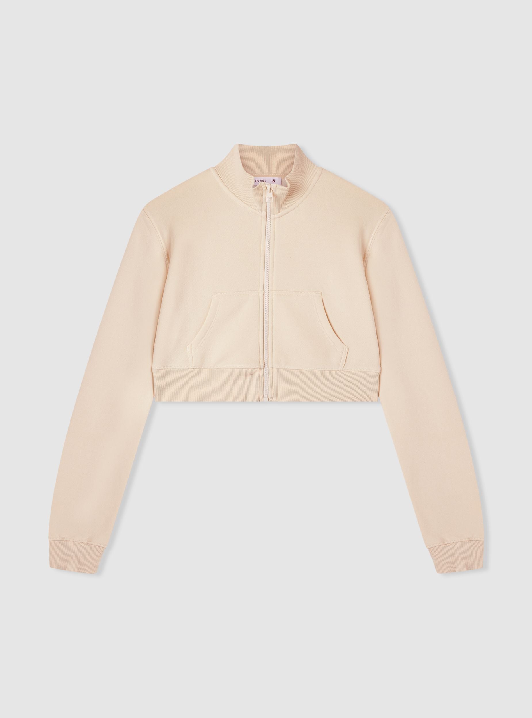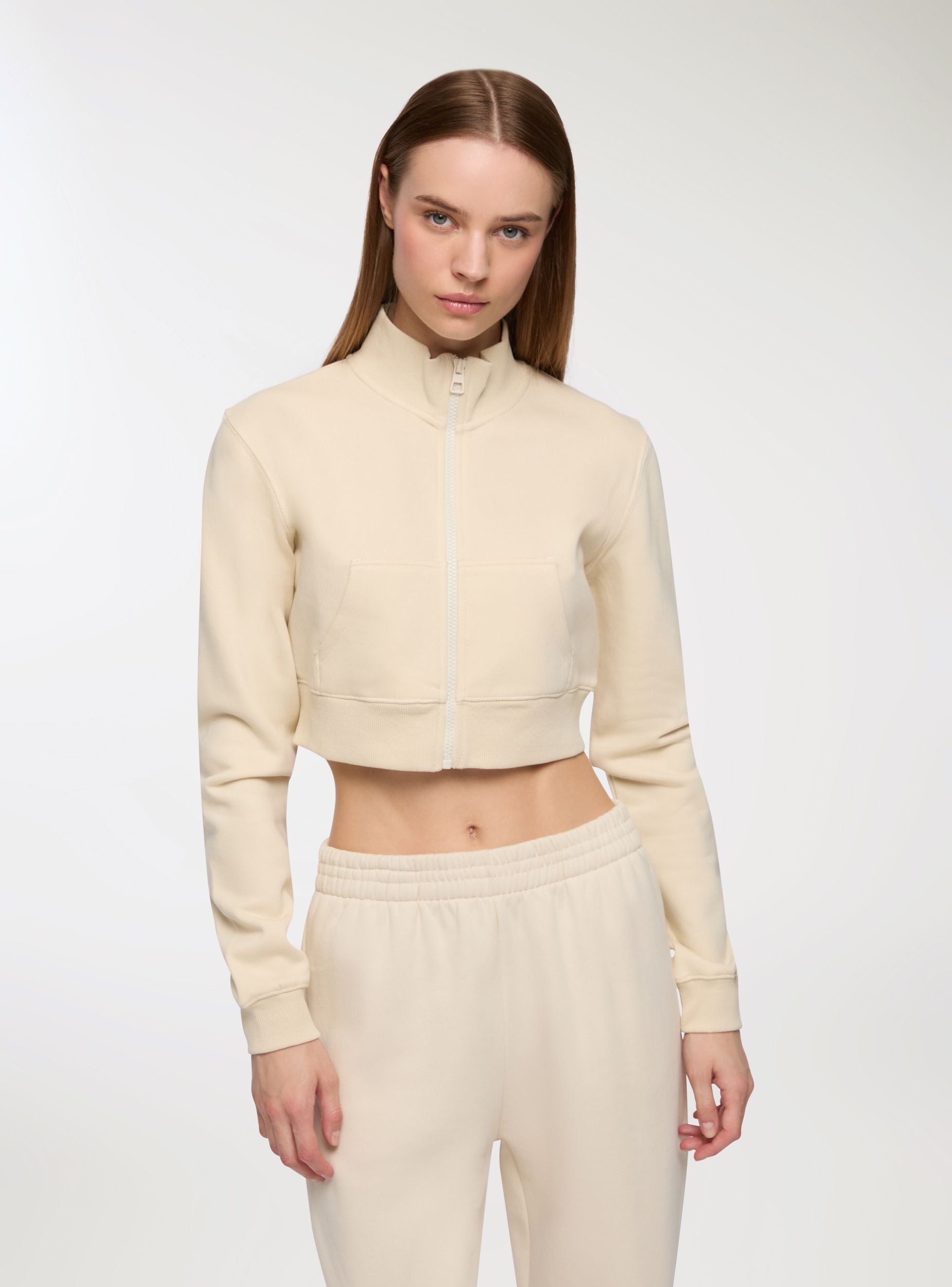 Felpa pesante da donna con design crop e zip frontale. Dotata di tasche a marsupio per praticità e collo alto per un tocco moderno. Perfetta per un look casual e versatile, ideale da abbinare a jeans o pantaloni sportivi. Vestibilità comoda e stile contemporaneo, adatta per il tempo libero o per un outfit informale.
