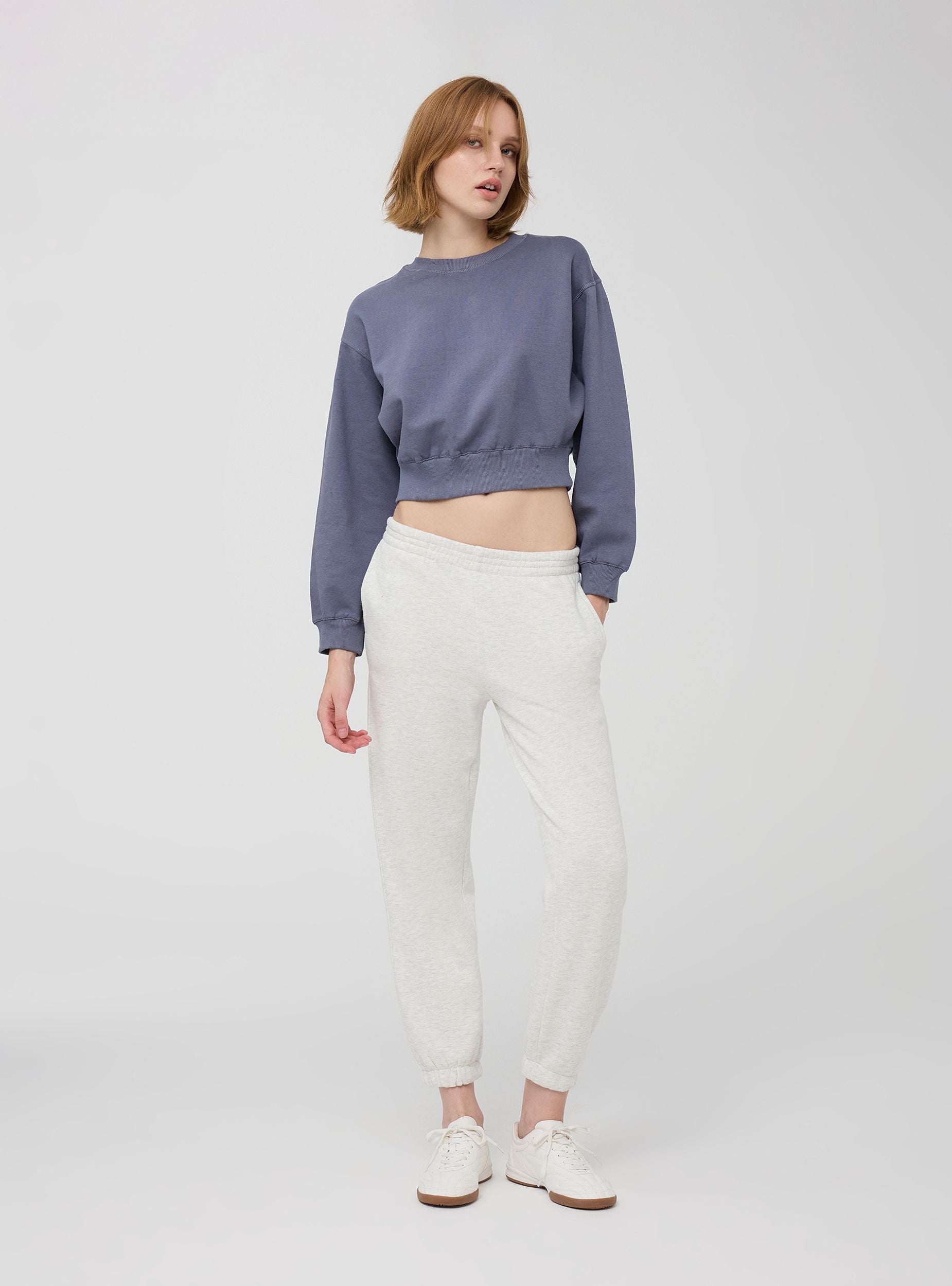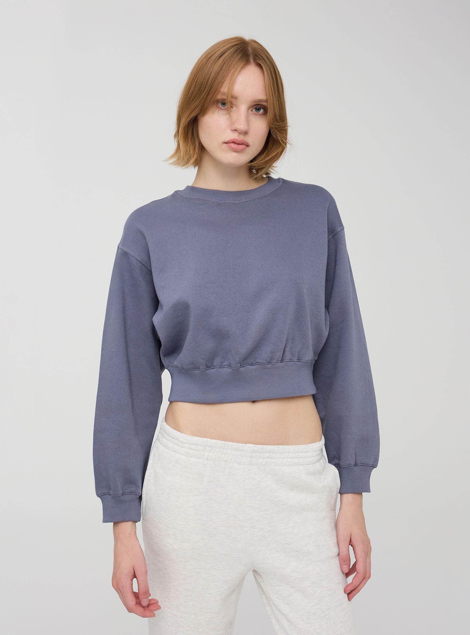 Felpa da donna, modello chiuso senza cappuccio, in tessuto pesante a tinta unita. Perfetta per look casual e comodi. Vestibilità crop.