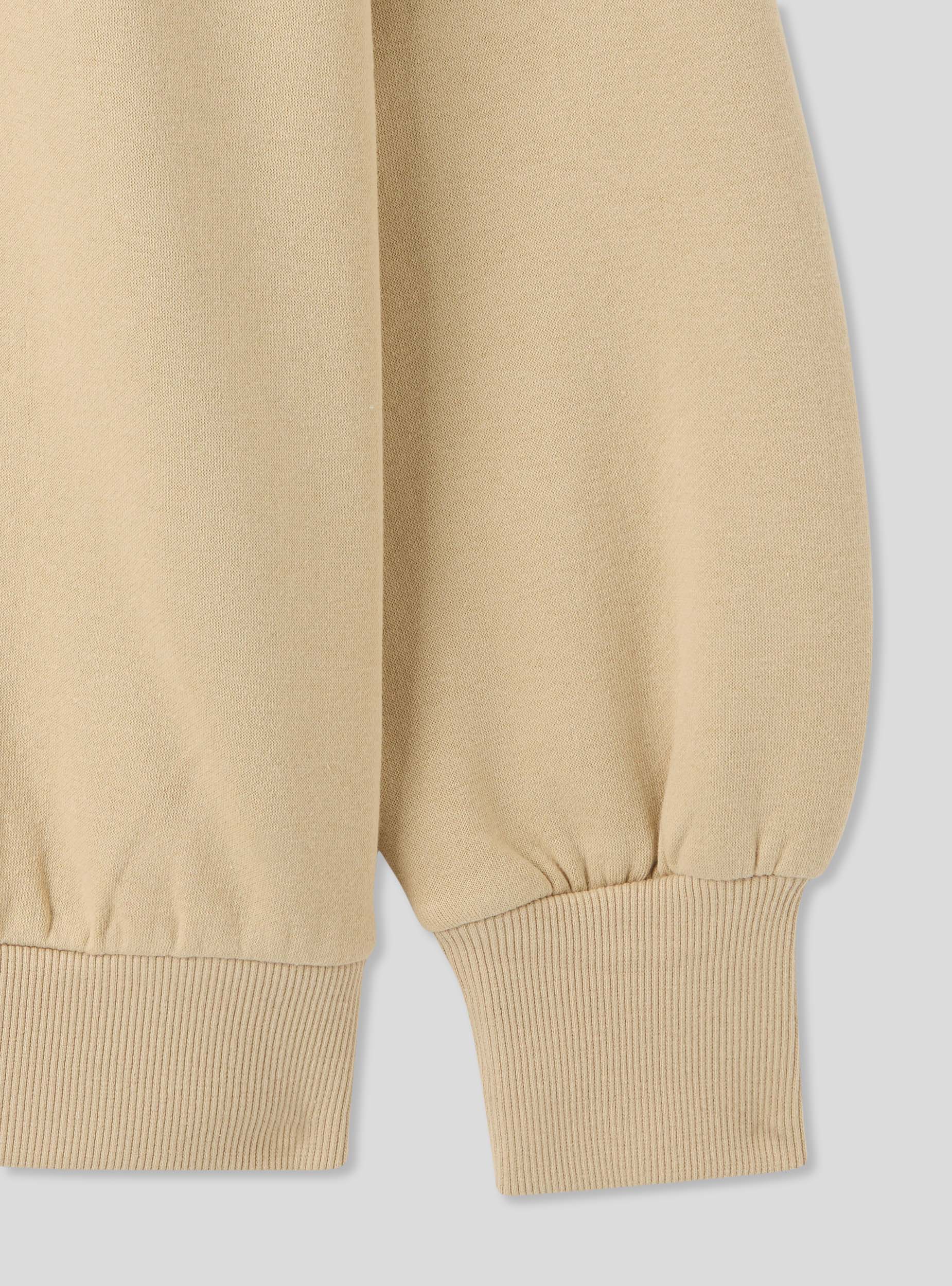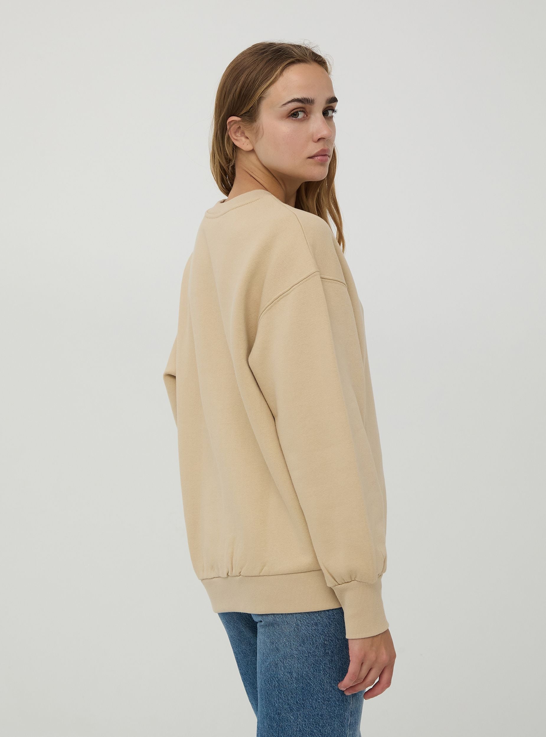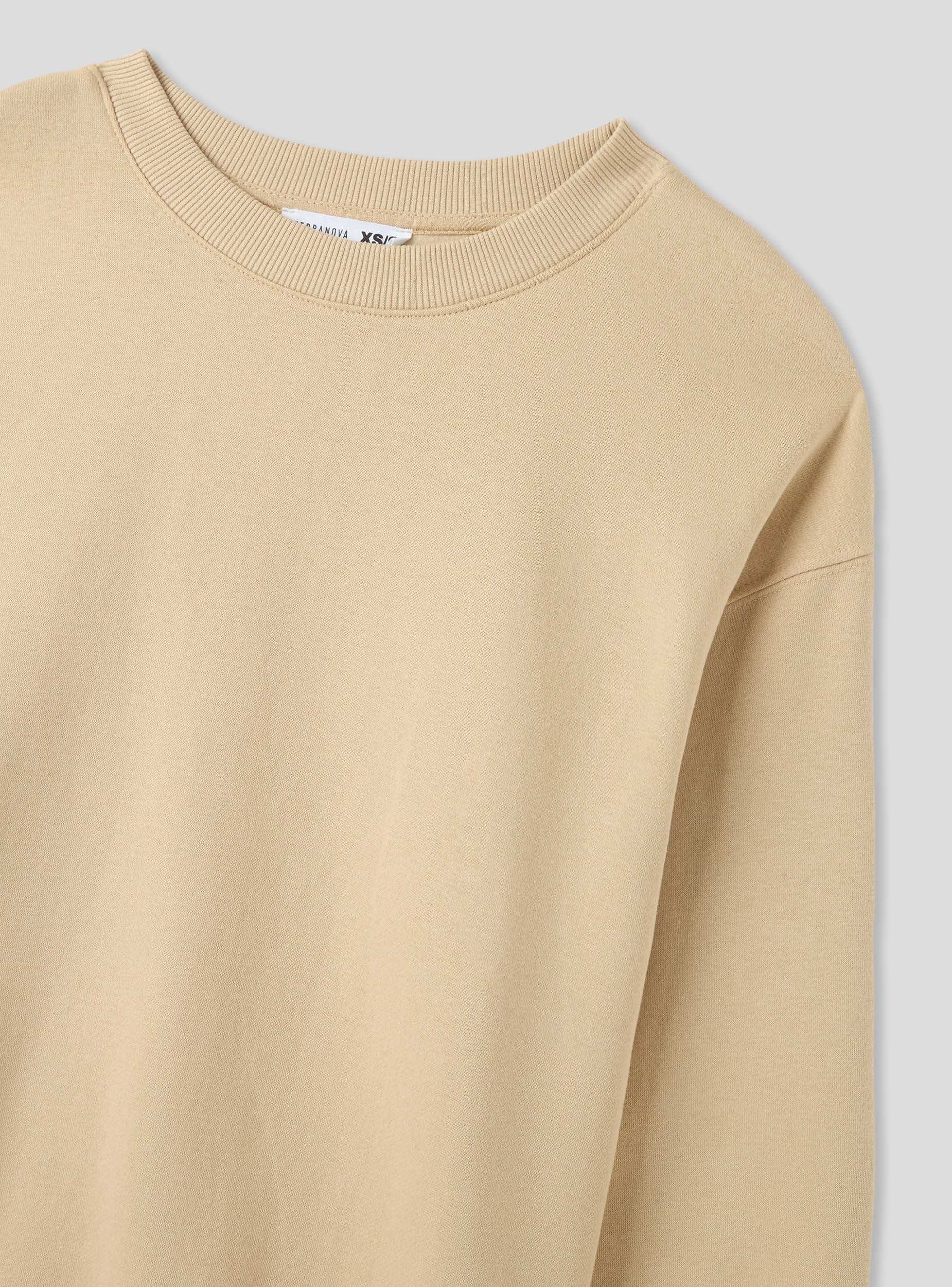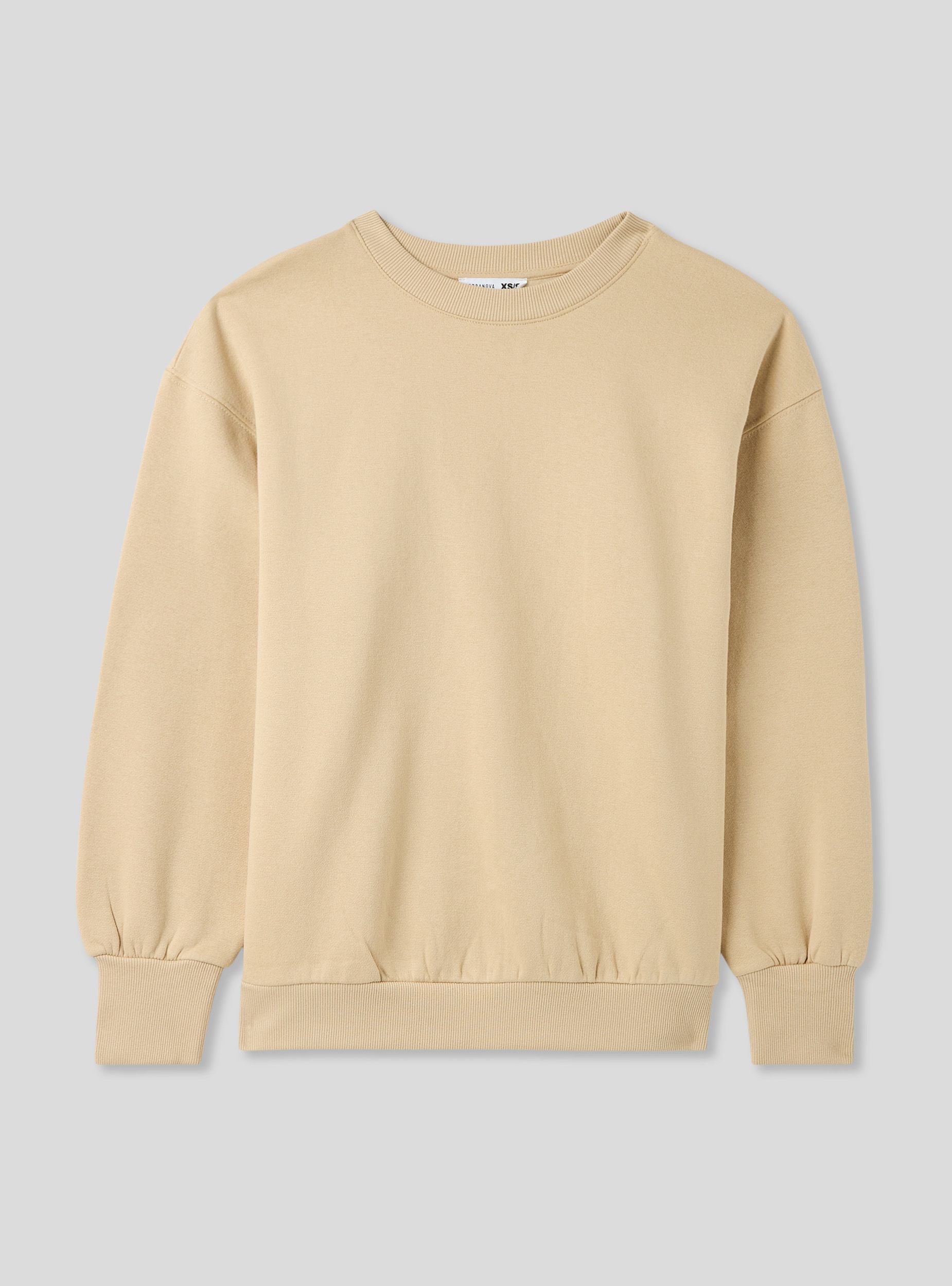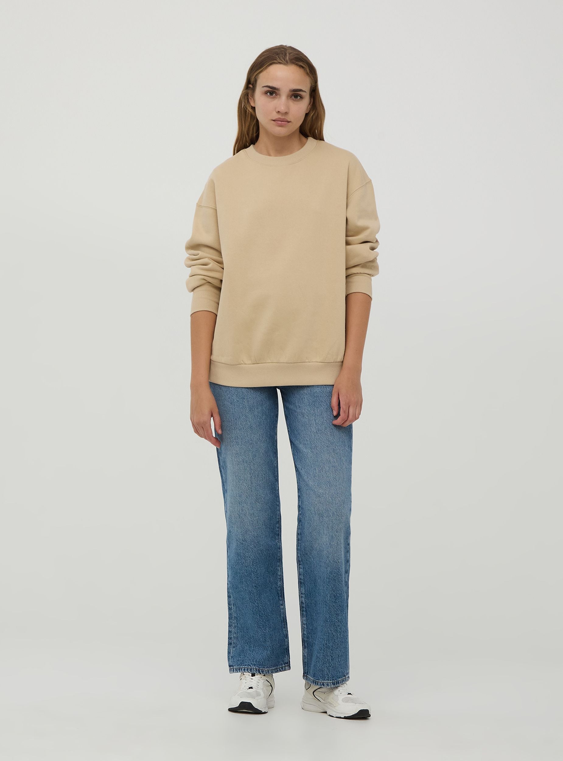 Felpa da donna senza cappuccio a maniche lunghe, in tessuto pesante a tinta unita con finiture a costine. Vestibilità ampia.