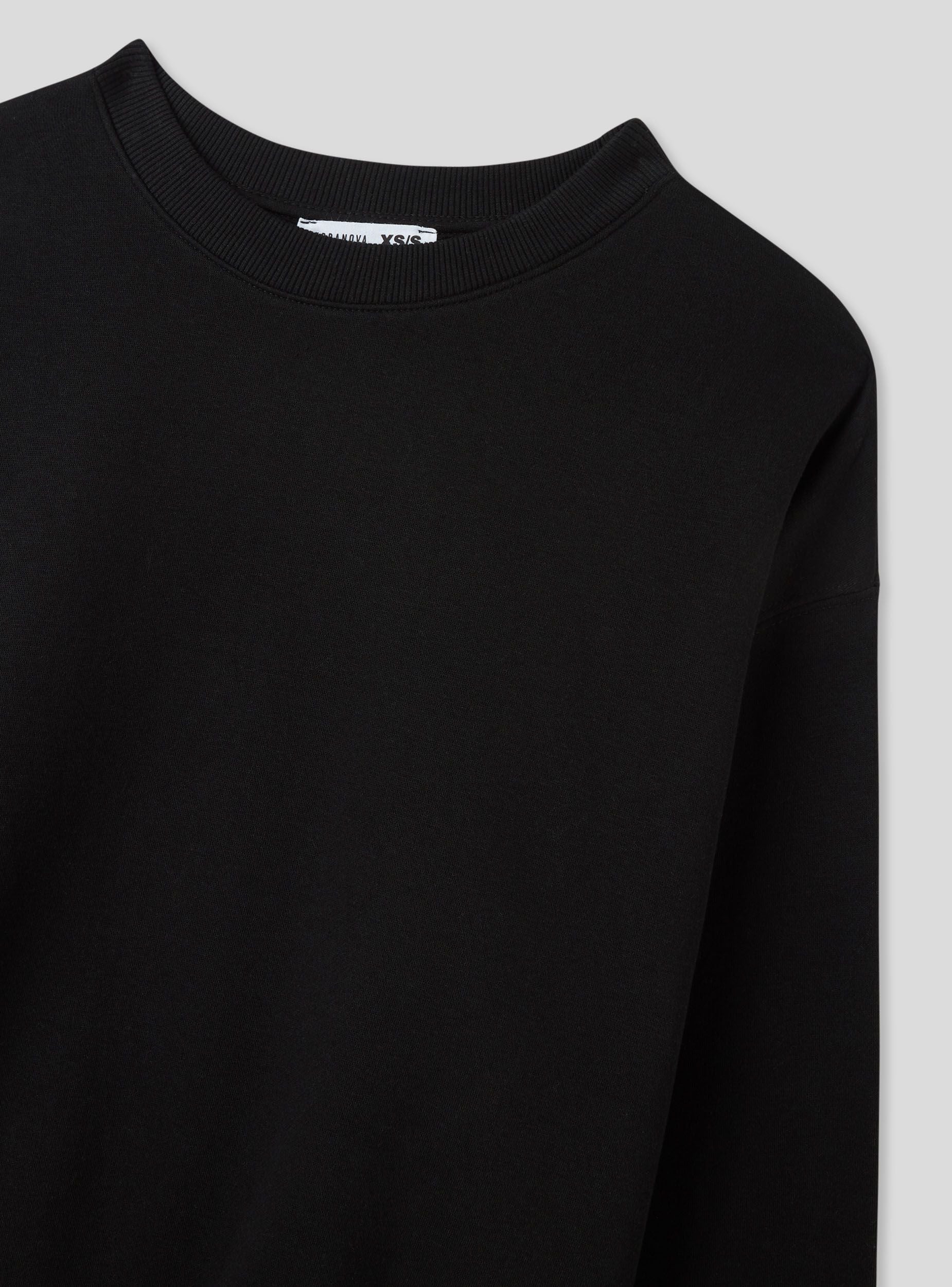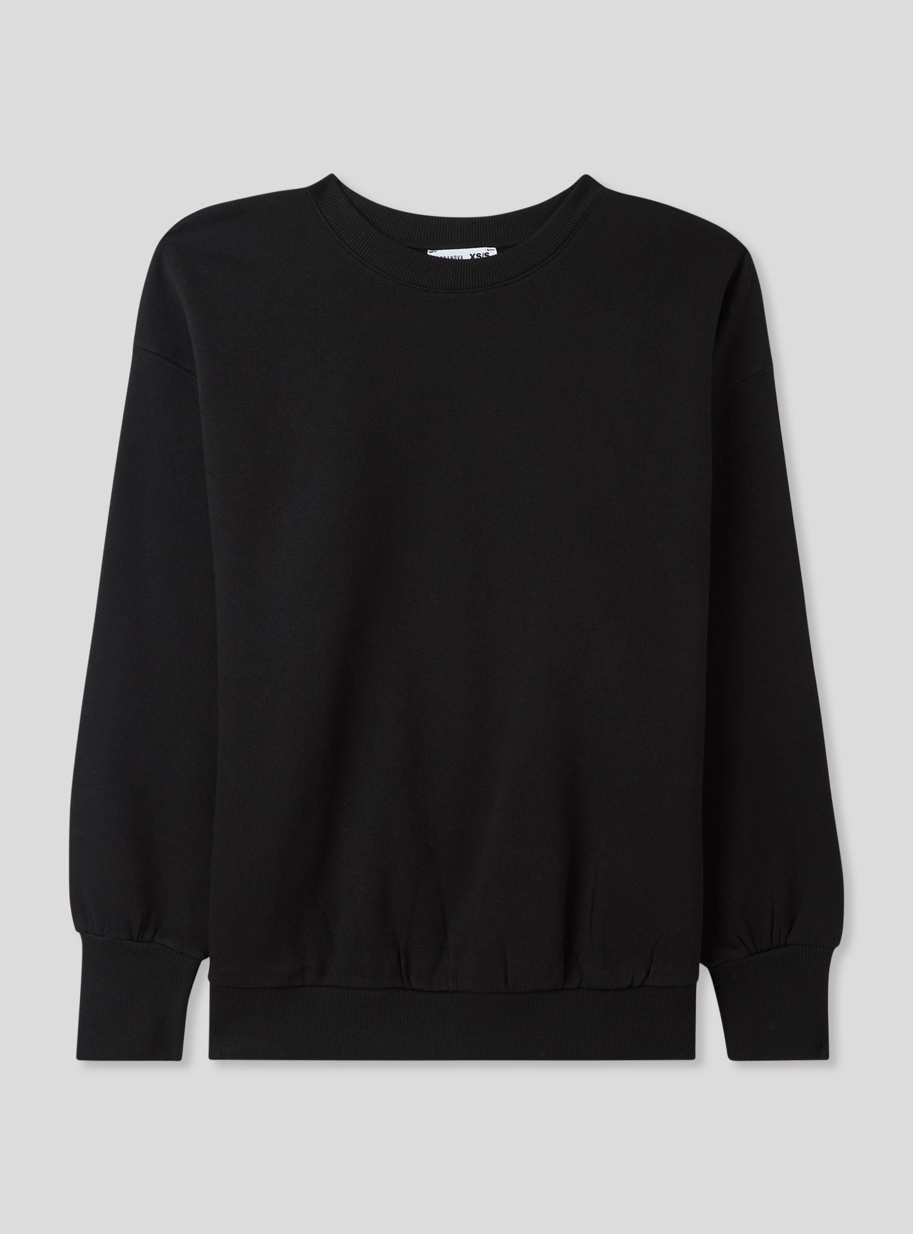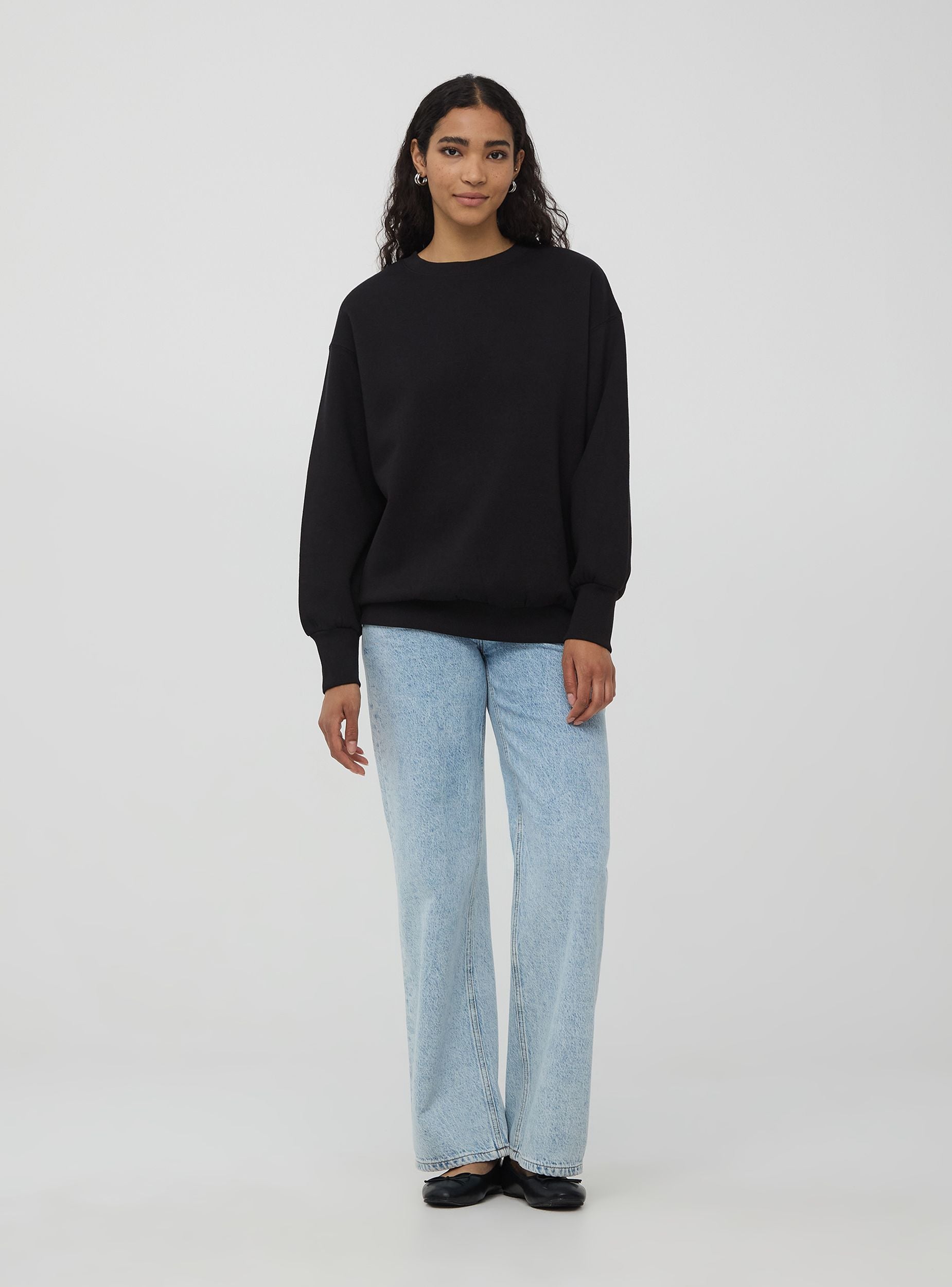Felpa da donna senza cappuccio a maniche lunghe, in tessuto pesante a tinta unita con finiture a costine. Vestibilità ampia.