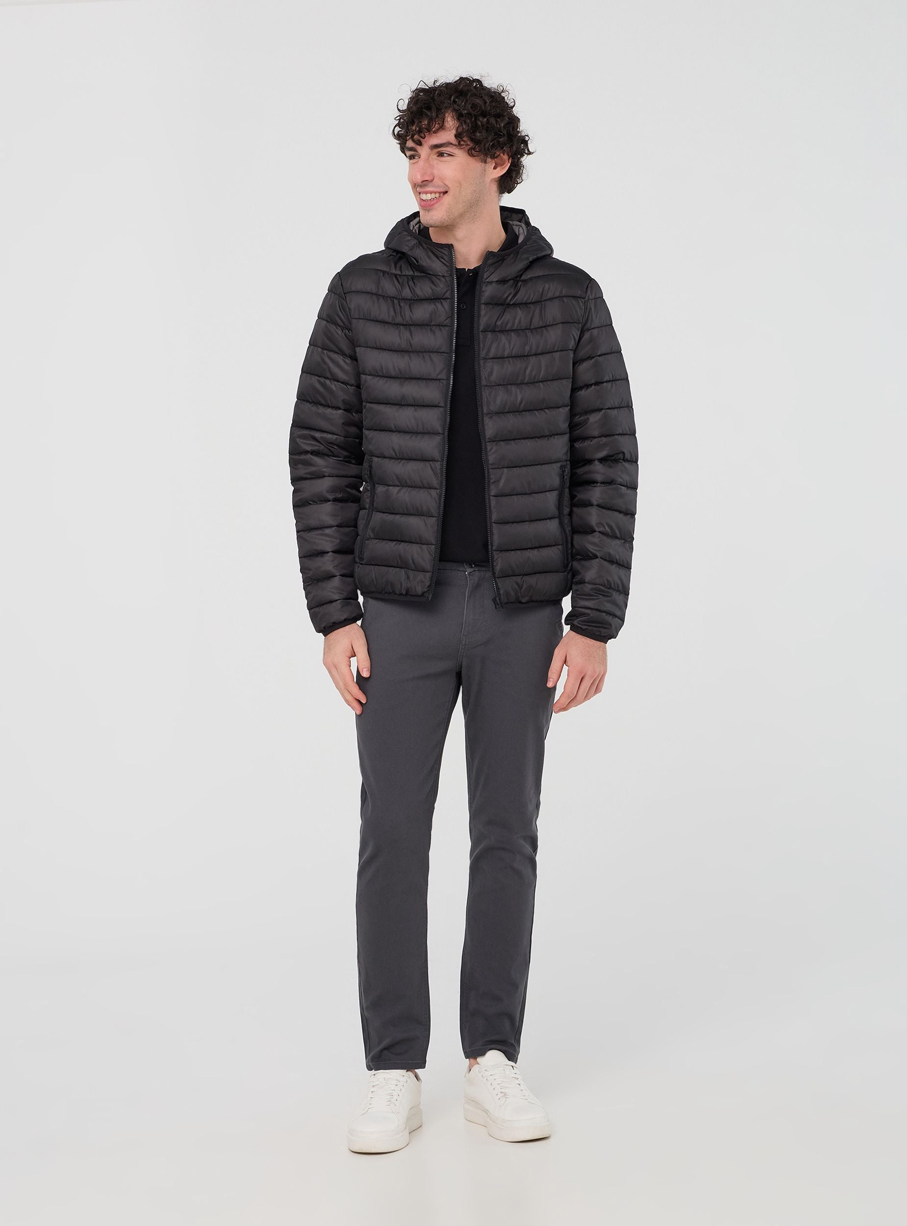 Questo giubbino 100 grammi da uomo è il capo ideale per affrontare le giornate più fresche con stile e praticità. La tinta unita lo rende versatile per ogni occasione, mentre il cappuccio offre una protezione extra contro il vento. Dotato di comode tasche con zip e chiusura frontale con zip, garantisce praticità e sicurezza per gli oggetti personali. Le maniche lunghe completano il design, assicurando un comfort ottimale in tutte le situazioni, perfetto per passeggiate o uscite casual.
