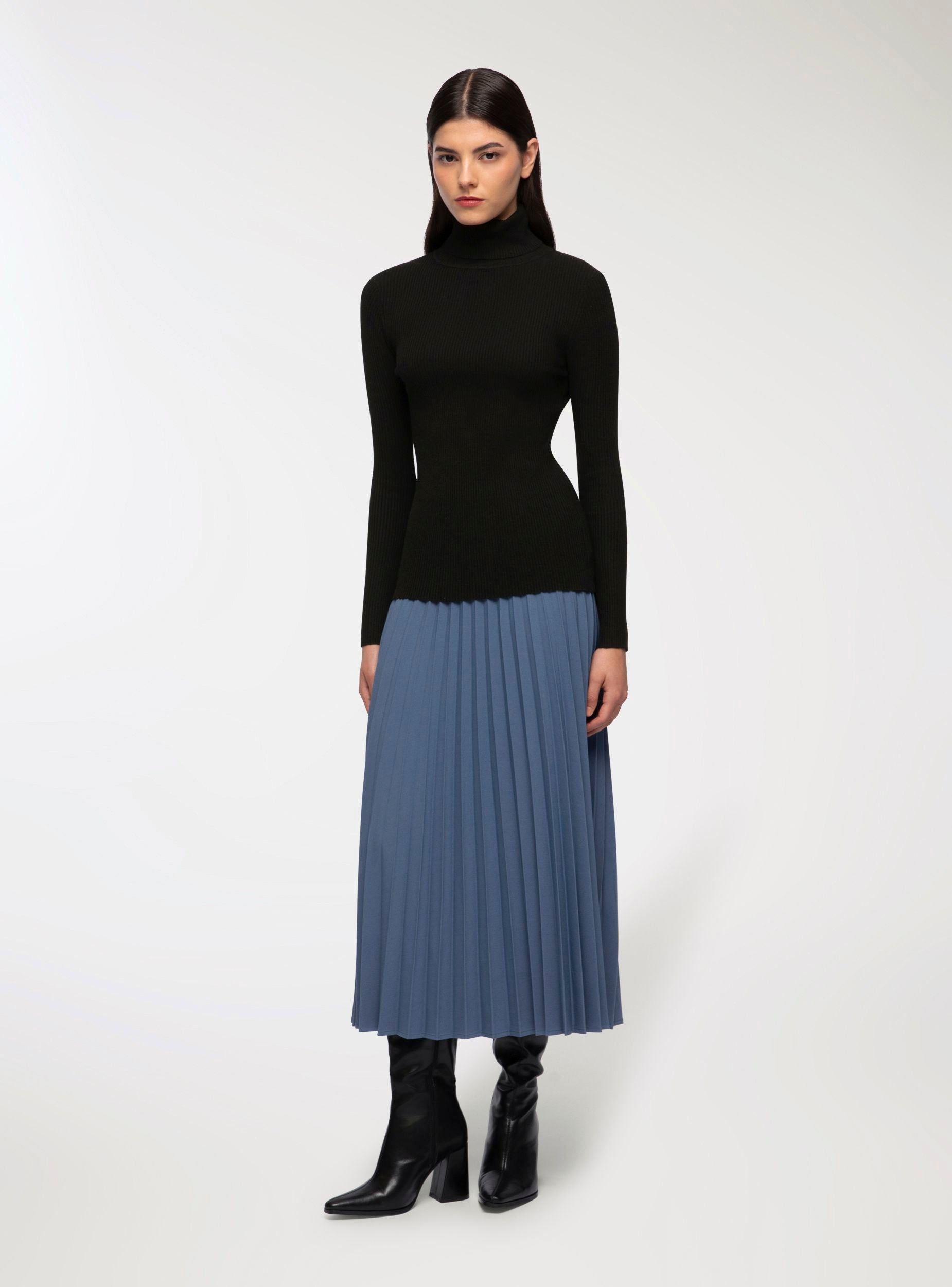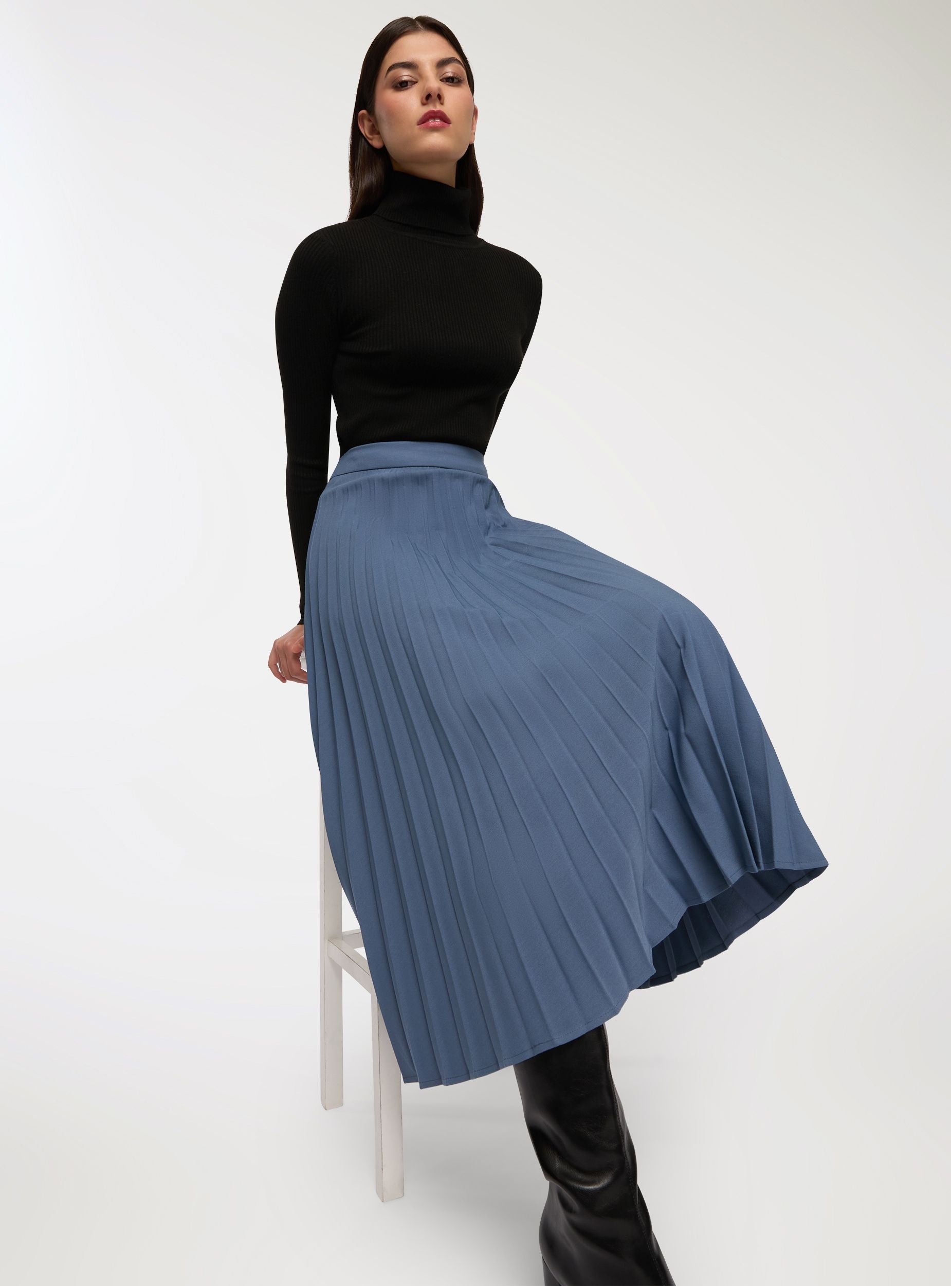 Gonna da donna lunga plissettata, ideale per occasioni formali o per un look elegante. La gonna presenta una vestibilità regolare e un design plissettato che aggiunge movimento e stile. Perfetta da abbinare a camicie o maglie aderenti e scarpe con tacco per un outfit sofisticato. La lunghezza e il taglio la rendono versatile per diverse stagioni e occasioni.