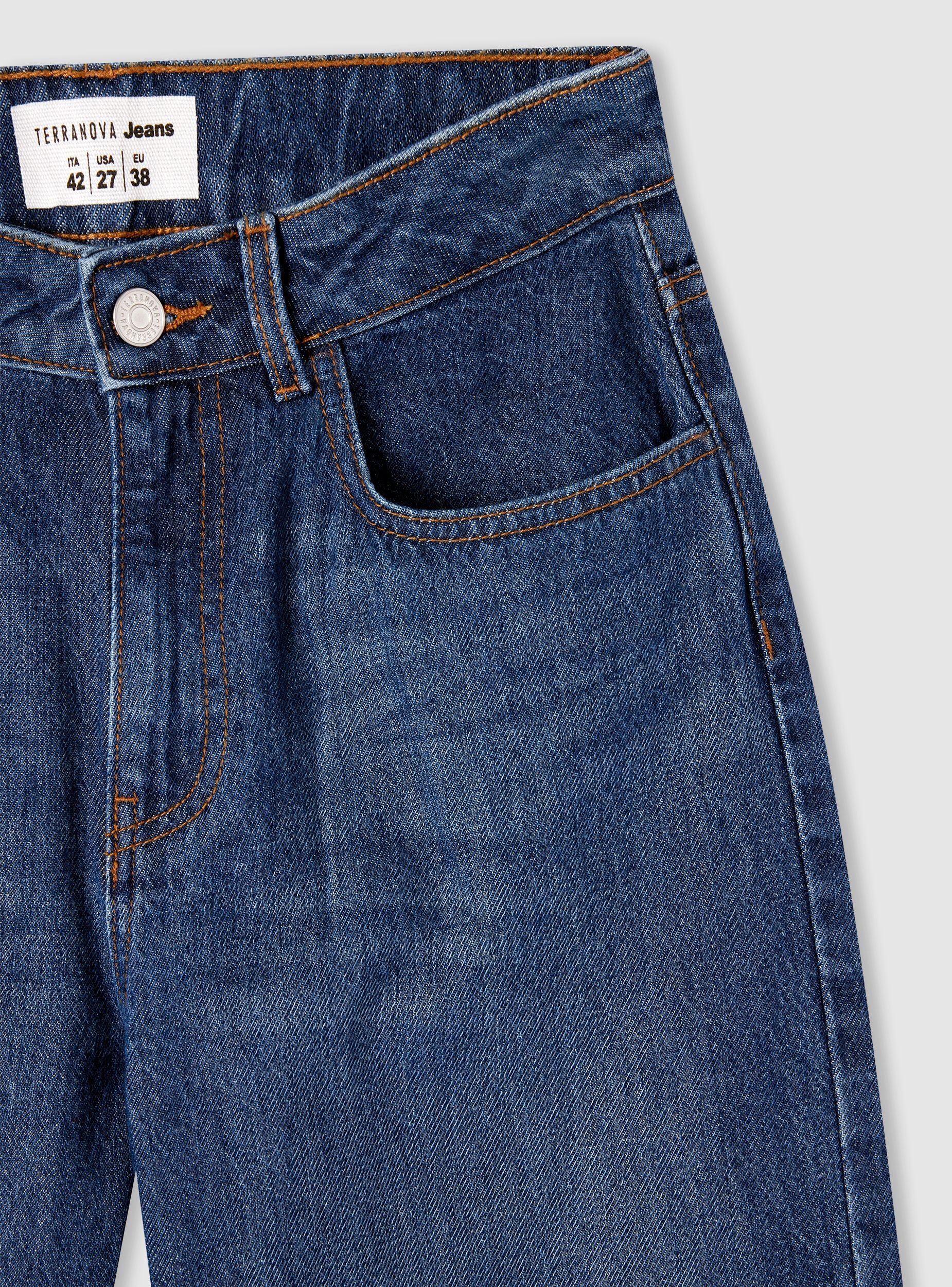 Jeans da donna con vestibilità ampia e design a gamba larga. Questi jeans presentano cinque tasche funzionali e una chiusura con bottone, ideali per un look casual e moderno. Perfetti per abbinamenti con magliette o camicie, si adattano a diverse occasioni informali. La vita media aggiunge un tocco di stile e comfort.