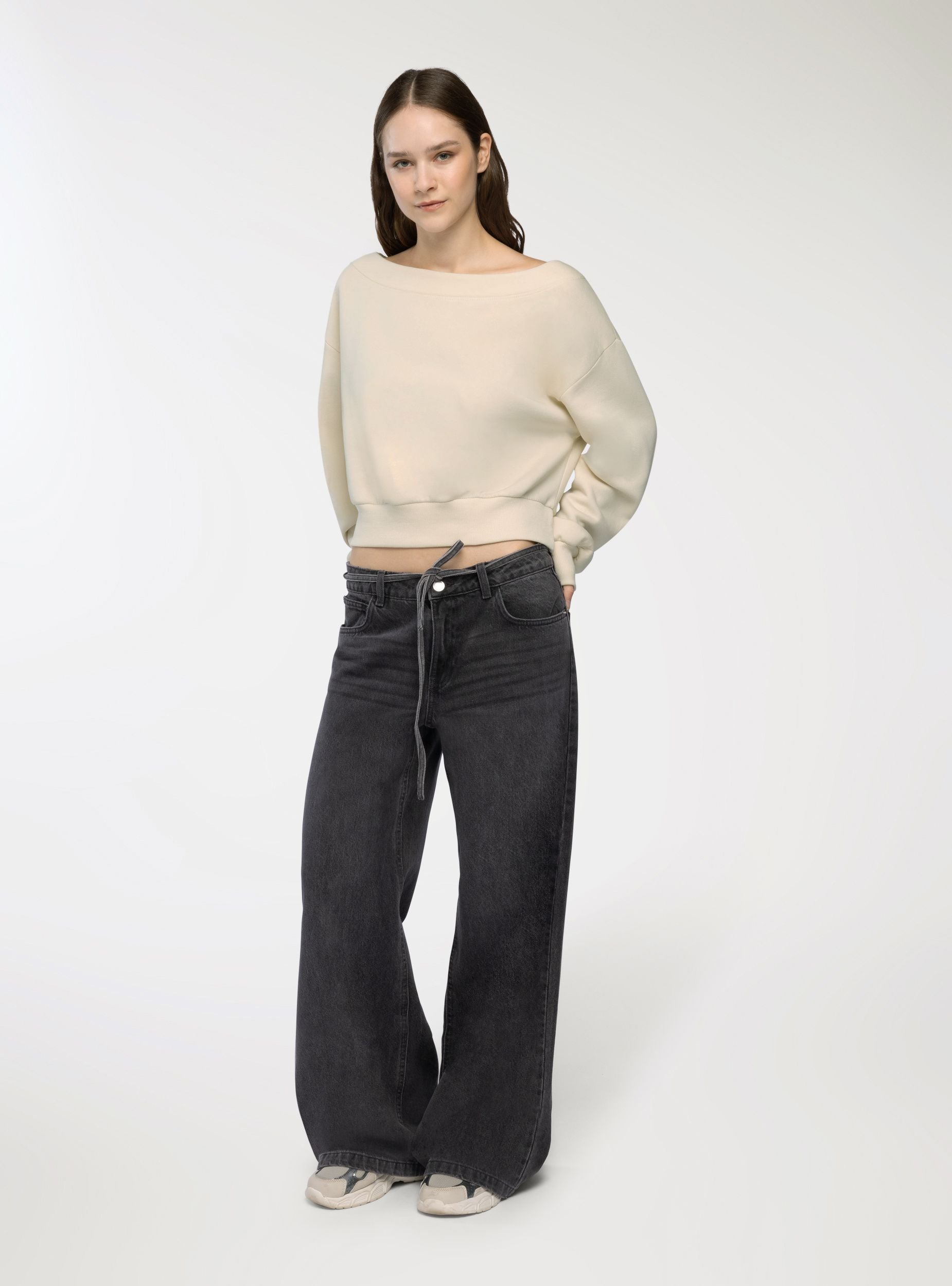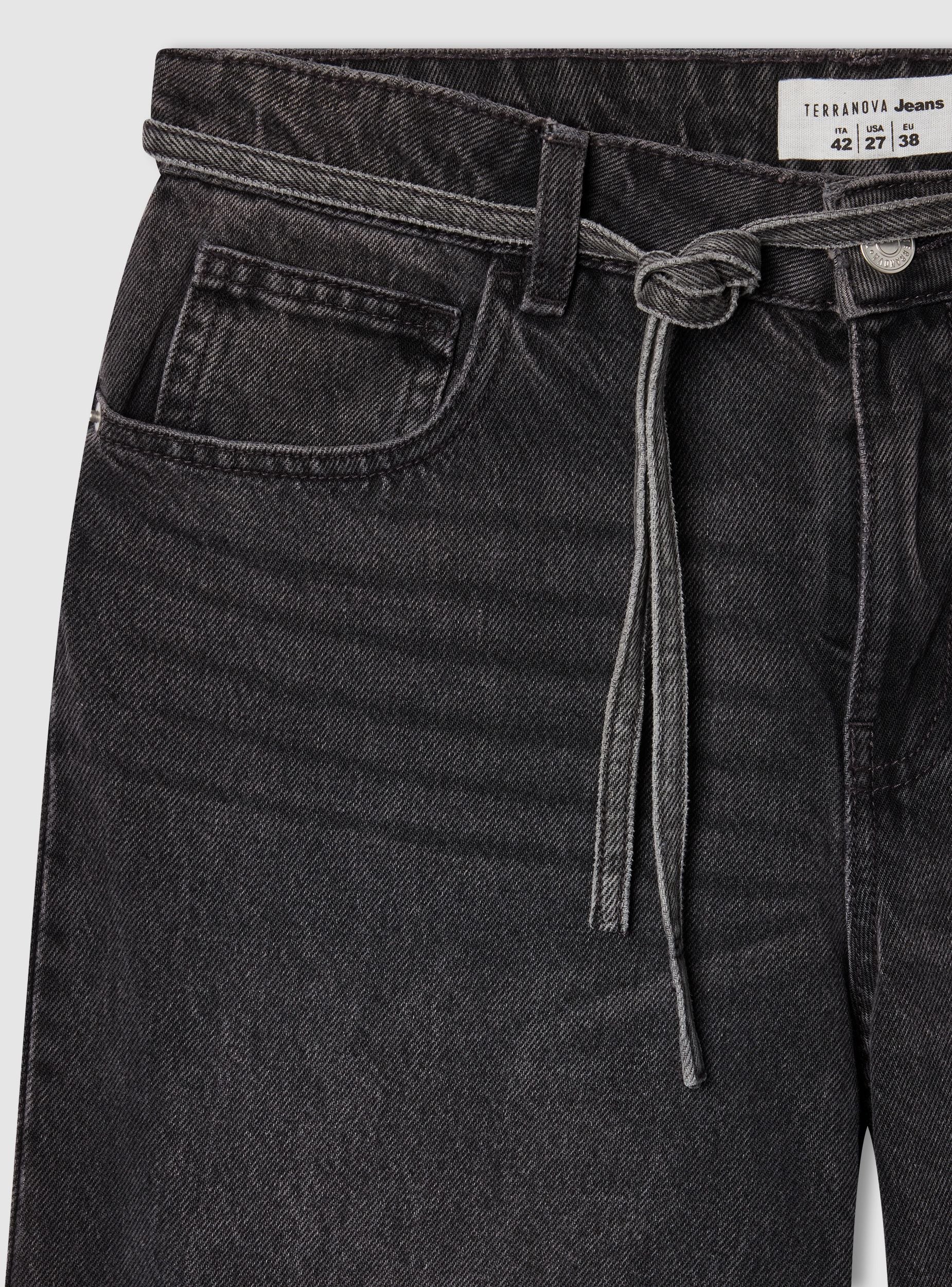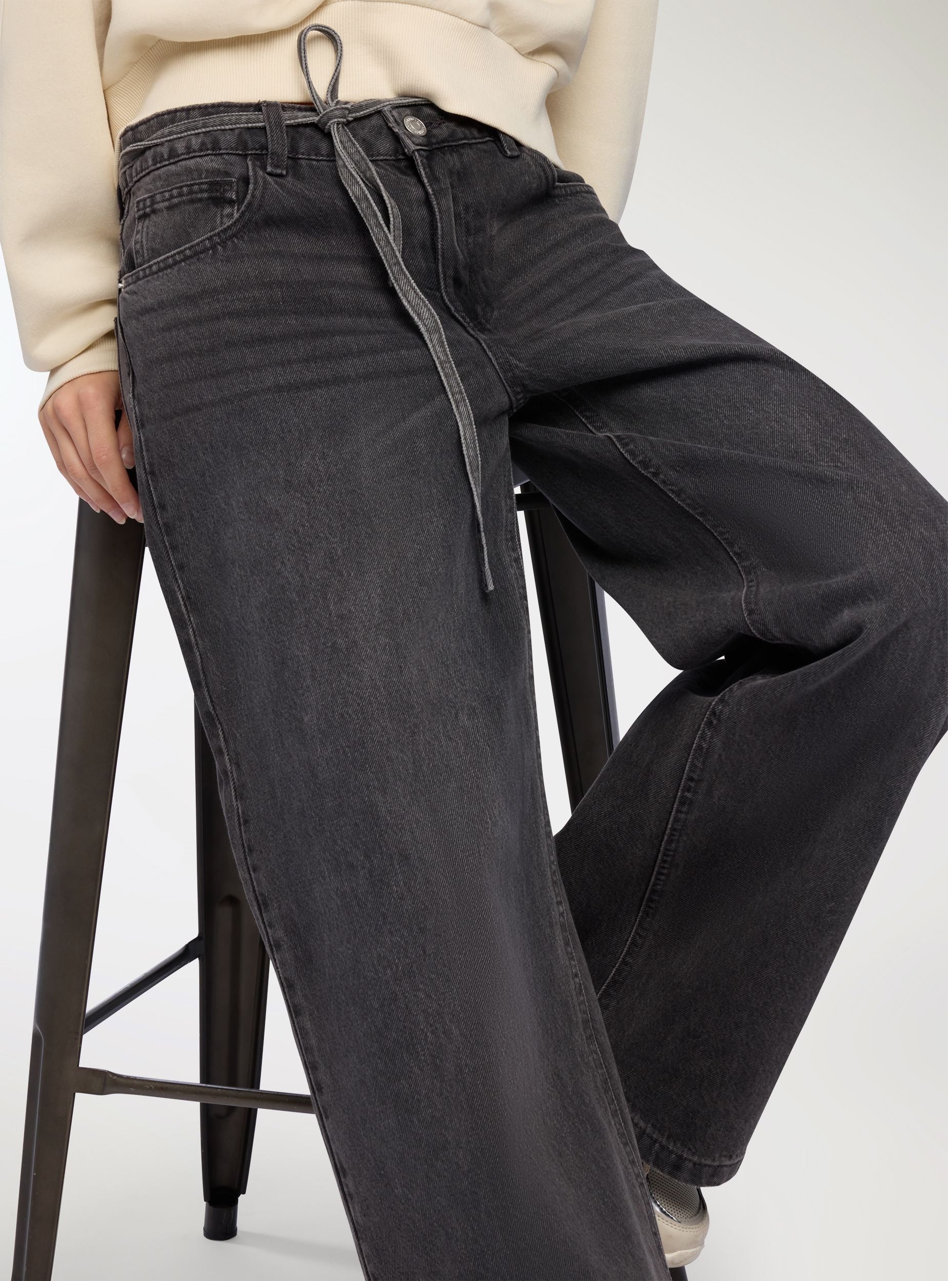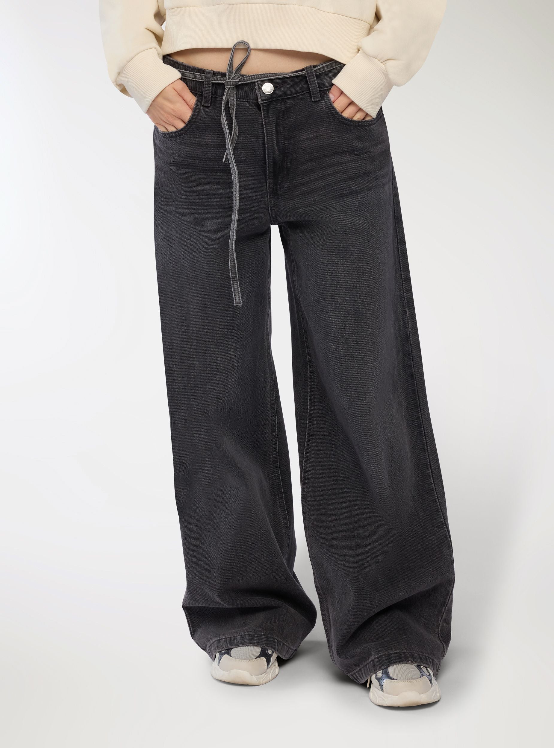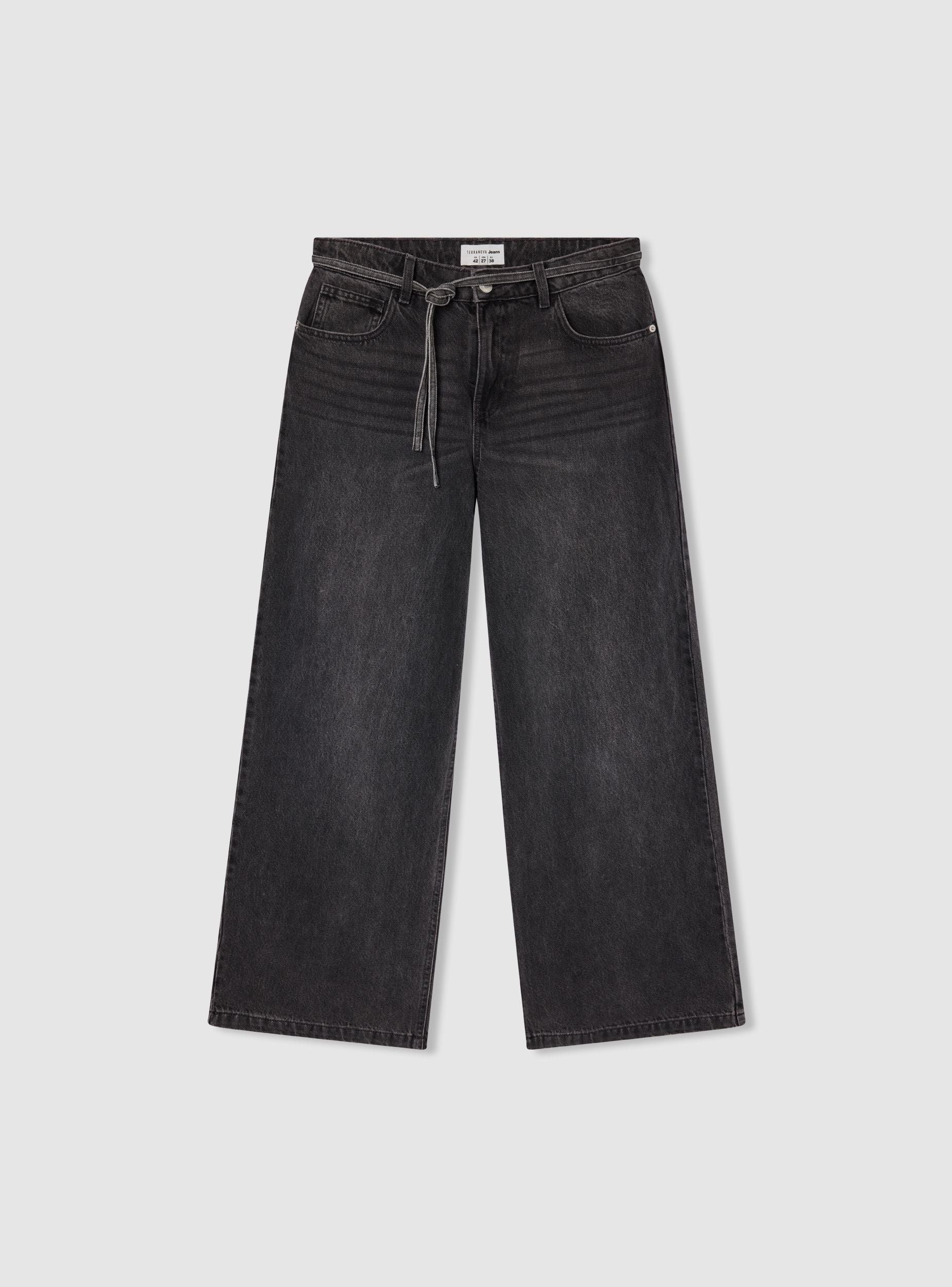 Jeans da donna super wide leg, ideali per un look urbano e casual. Presentano una vestibilità ampia e confortevole, con gamba larga che valorizza la silhouette. Presentano una chiusura con bottone e zip, e 5 tasche basic. Dotati di una cintura coordinata per un tocco di stile aggiuntivo, sono perfetti da abbinare a magliette o camicie per un outfit quotidiano.