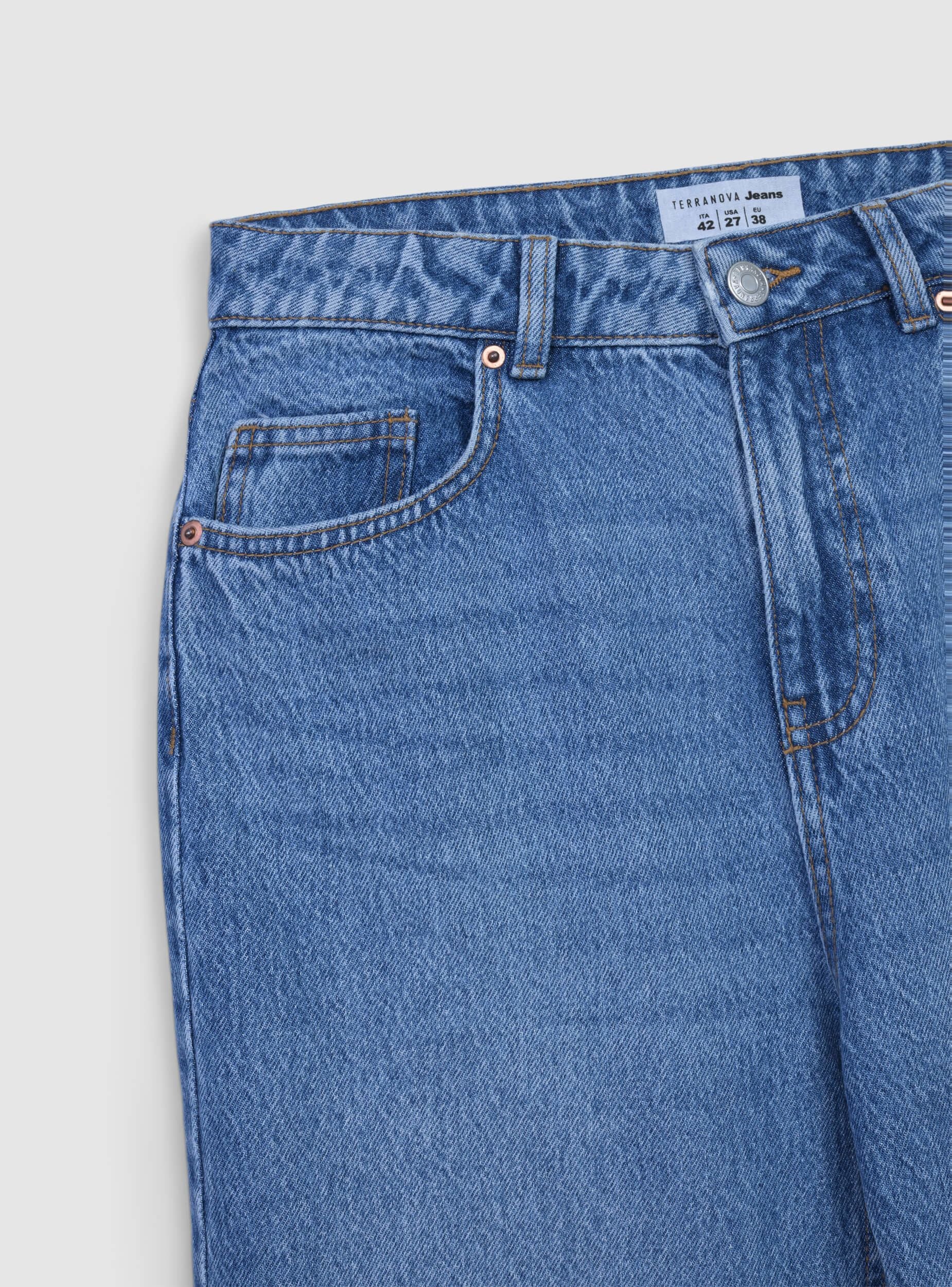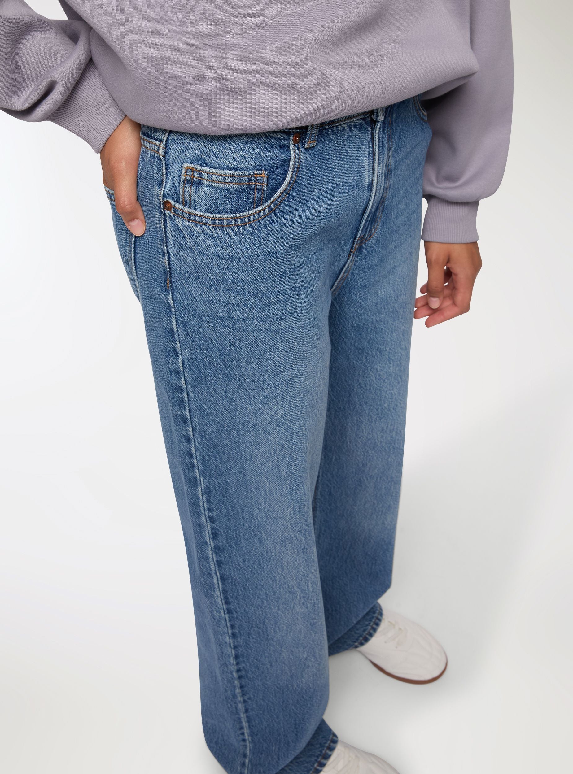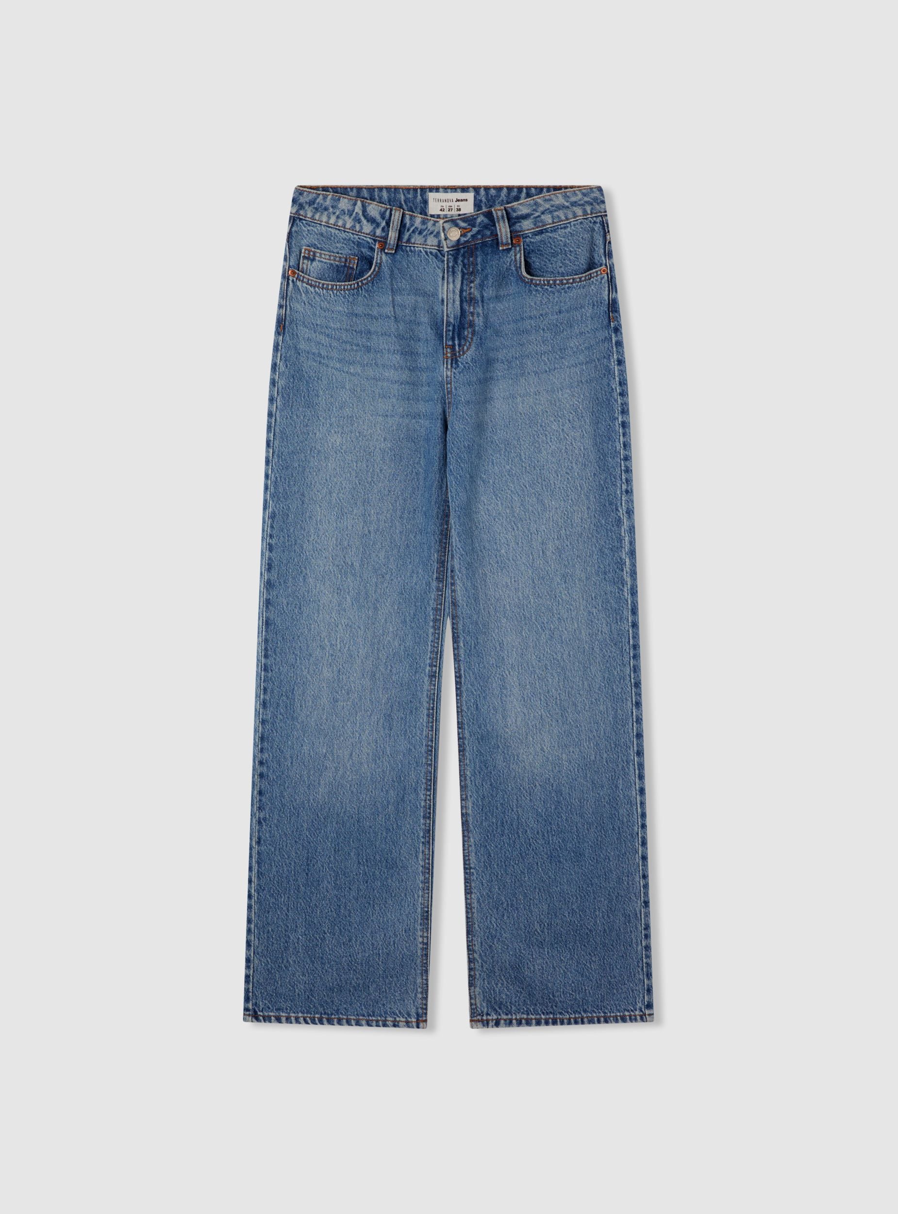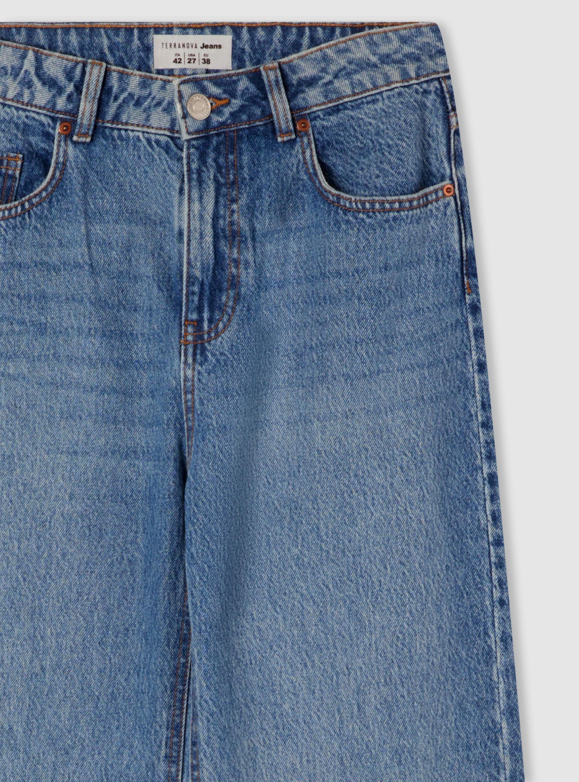 Jeans da donna dal taglio wide leg, ideali per un look casual e versatile. La vestibilità ampia assicura comfort durante tutta la giornata, perfetti da abbinare sia a t-shirt che a camicie per outfit moderni. Presentano chiusura con bottone e zip, passanti per cintura e cinque tasche. Lavaggio denim medio. Adatti a molteplici occasioni.
